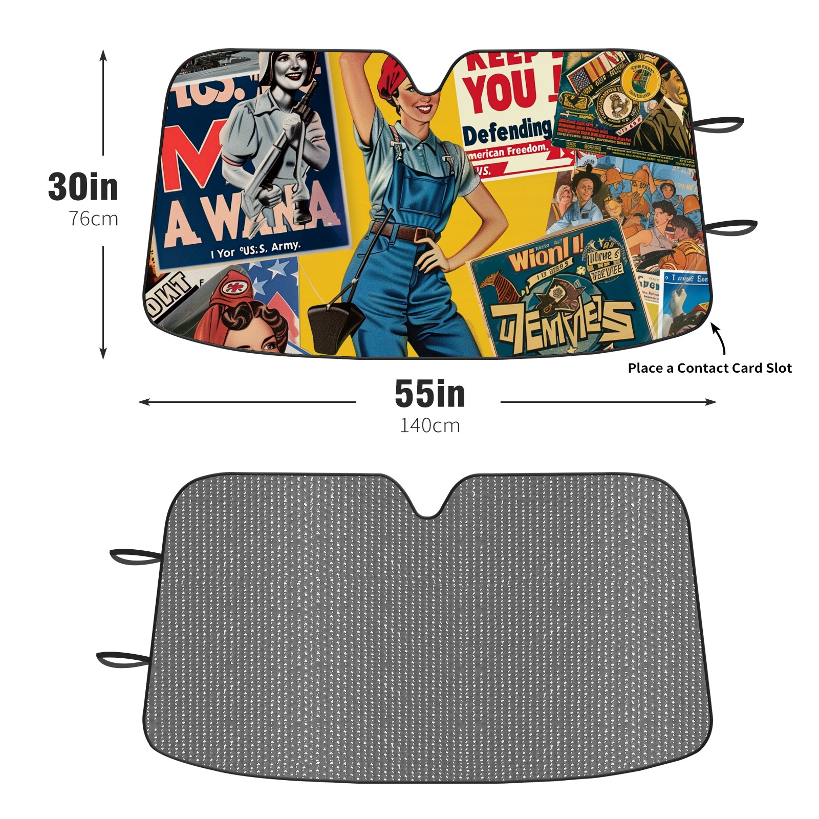 Diameter /Size 63"L x 33.5"W Made from excellent materials which makes it sturdy and protects the car from the sun. Easy to use and pack. Makes the interior of the car cooler.You can easily stash the sunshade in the storage bag or store long term.It open and closes easy. Also the leather storage bag is durable and easy to put the umbrella back into.This windshield sunshade provides complete coverage and keeps your car interior cool under direct sun. It is easy to open and position under the windshield and around the rear-view mirror. Makes Your Car Easy To Identify, Perfect For Finding Your Car In Crowded Parking Lots And Garages.Great Choice: It Is A Great Gift For Dad, Boyfriend, Brother, Brother And Uncle, Friends, Classmates, Family And So On. Notice: Due To Difference Computer Monitors, The Color Maybe Slightly Different From Picture. As Different Measurement Methods, Measurement Data Will Float Within 2%.I Hope You Understand. If You Have Any Question About The Item Please Do Not Hesitate To Contact Us Immediately And We Will Give You A Satisfactory Reply Within 24 Hours.