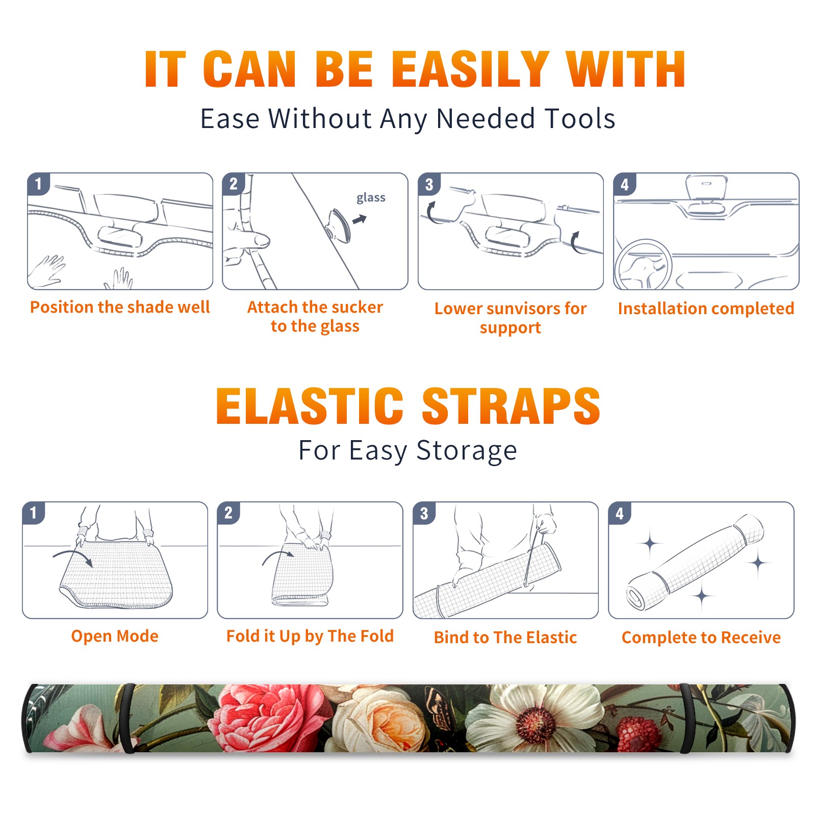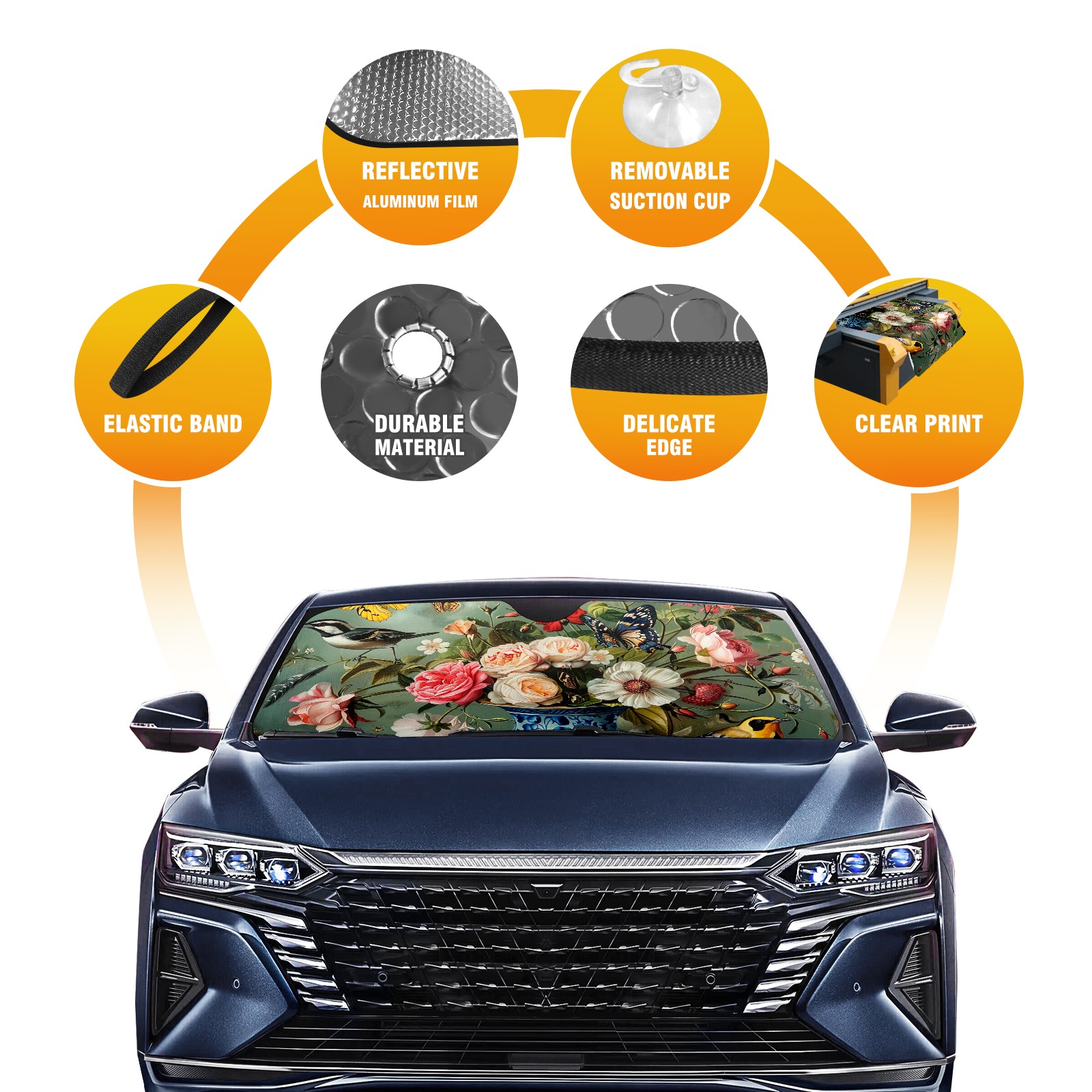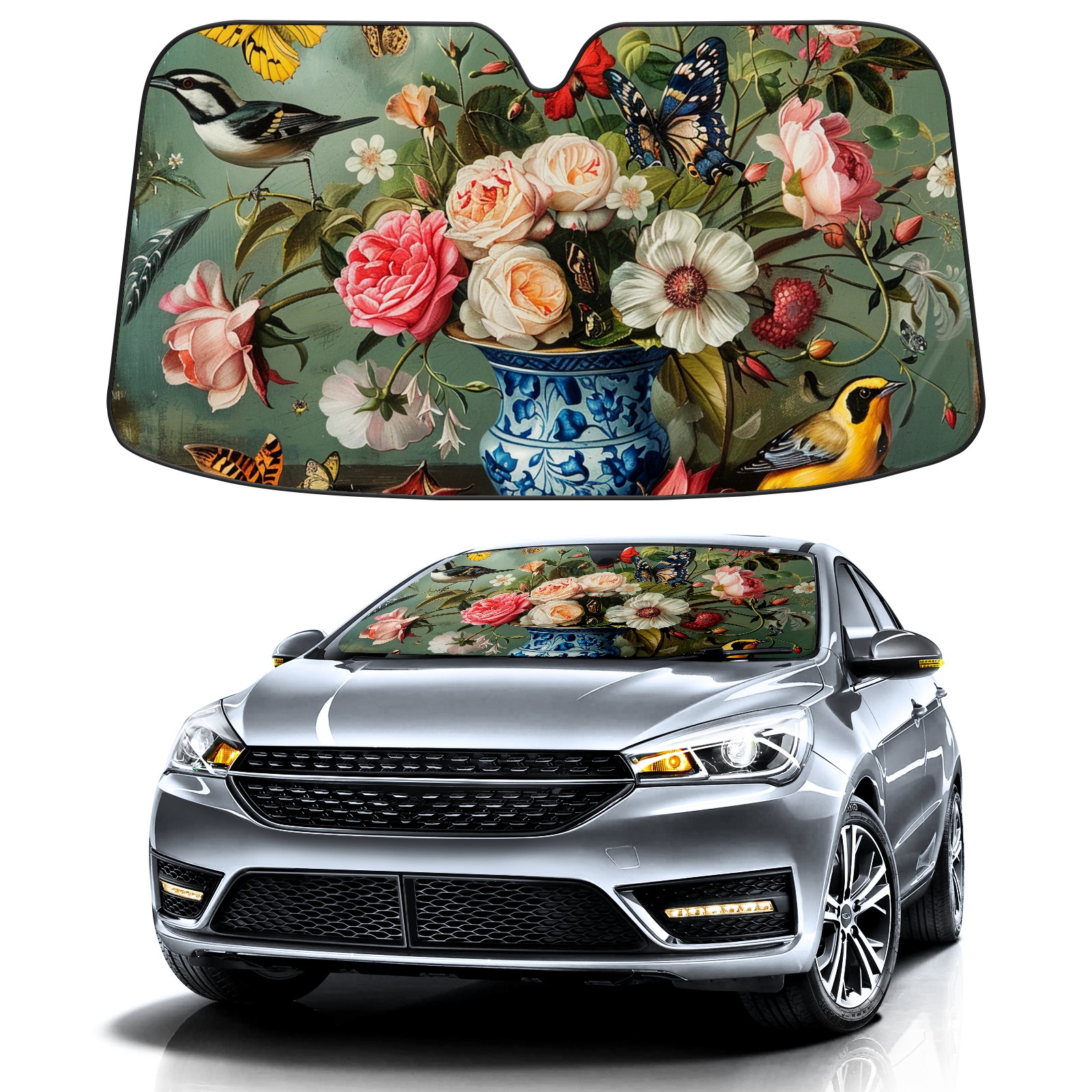 Car Windshield Sun Shade For Front Window Rose Foldable Vehicle Windshield Car Sun Visor Covers Automotive Window Protector Car Camping Privacy Sun Blocker