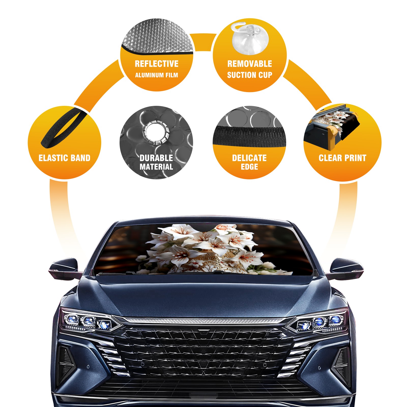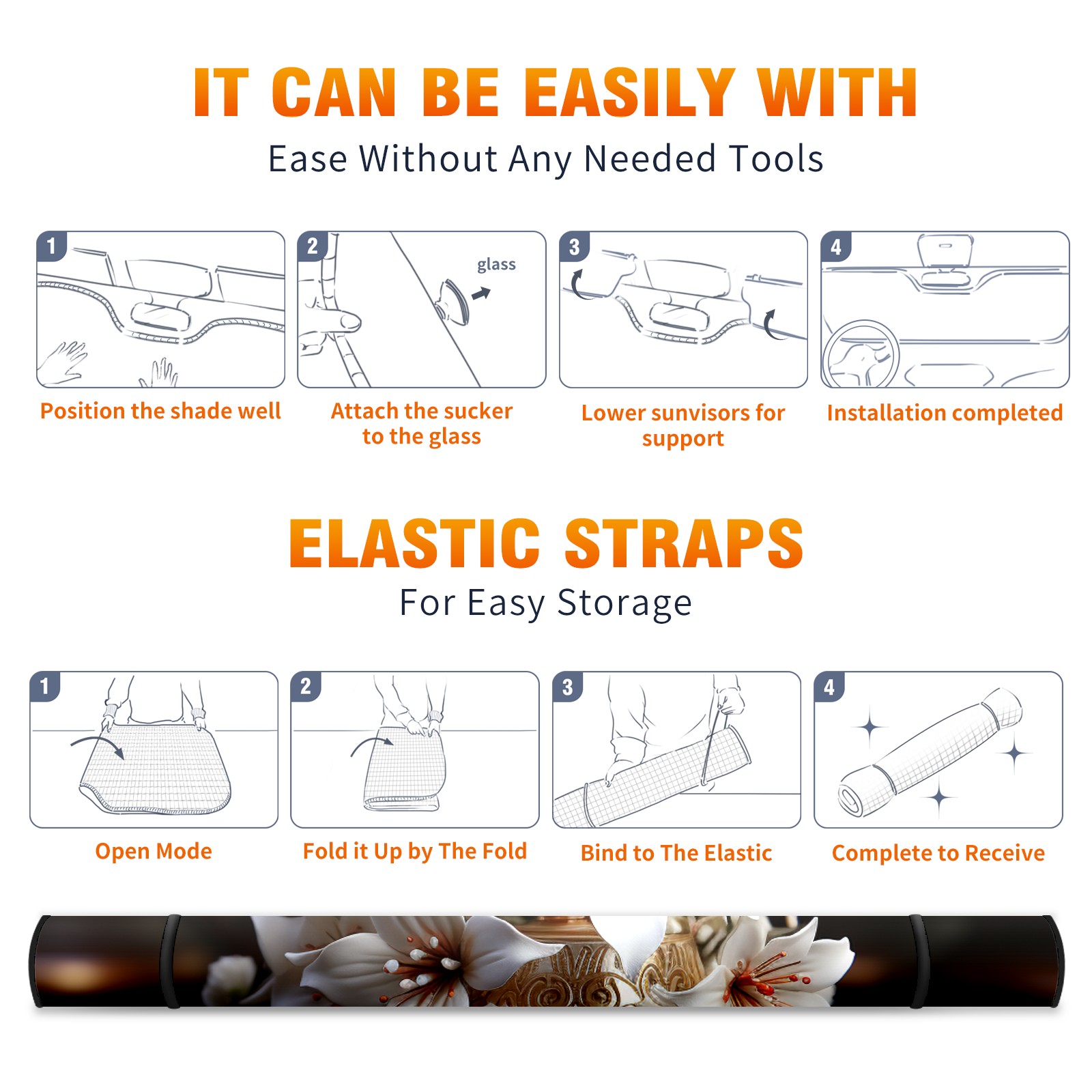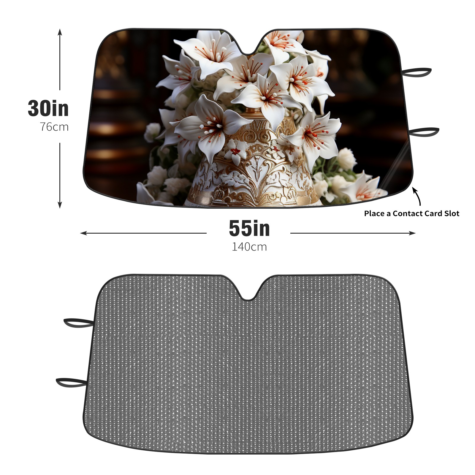 • Diameter /Size 63"L x 33.5"W Made from excellent materials which makes it sturdy and protects the car from the sun. Easy to use and pack. Makes the interior of the car cooler.You can easily stash the sunshade in the storage bag or store long term.It open and closes easy. Also the leather storage bag is durable and easy to put the umbrella back into.This windshield sunshade provides complete coverage and keeps your car interior cool under direct sun. It is easy to open and position under the windshield and around the rear-view mirror. Makes Your Car Easy To Identify, Perfect For Finding Your Car In Crowded Parking Lots And Garages.Great Choice: It Is A Great Gift For Dad, Boyfriend, Brother, Brother And Uncle, Friends, Classmates, Family And So On. Notice: Due To Difference Computer Monitors, The Color Maybe Slightly Different From Picture. As Different Measurement Methods, Measurement Data Will Float Within 2%.I Hope You Understand. If You Have Any Question About The Item Please Do Not Hesitate To Contact Us Immediately And We Will Give You A Satisfactory Reply Within 24 Hours.