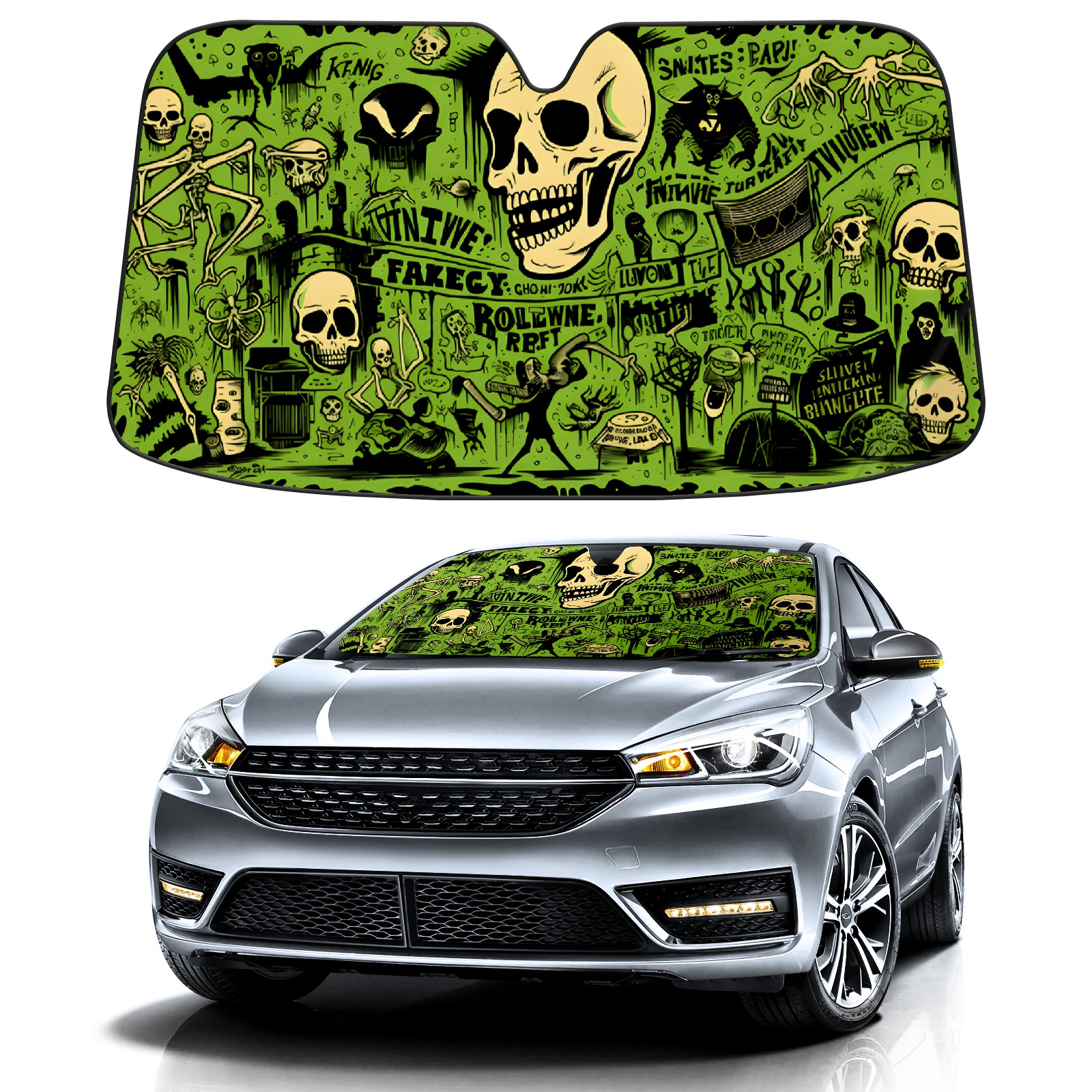Car Windshield Sun Shade For Front Window Skull Foldable Vehicle Windshield Car Sun Visor Covers Automotive Window Protector Car Camping Privacy Sun Blocker