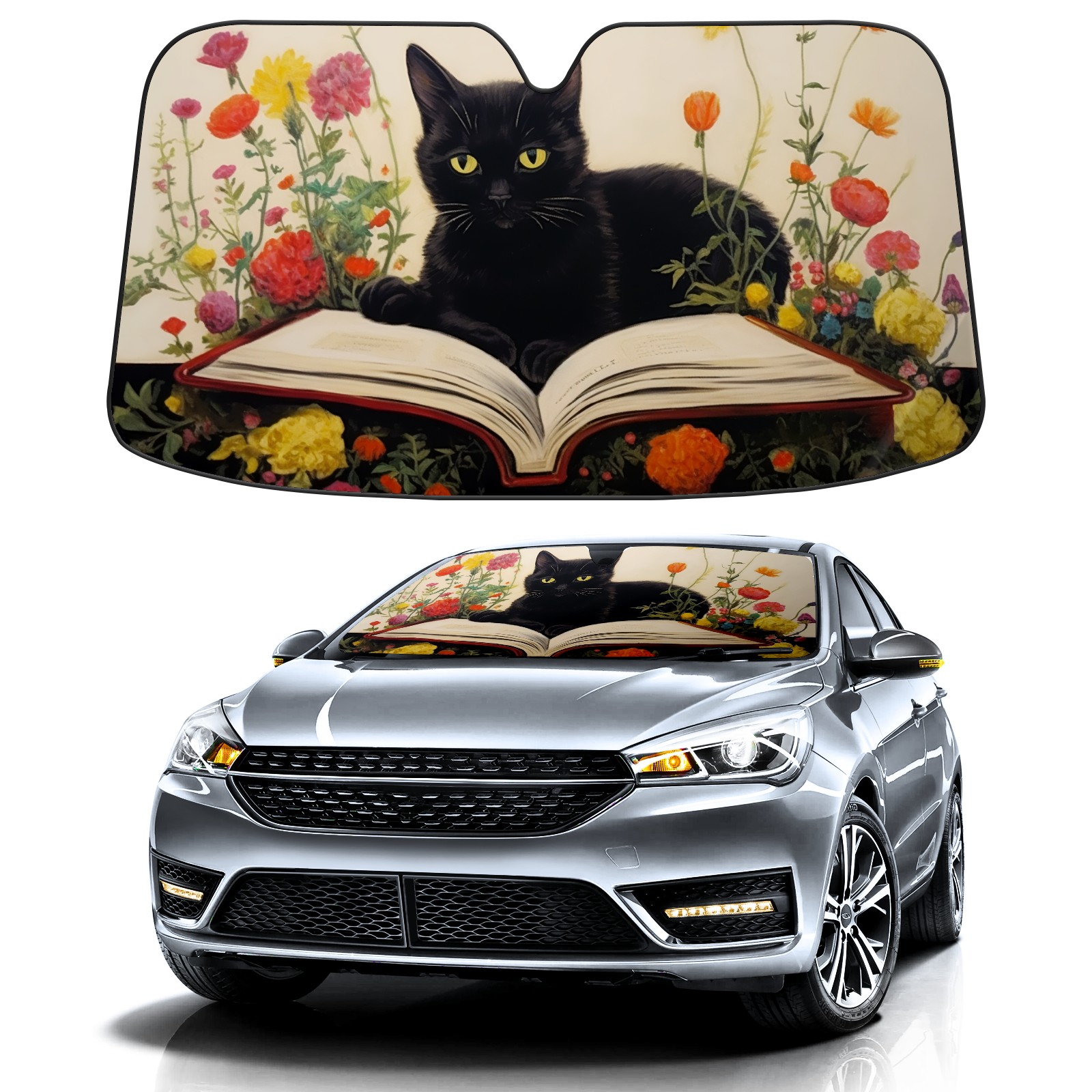 Car Windshield Sun Shade For Front Window Painting Cat Foldable Vehicle Windshield Car Sun Visor Covers Automotive Window Protector Car Camping Privacy Sun Blocker