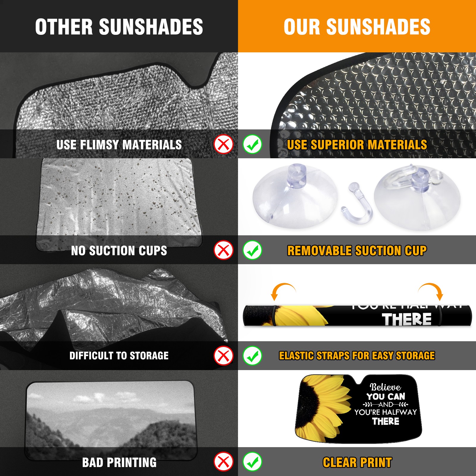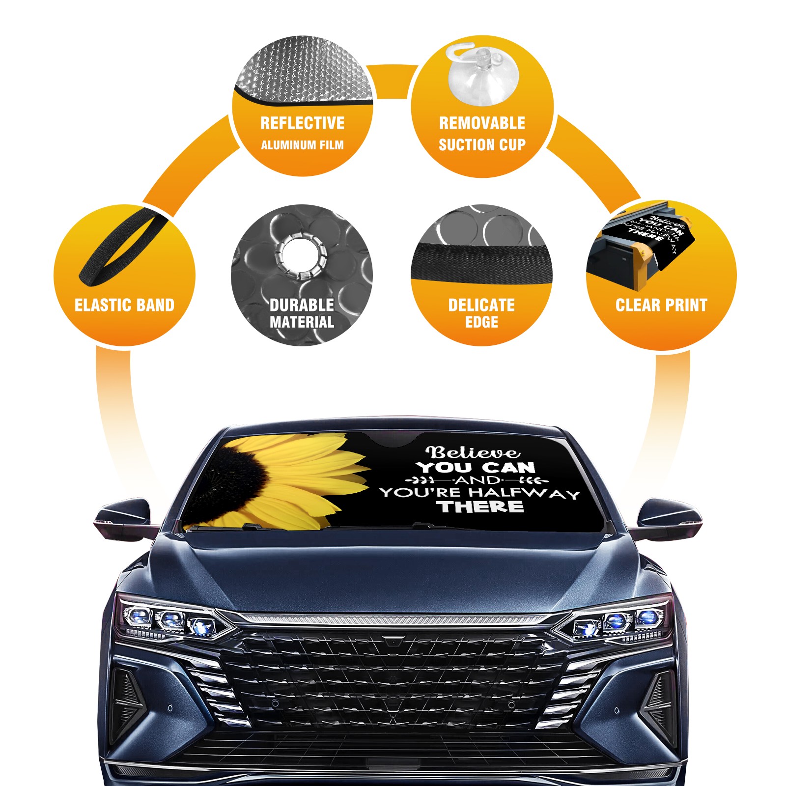 • Diameter /Size 63"L x 33.5"W Made from excellent materials which makes it sturdy and protects the car from the sun. Easy to use and pack. Makes the interior of the car cooler.You can easily stash the sunshade in the storage bag or store long term.It open and closes easy. Also the leather storage bag is durable and easy to put the umbrella back into.This windshield sunshade provides complete coverage and keeps your car interior cool under direct sun. It is easy to open and position under the windshield and around the rear-view mirror. Makes Your Car Easy To Identify, Perfect For Finding Your Car In Crowded Parking Lots And Garages.Great Choice: It Is A Great Gift For Dad, Boyfriend, Brother, Brother And Uncle, Friends, Classmates, Family And So On. Notice: Due To Difference Computer Monitors, The Color Maybe Slightly Different From Picture. As Different Measurement Methods, Measurement Data Will Float Within 2%.I Hope You Understand. If You Have Any Question About The Item Please Do Not Hesitate To Contact Us Immediately And We Will Give You A Satisfactory Reply Within 24 Hours.
