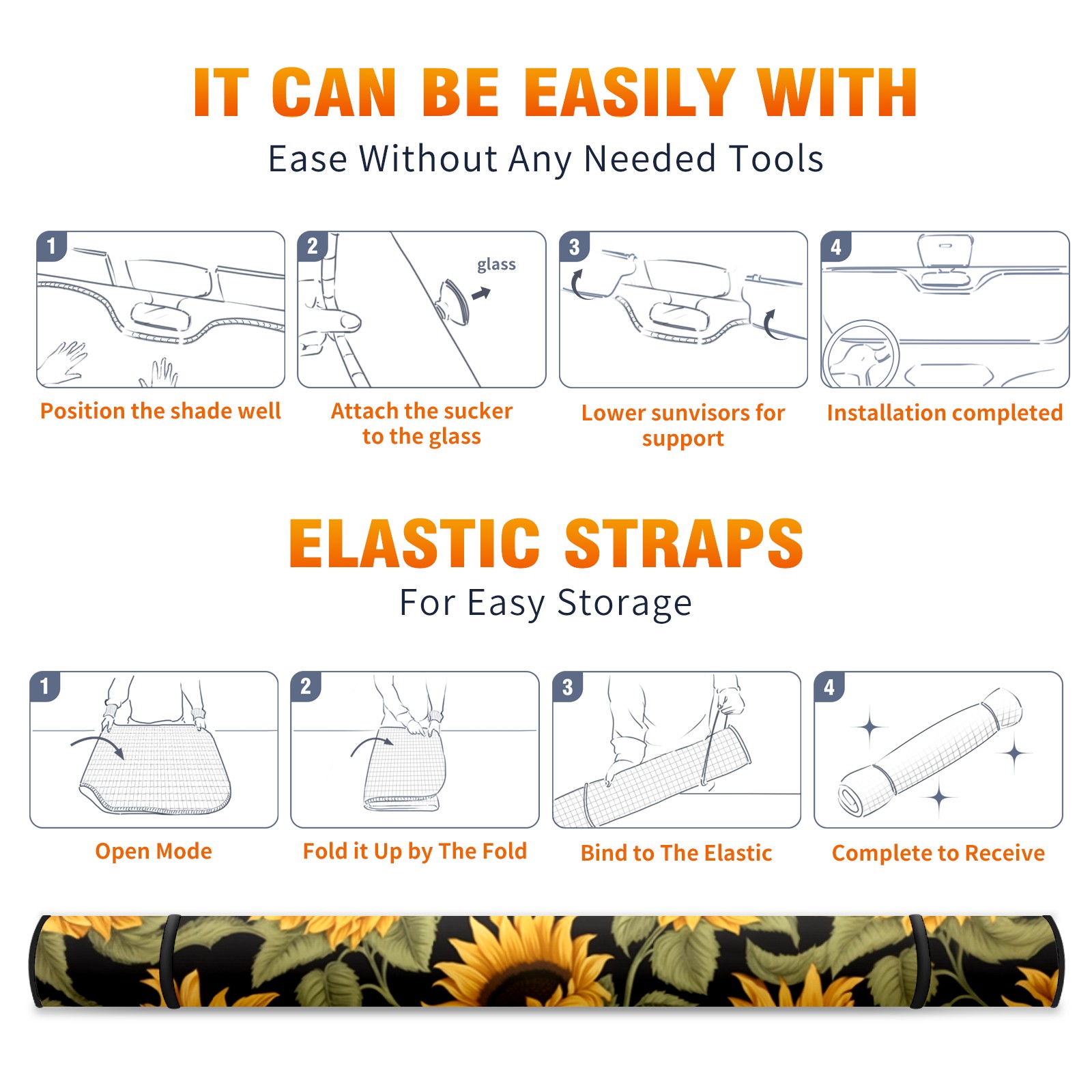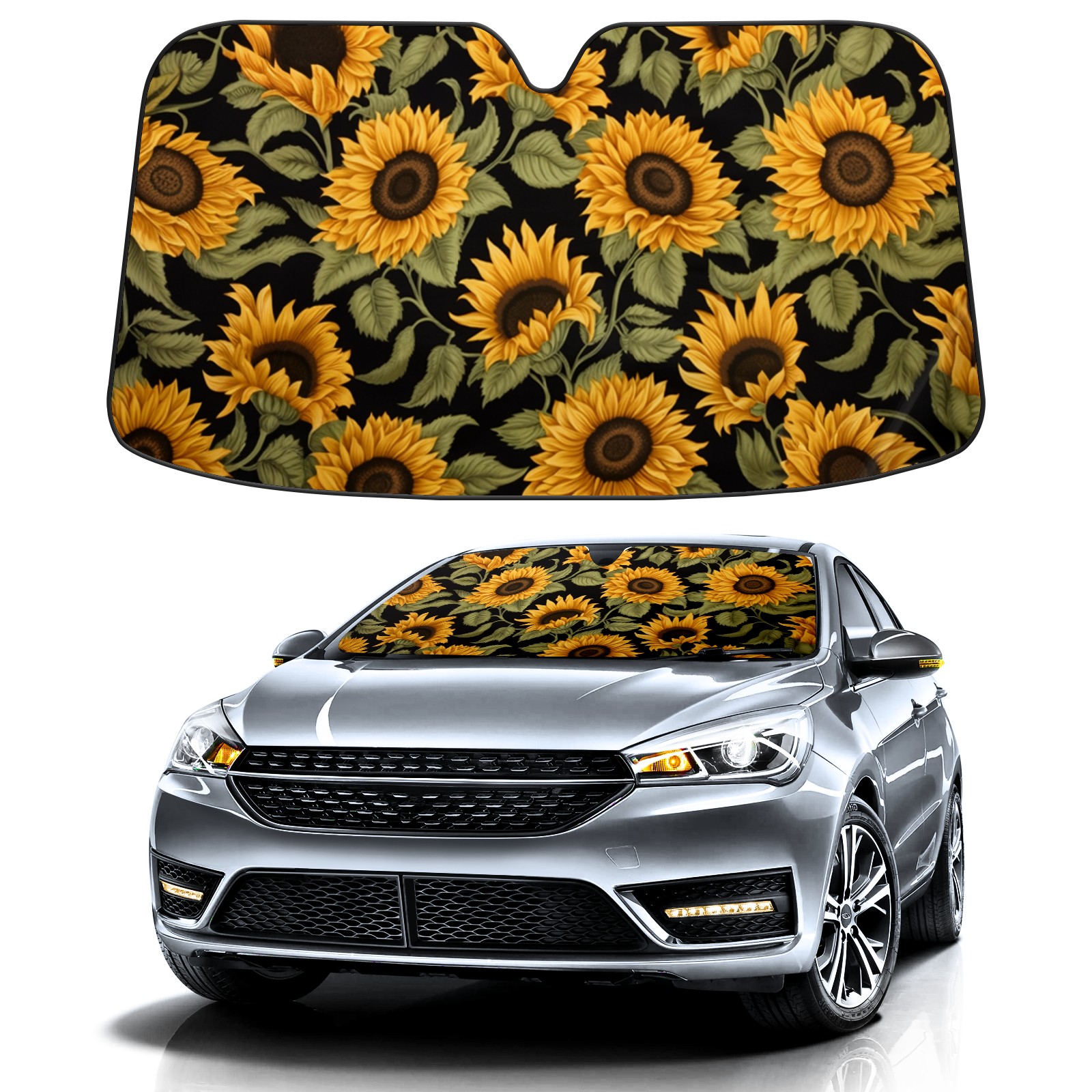 Car Windshield Sun Shade For Front Window Sunflowers_ Foldable Vehicle Windshield Car Sun Visor Covers Automotive Window Protector Car Camping Privacy Sun Blocker
