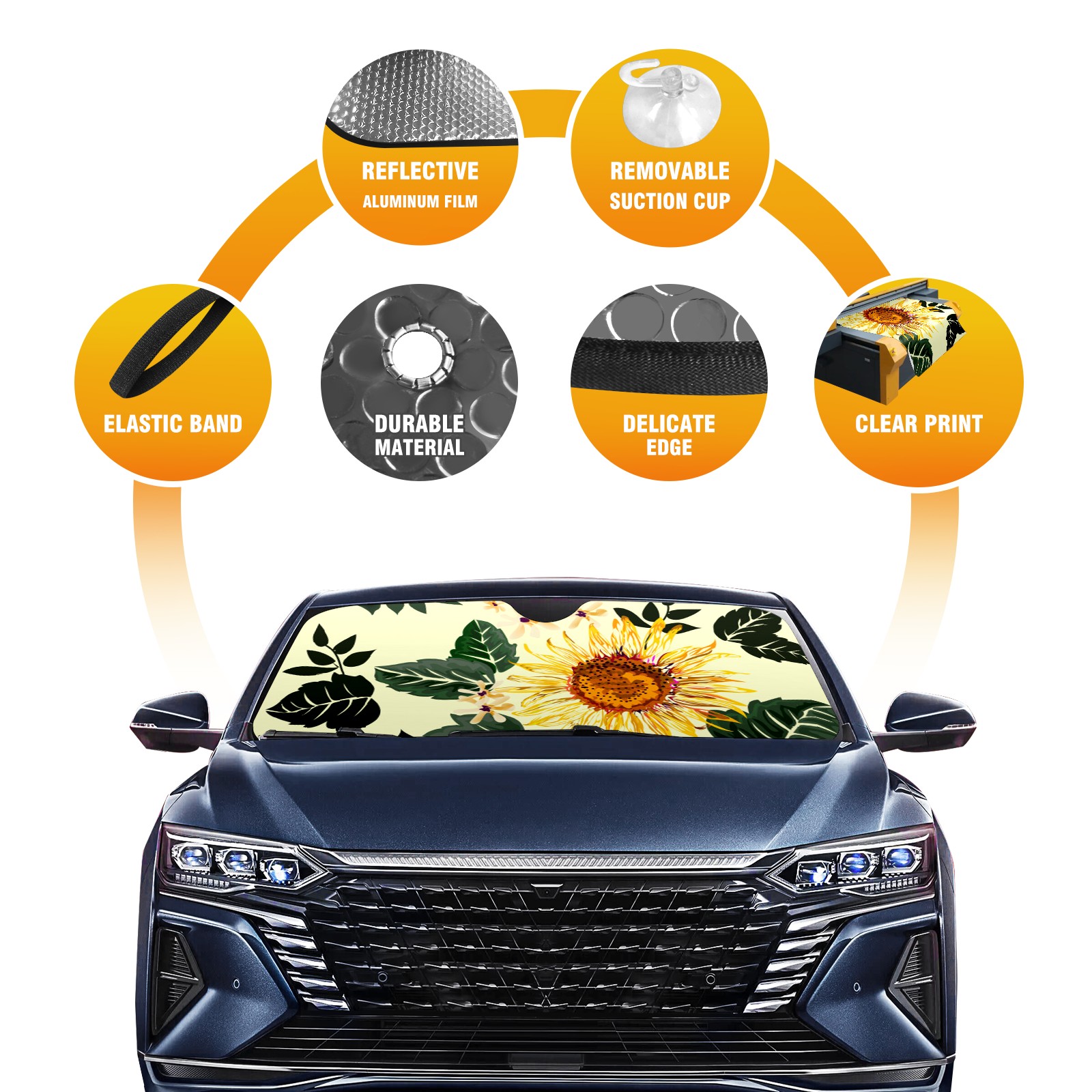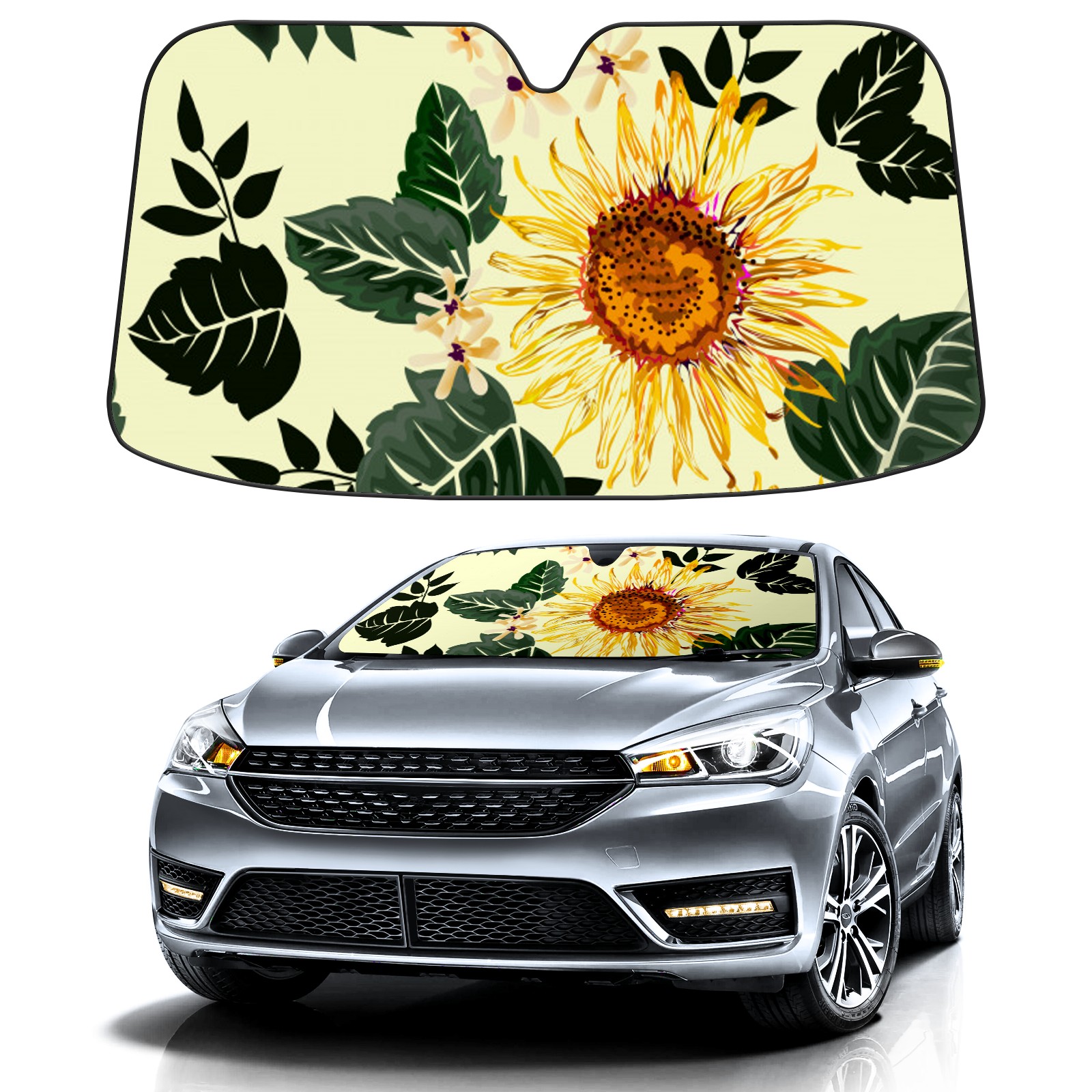 Car Windshield Sun Shade For Front Window Sunflower Foldable Vehicle Windshield Car Sun Visor Covers Automotive Window Protector Car Camping Privacy Sun Blocker