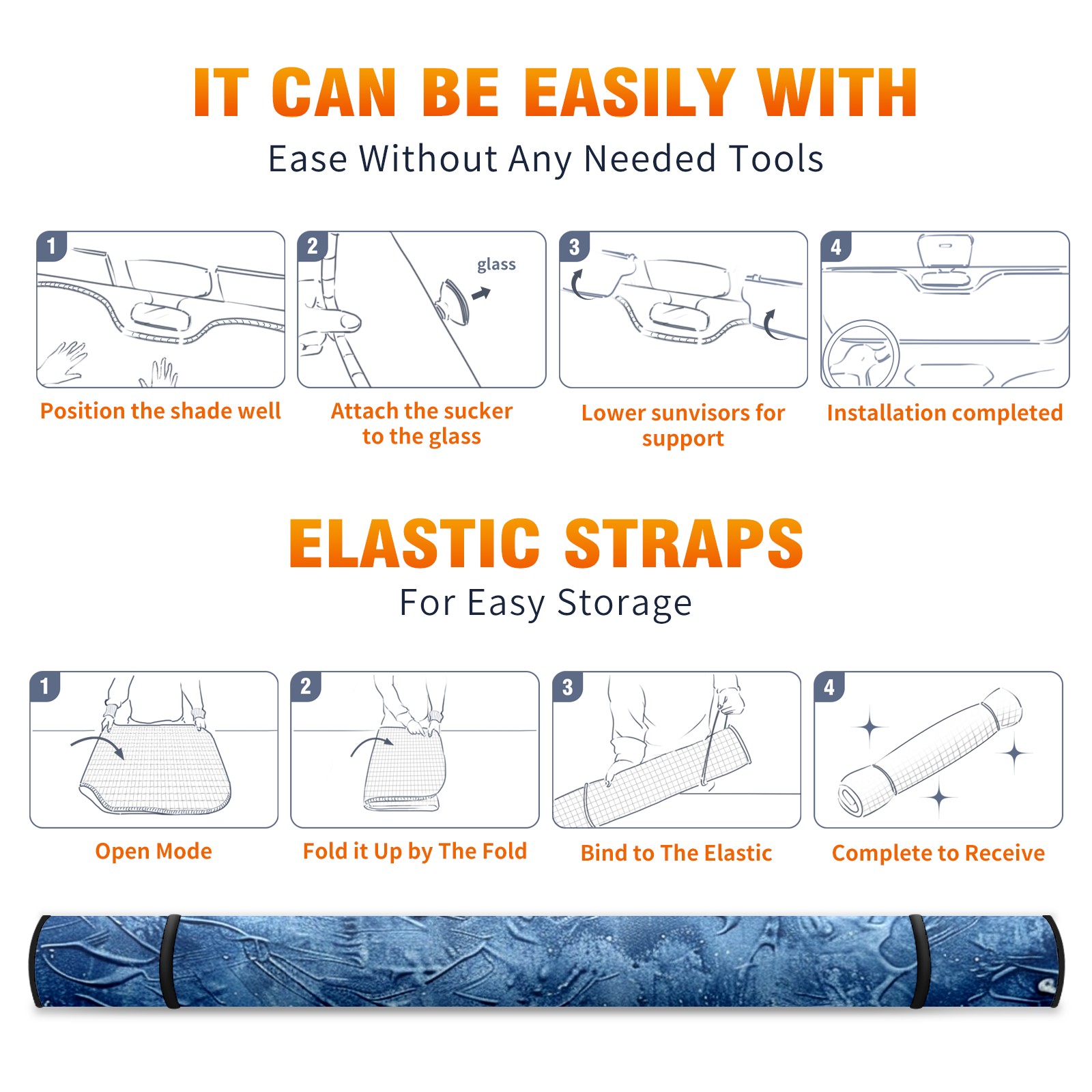 • Diameter /Size 63"L x 33.5"W Made from excellent materials which makes it sturdy and protects the car from the sun. Easy to use and pack. Makes the interior of the car cooler.You can easily stash the sunshade in the storage bag or store long term.It open and closes easy. Also the leather storage bag is durable and easy to put the umbrella back into.This windshield sunshade provides complete coverage and keeps your car interior cool under direct sun. It is easy to open and position under the windshield and around the rear-view mirror. Makes Your Car Easy To Identify, Perfect For Finding Your Car In Crowded Parking Lots And Garages.Great Choice: It Is A Great Gift For Dad, Boyfriend, Brother, Brother And Uncle, Friends, Classmates, Family And So On. Notice: Due To Difference Computer Monitors, The Color Maybe Slightly Different From Picture. As Different Measurement Methods, Measurement Data Will Float Within 2%.I Hope You Understand. If You Have Any Question About The Item Please Do Not Hesitate To Contact Us Immediately And We Will Give You A Satisfactory Reply Within 24 Hours.