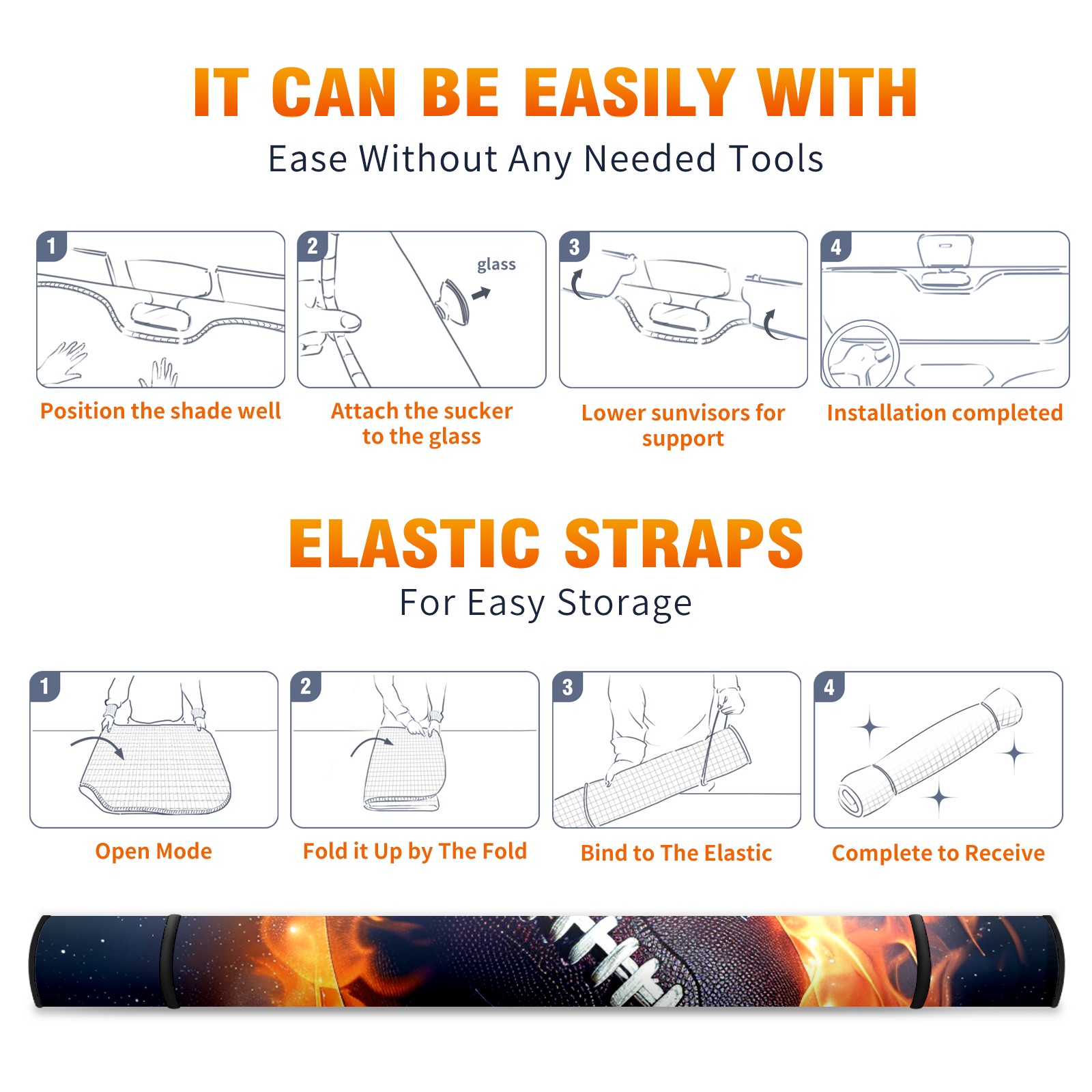 Car Windshield Sun Shade For Front Window American Football In Flames (4) Foldable Vehicle Windshield Car Sun Visor Covers Automotive Window Protector Car Camping Privacy Sun Blocker