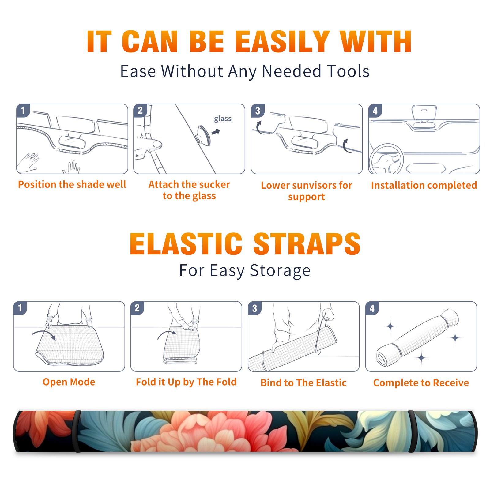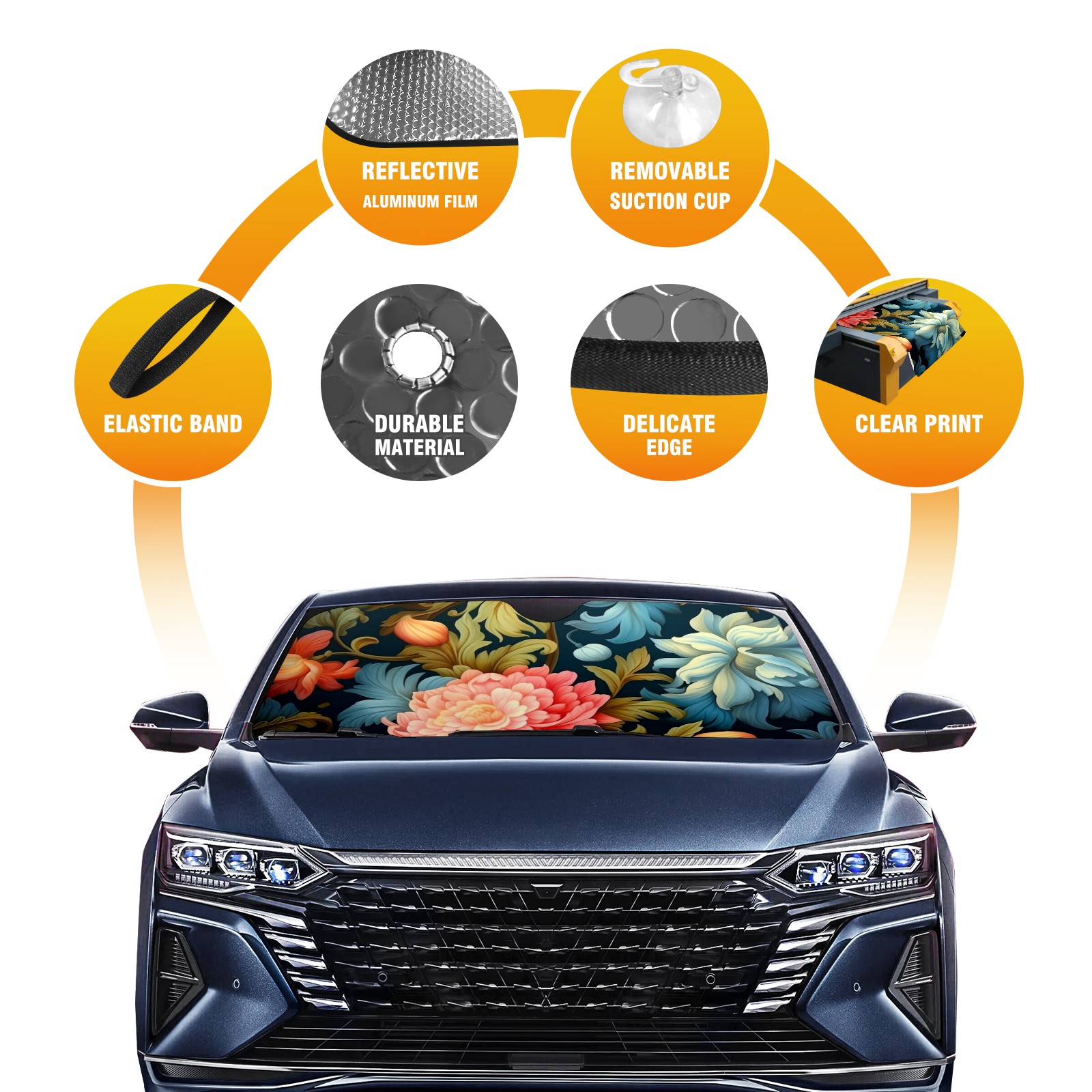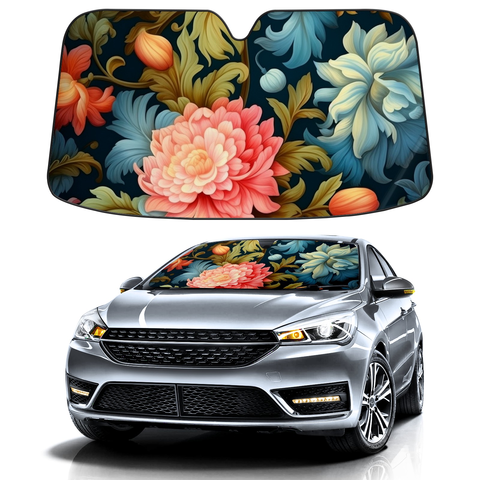 Car Windshield Sun Shade For Front Window Beautiful Flower Foldable Vehicle Windshield Car Sun Visor Covers Automotive Window Protector Car Camping Privacy Sun Blocker