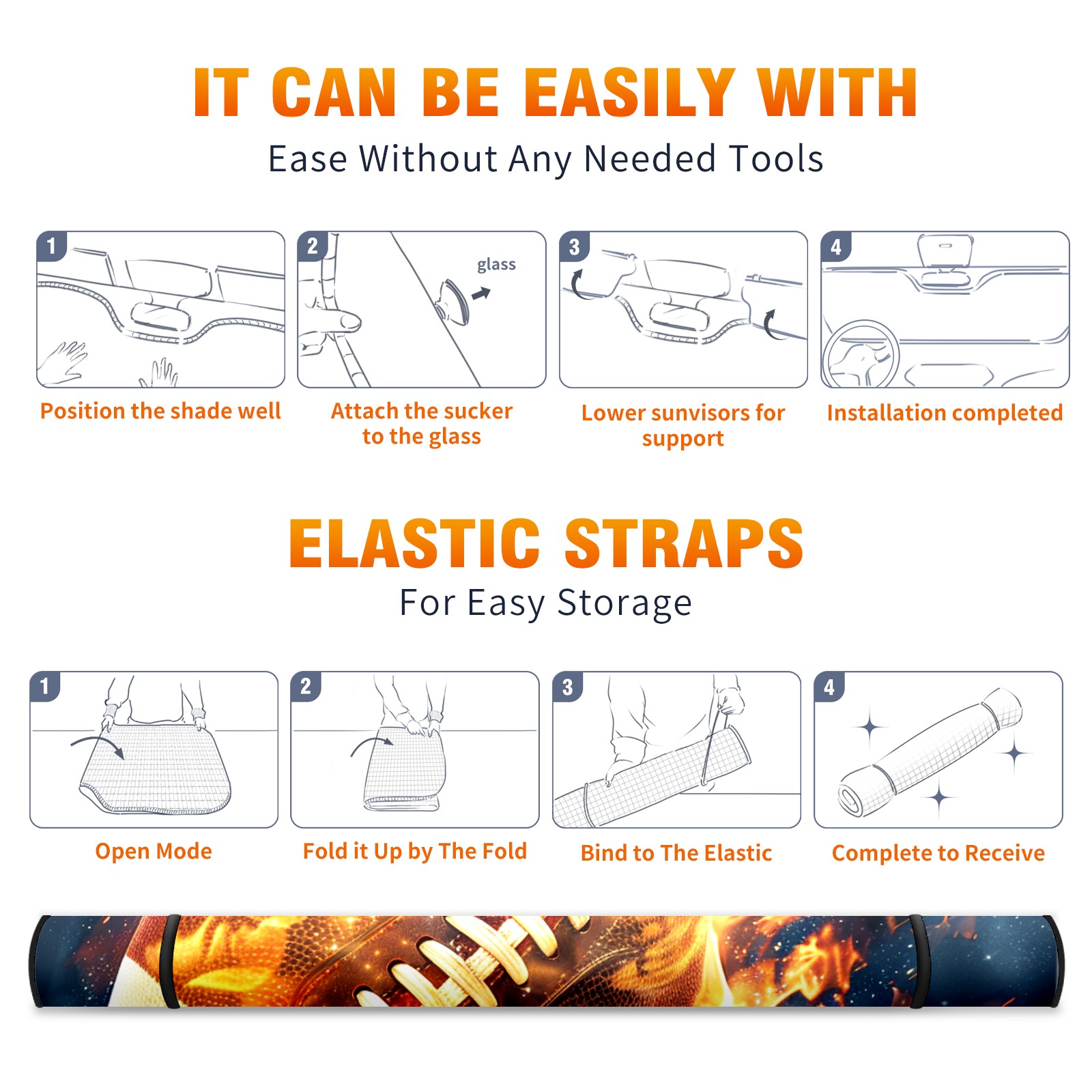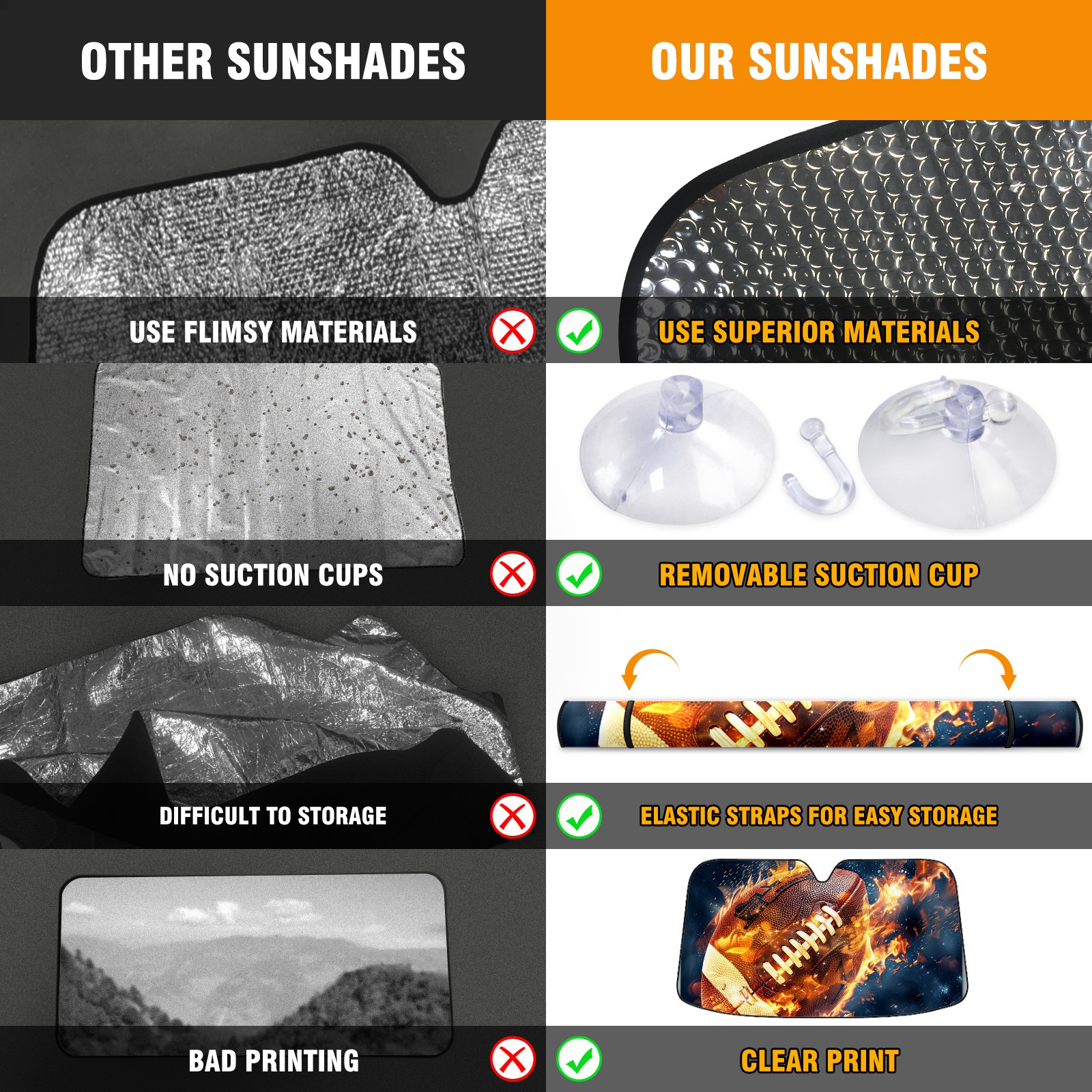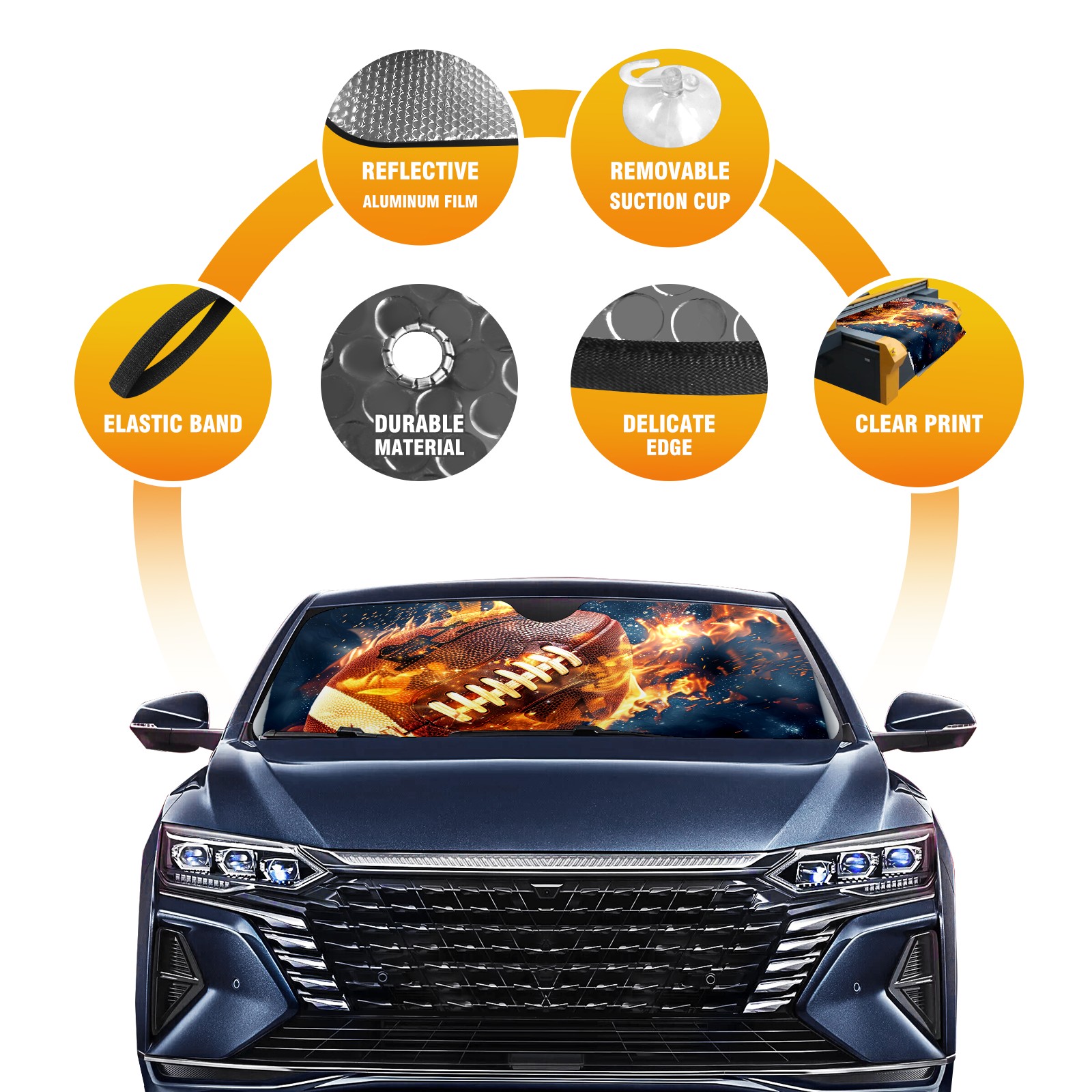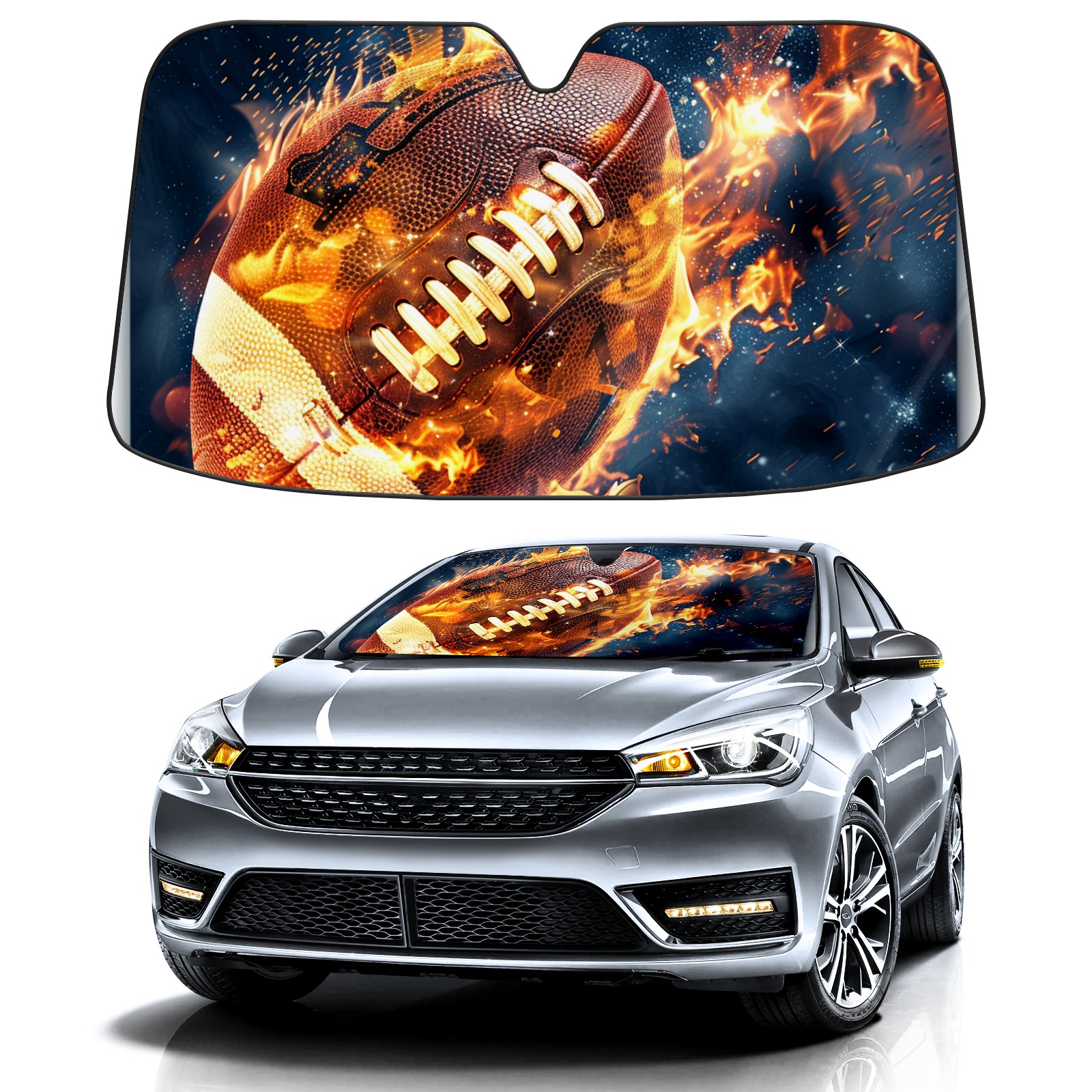 Car Windshield Sun Shade For Front Window American Football In Flames (2) Foldable Vehicle Windshield Car Sun Visor Covers Automotive Window Protector Car Camping Privacy Sun Blocker