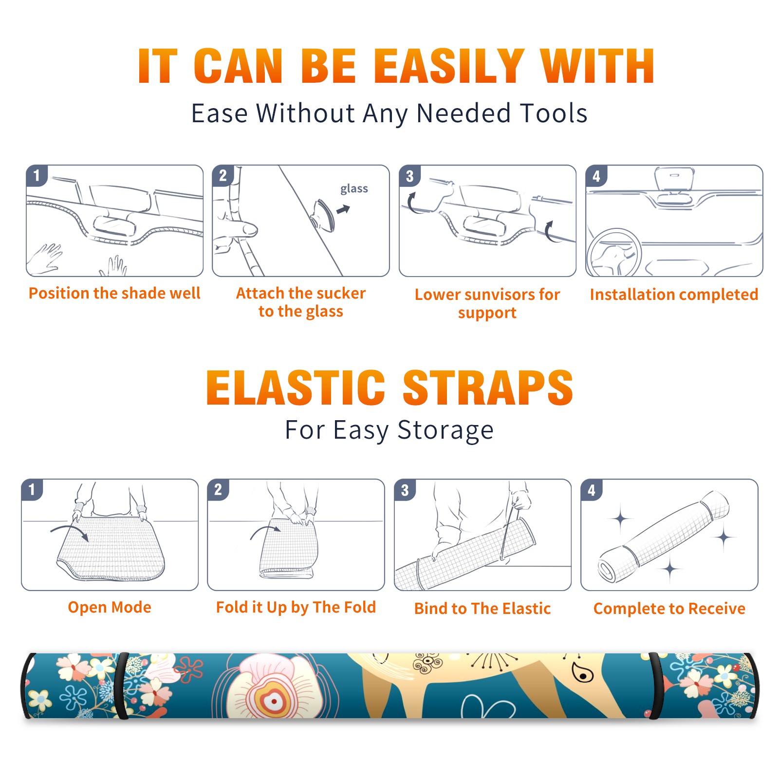 • Diameter /Size 63"L x 33.5"W Made from excellent materials which makes it sturdy and protects the car from the sun. Easy to use and pack. Makes the interior of the car cooler.You can easily stash the sunshade in the storage bag or store long term.It open and closes easy. Also the leather storage bag is durable and easy to put the umbrella back into.This windshield sunshade provides complete coverage and keeps your car interior cool under direct sun. It is easy to open and position under the windshield and around the rear-view mirror. Makes Your Car Easy To Identify, Perfect For Finding Your Car In Crowded Parking Lots And Garages.Great Choice: It Is A Great Gift For Dad, Boyfriend, Brother, Brother And Uncle, Friends, Classmates, Family And So On. Notice: Due To Difference Computer Monitors, The Color Maybe Slightly Different From Picture. As Different Measurement Methods, Measurement Data Will Float Within 2%.I Hope You Understand. If You Have Any Question About The Item Please Do Not Hesitate To Contact Us Immediately And We Will Give You A Satisfactory Reply Within 24 Hours.
