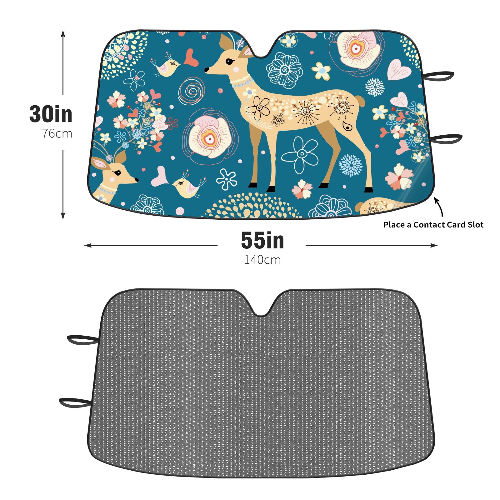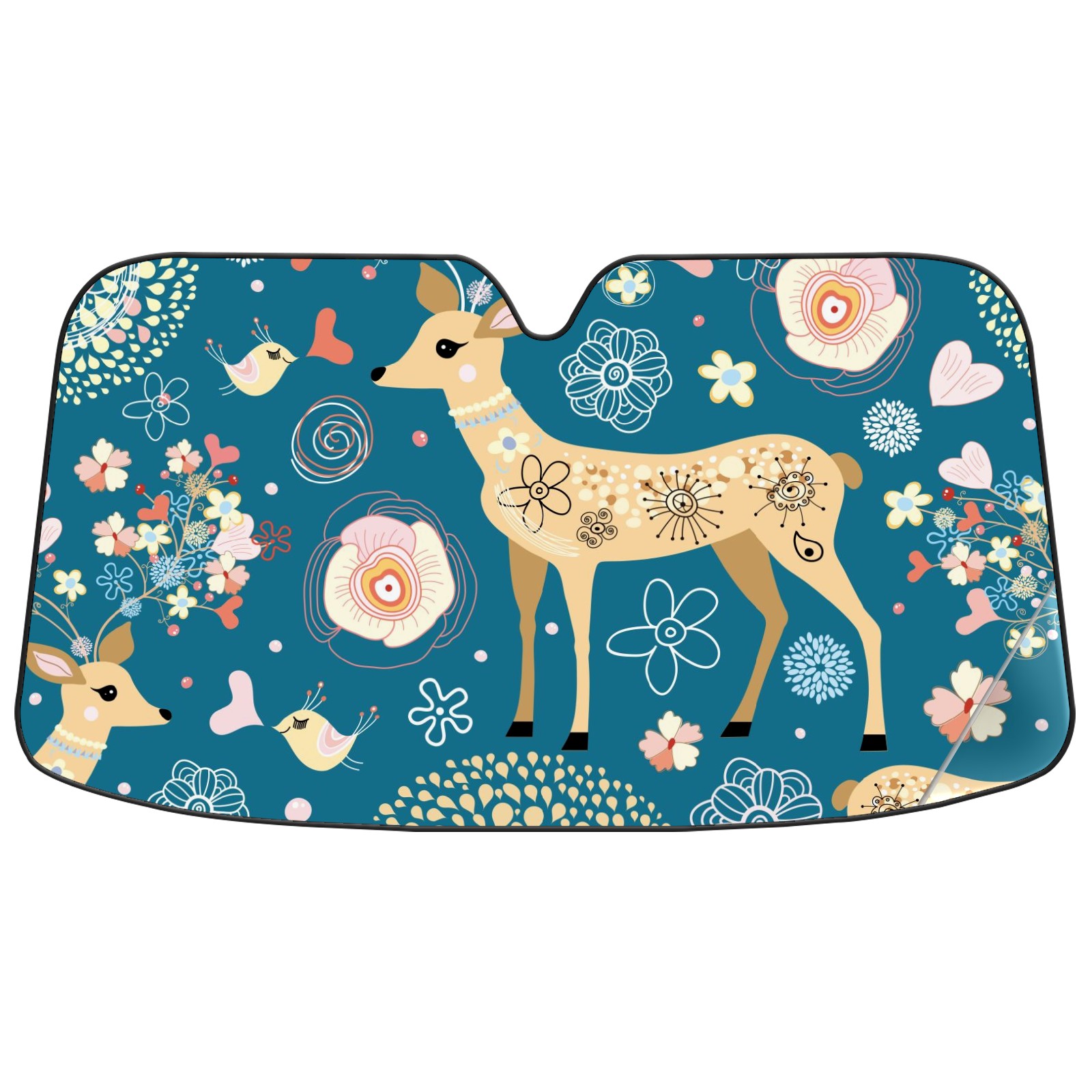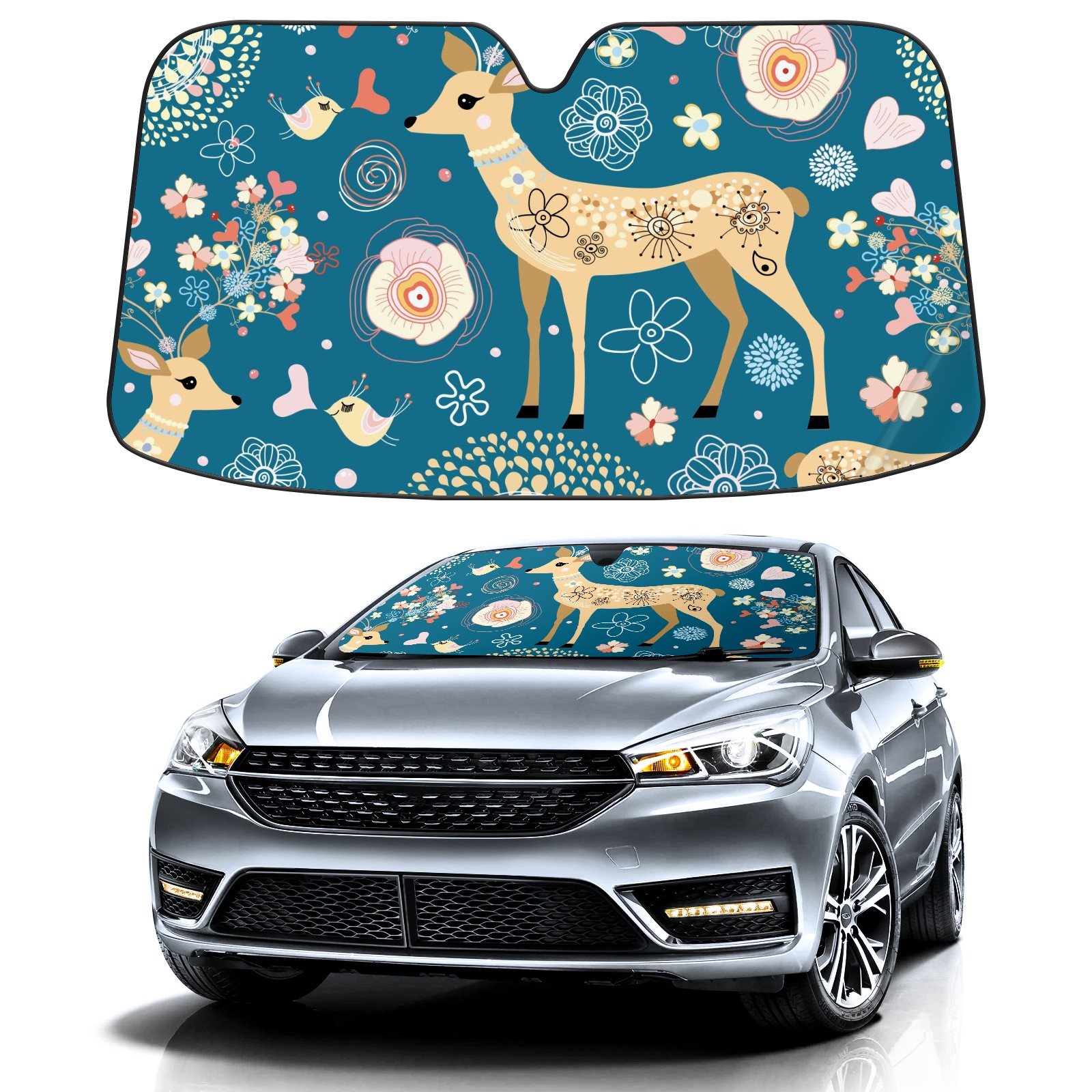 Car Windshield Sun Shade For Front Window Cute Deer Flowers Foldable Vehicle Windshield Car Sun Visor Covers Automotive Window Protector Car Camping Privacy Sun Blocker