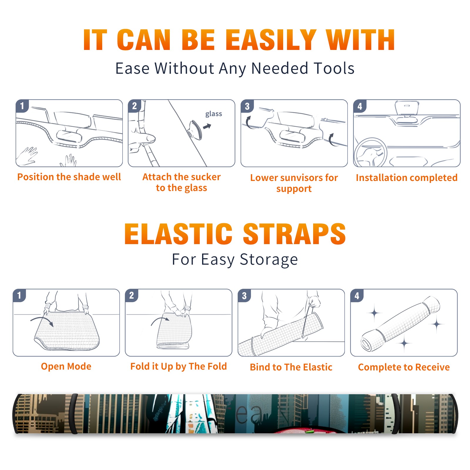 • Diameter /Size 63"L x 33.5"W Made from excellent materials which makes it sturdy and protects the car from the sun. Easy to use and pack. Makes the interior of the car cooler.You can easily stash the sunshade in the storage bag or store long term.It open and closes easy. Also the leather storage bag is durable and easy to put the umbrella back into.This windshield sunshade provides complete coverage and keeps your car interior cool under direct sun. It is easy to open and position under the windshield and around the rear-view mirror. Makes Your Car Easy To Identify, Perfect For Finding Your Car In Crowded Parking Lots And Garages.Great Choice: It Is A Great Gift For Dad, Boyfriend, Brother, Brother And Uncle, Friends, Classmates, Family And So On. Notice: Due To Difference Computer Monitors, The Color Maybe Slightly Different From Picture. As Different Measurement Methods, Measurement Data Will Float Within 2%.I Hope You Understand. If You Have Any Question About The Item Please Do Not Hesitate To Contact Us Immediately And We Will Give You A Satisfactory Reply Within 24 Hours.