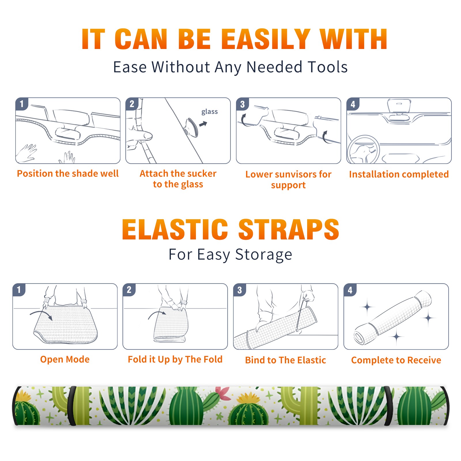 • Diameter /Size 63"L x 33.5"W Made from excellent materials which makes it sturdy and protects the car from the sun. Easy to use and pack. Makes the interior of the car cooler.You can easily stash the sunshade in the storage bag or store long term.It open and closes easy. Also the leather storage bag is durable and easy to put the umbrella back into.This windshield sunshade provides complete coverage and keeps your car interior cool under direct sun. It is easy to open and position under the windshield and around the rear-view mirror. Makes Your Car Easy To Identify, Perfect For Finding Your Car In Crowded Parking Lots And Garages.Great Choice: It Is A Great Gift For Dad, Boyfriend, Brother, Brother And Uncle, Friends, Classmates, Family And So On. Notice: Due To Difference Computer Monitors, The Color Maybe Slightly Different From Picture. As Different Measurement Methods, Measurement Data Will Float Within 2%.I Hope You Understand. If You Have Any Question About The Item Please Do Not Hesitate To Contact Us Immediately And We Will Give You A Satisfactory Reply Within 24 Hours.