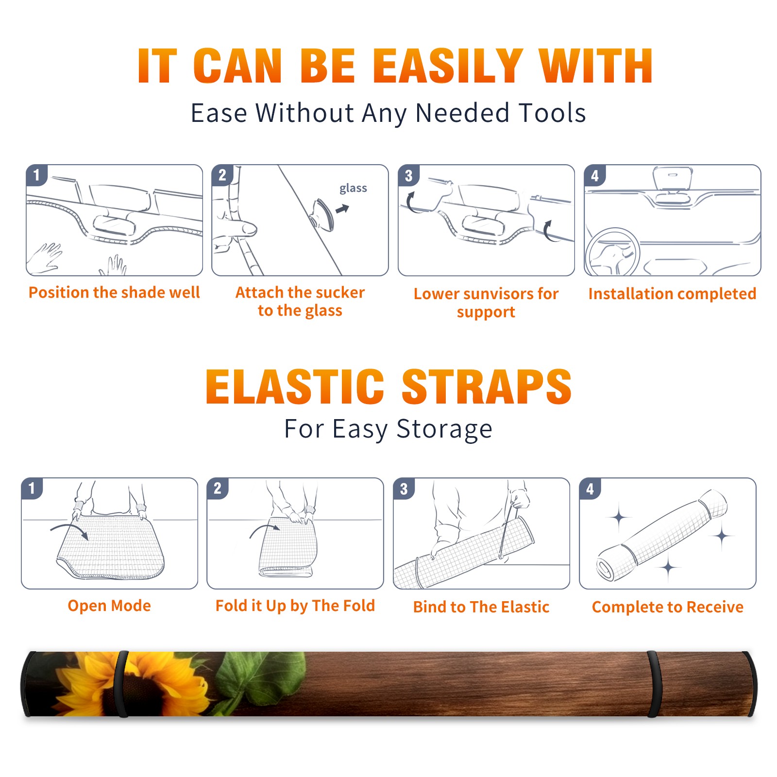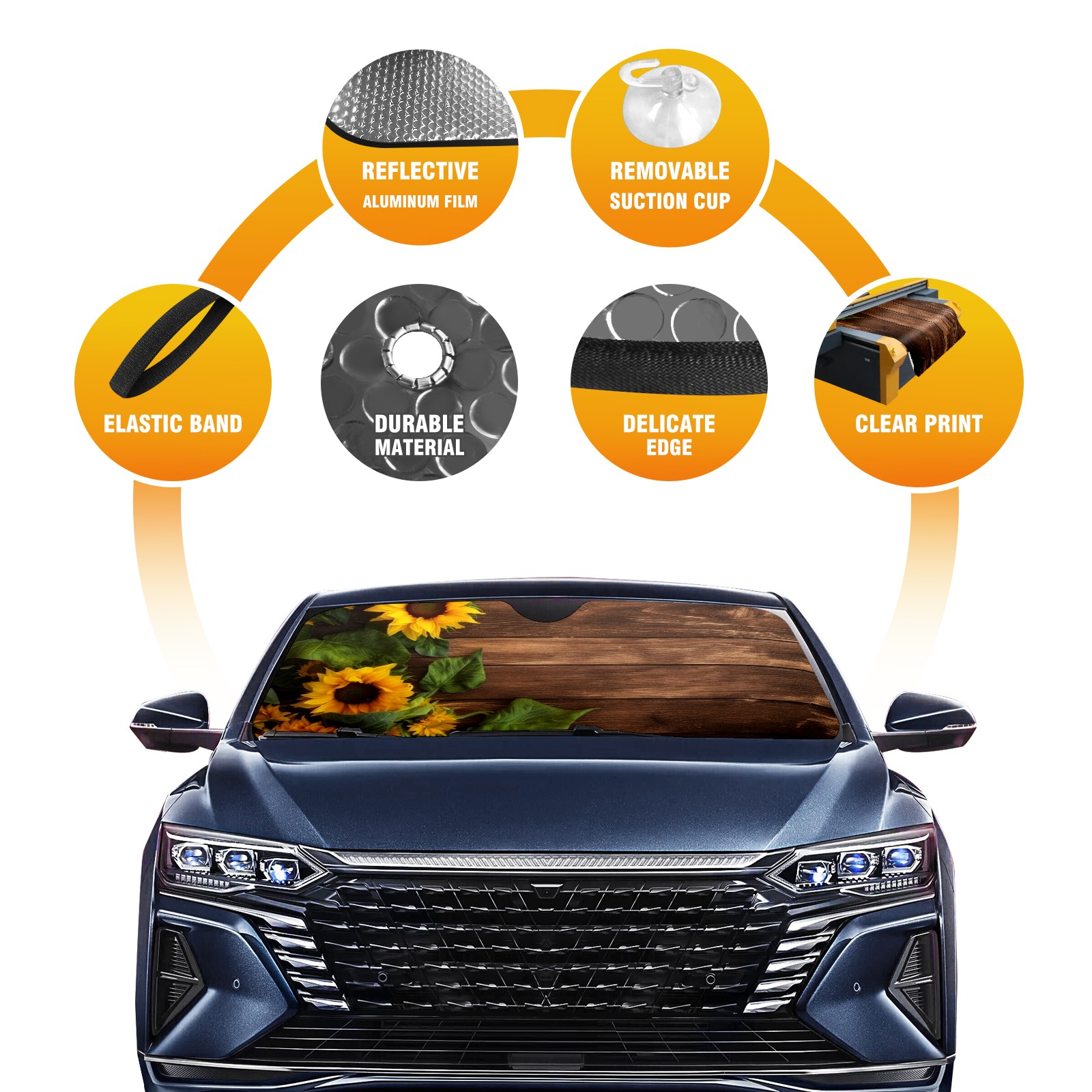 Car Windshield Sun Shade For Front Window Sunflowers Foldable Vehicle Windshield Car Sun Visor Covers Automotive Window Protector Car Camping Privacy Sun Blocker