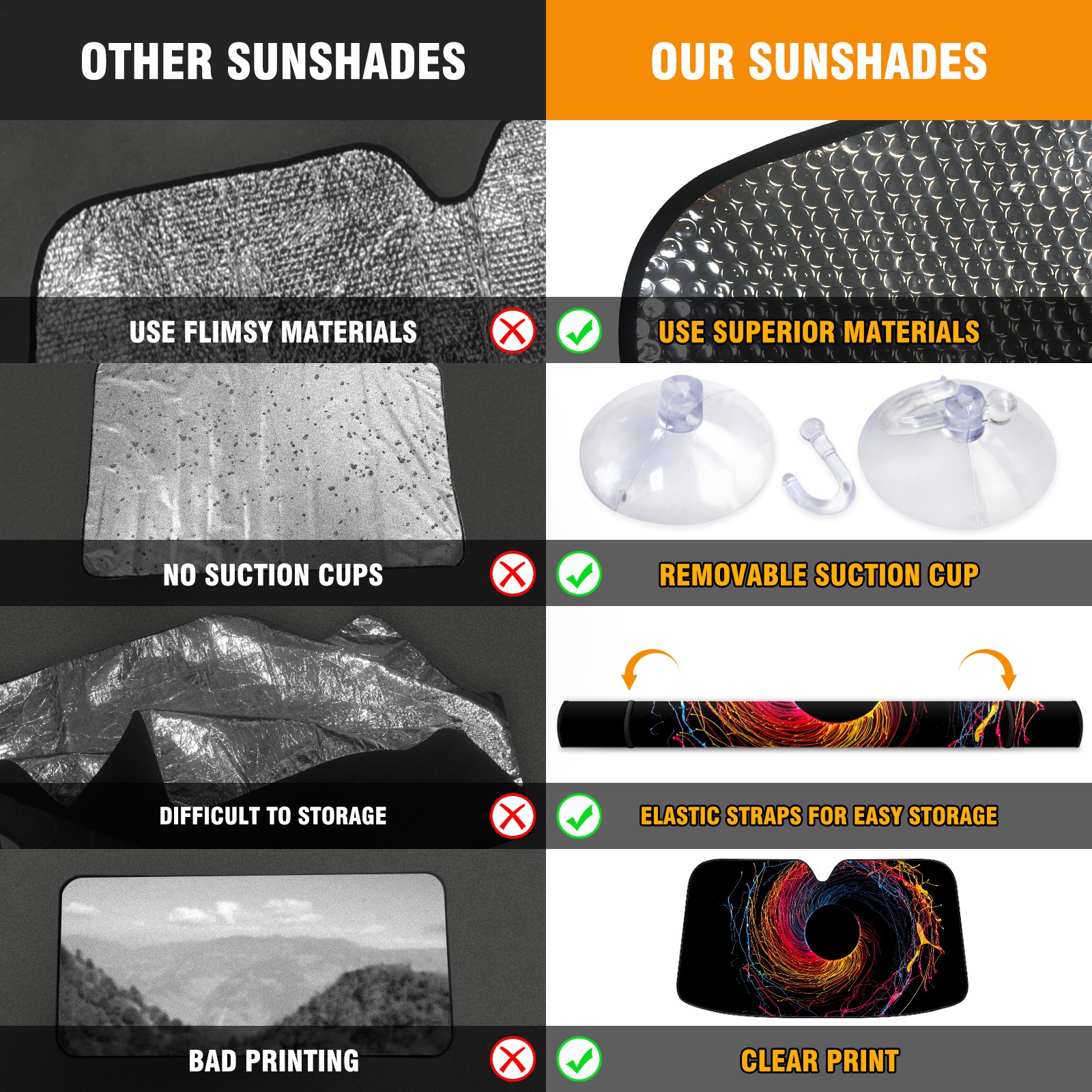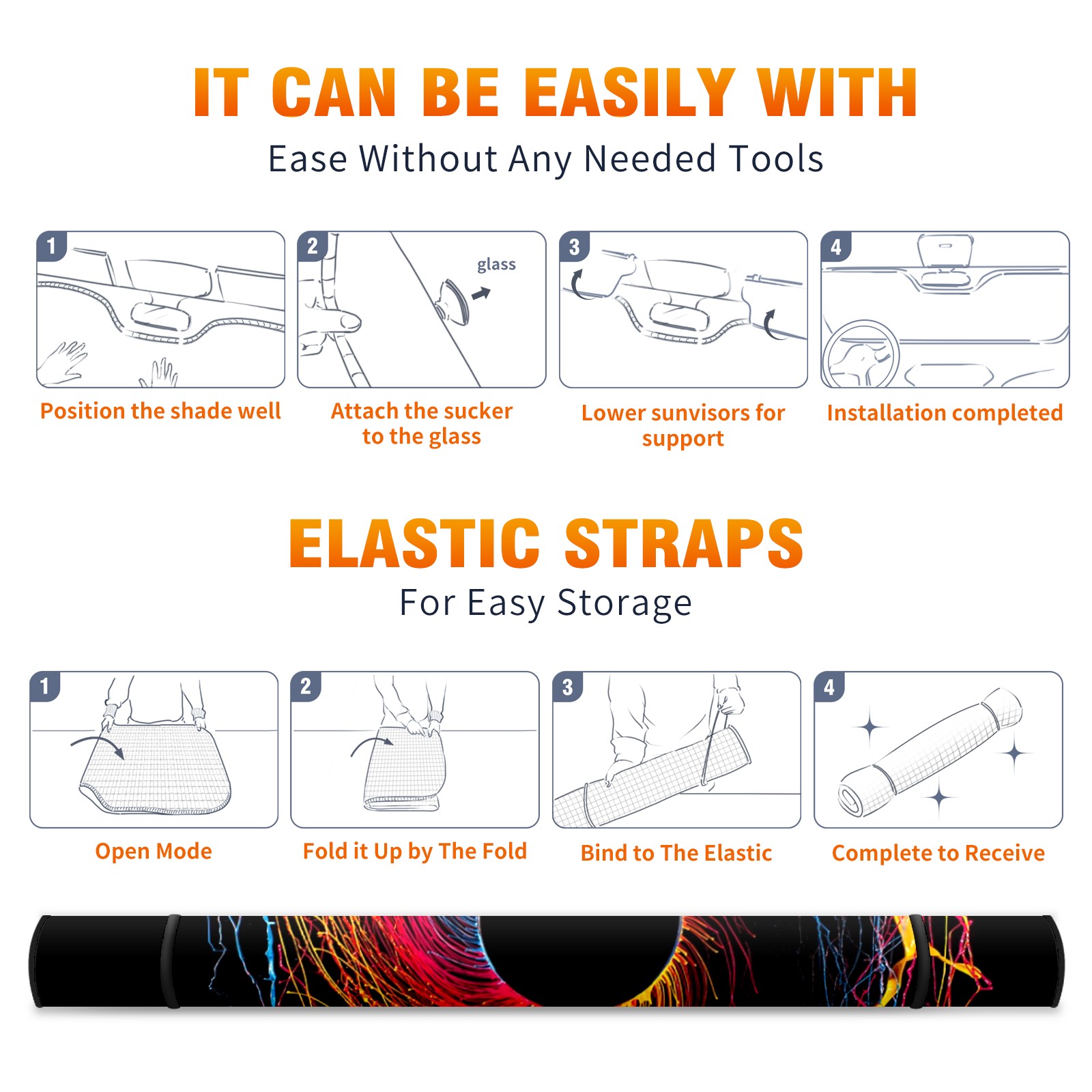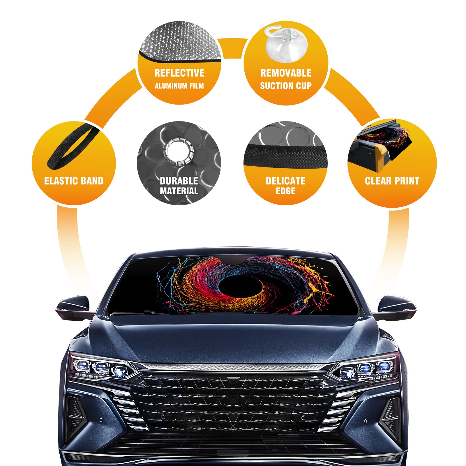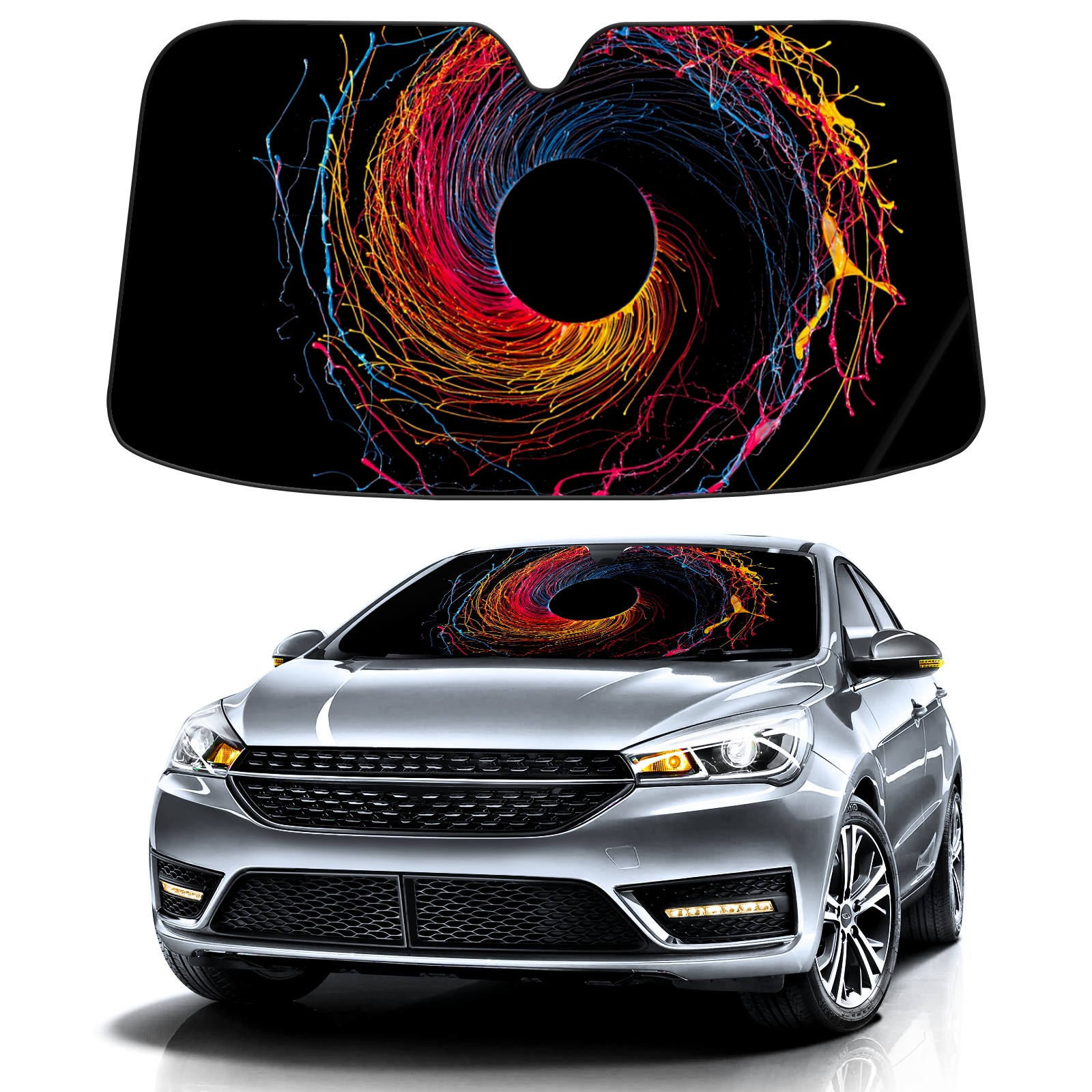 • Diameter /Size 63"L x 33.5"W Made from excellent materials which makes it sturdy and protects the car from the sun. Easy to use and pack. Makes the interior of the car cooler.You can easily stash the sunshade in the storage bag or store long term.It open and closes easy. Also the leather storage bag is durable and easy to put the umbrella back into.This windshield sunshade provides complete coverage and keeps your car interior cool under direct sun. It is easy to open and position under the windshield and around the rear-view mirror. Makes Your Car Easy To Identify, Perfect For Finding Your Car In Crowded Parking Lots And Garages.Great Choice: It Is A Great Gift For Dad, Boyfriend, Brother, Brother And Uncle, Friends, Classmates, Family And So On. Notice: Due To Difference Computer Monitors, The Color Maybe Slightly Different From Picture. As Different Measurement Methods, Measurement Data Will Float Within 2%.I Hope You Understand. If You Have Any Question About The Item Please Do Not Hesitate To Contact Us Immediately And We Will Give You A Satisfactory Reply Within 24 Hours.