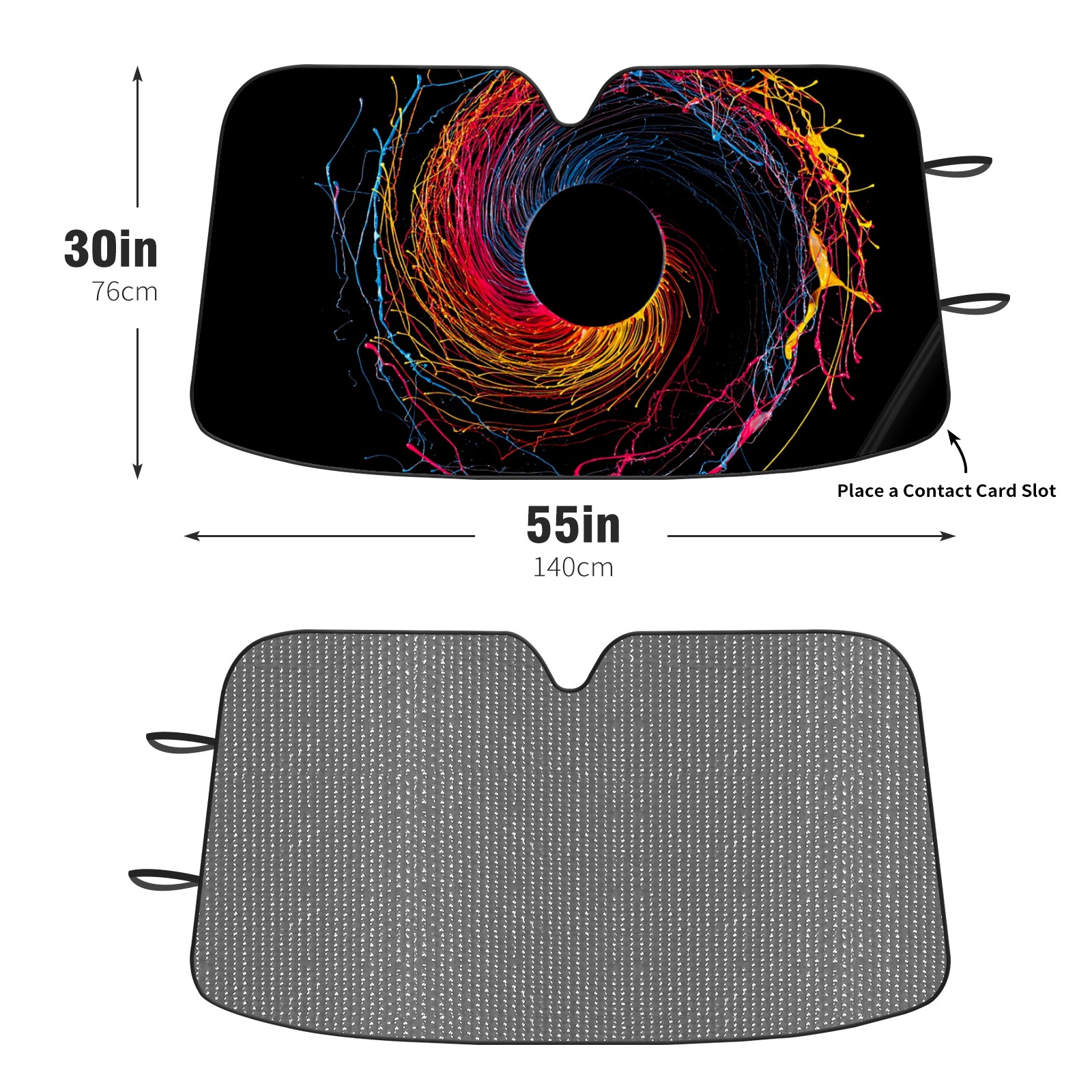 Diameter /Size 63"L x 33.5"W Made from excellent materials which makes it sturdy and protects the car from the sun. Easy to use and pack. Makes the interior of the car cooler.You can easily stash the sunshade in the storage bag or store long term.It open and closes easy. Also the leather storage bag is durable and easy to put the umbrella back into.This windshield sunshade provides complete coverage and keeps your car interior cool under direct sun. It is easy to open and position under the windshield and around the rear-view mirror. Makes Your Car Easy To Identify, Perfect For Finding Your Car In Crowded Parking Lots And Garages.Great Choice: It Is A Great Gift For Dad, Boyfriend, Brother, Brother And Uncle, Friends, Classmates, Family And So On. Notice: Due To Difference Computer Monitors, The Color Maybe Slightly Different From Picture. As Different Measurement Methods, Measurement Data Will Float Within 2%.I Hope You Understand. If You Have Any Question About The Item Please Do Not Hesitate To Contact Us Immediately And We Will Give You A Satisfactory Reply Within 24 Hours.