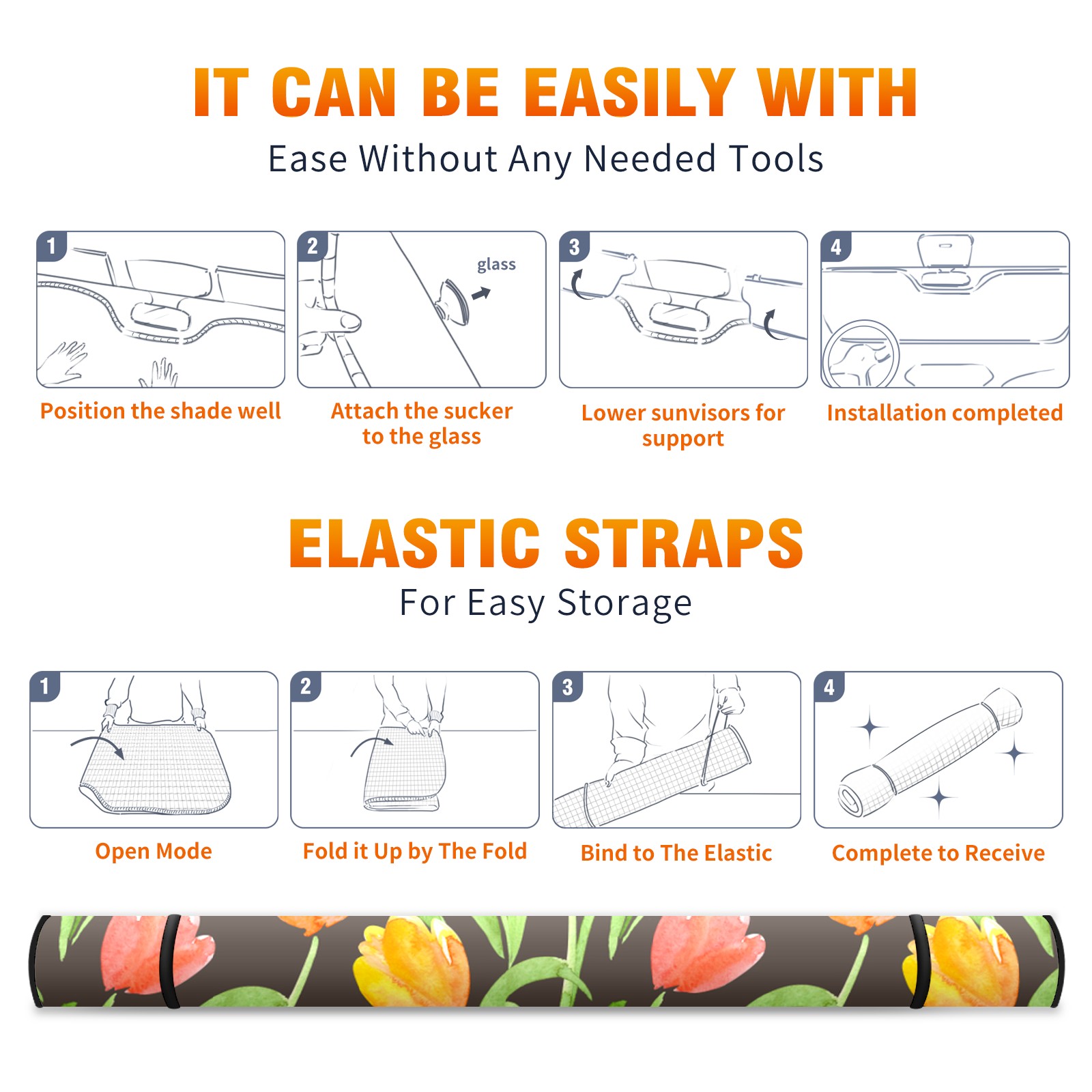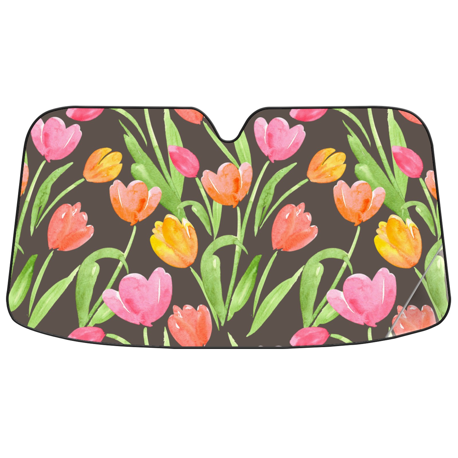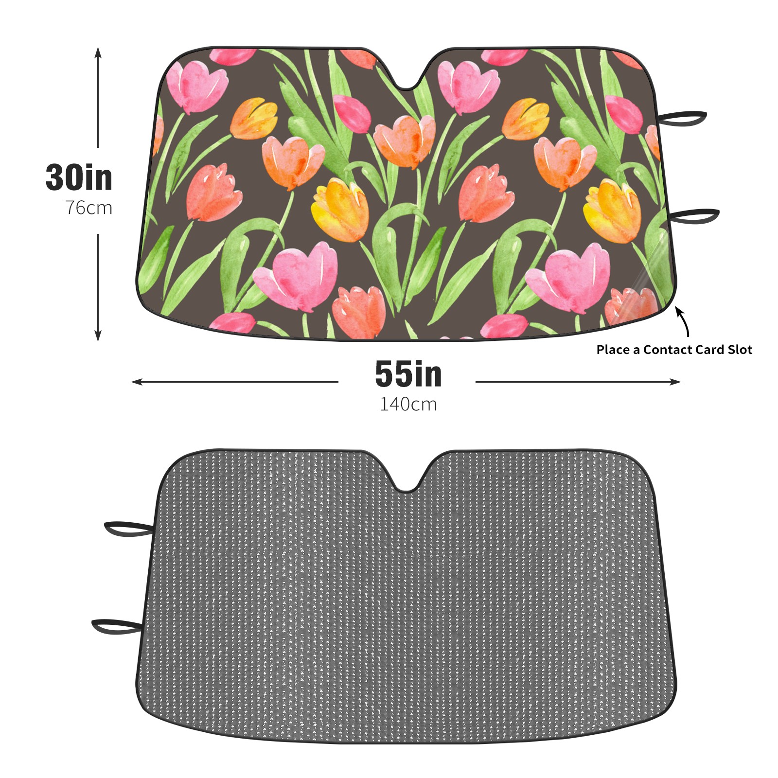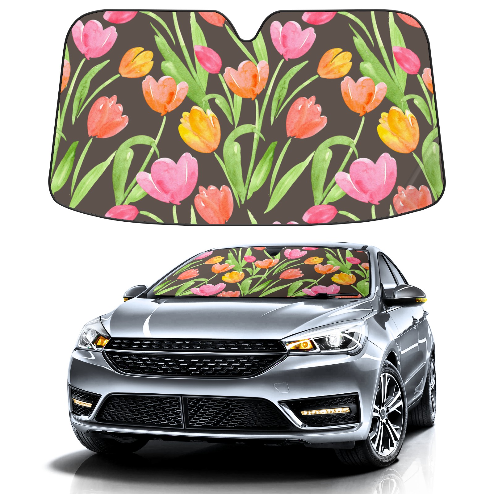 Car Windshield Sun Shade For Front Window Tulip Flowers Foldable Vehicle Windshield Car Sun Visor Covers Automotive Window Protector Car Camping Privacy Sun Blocker