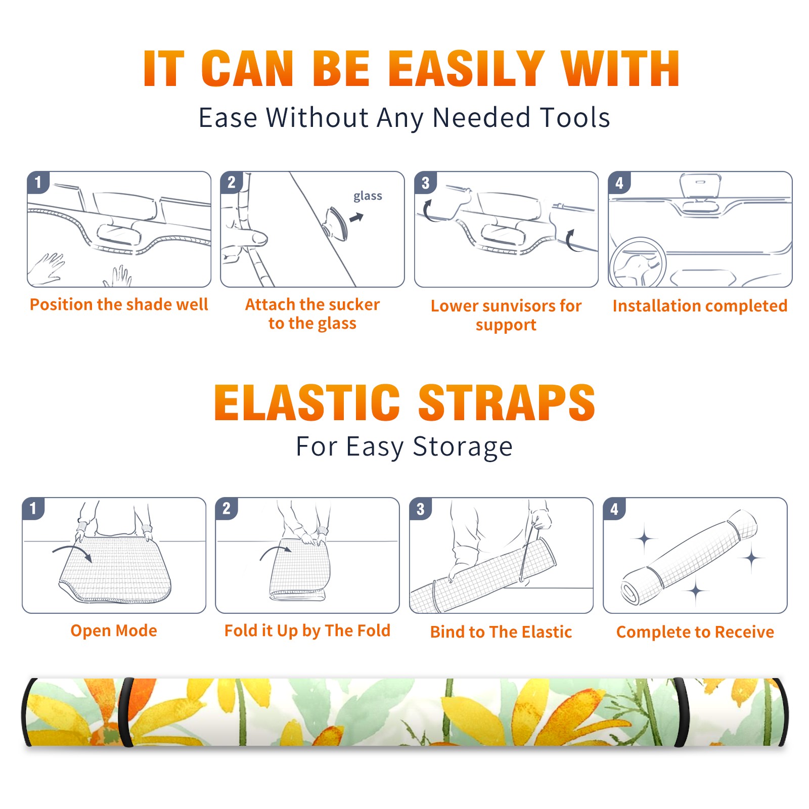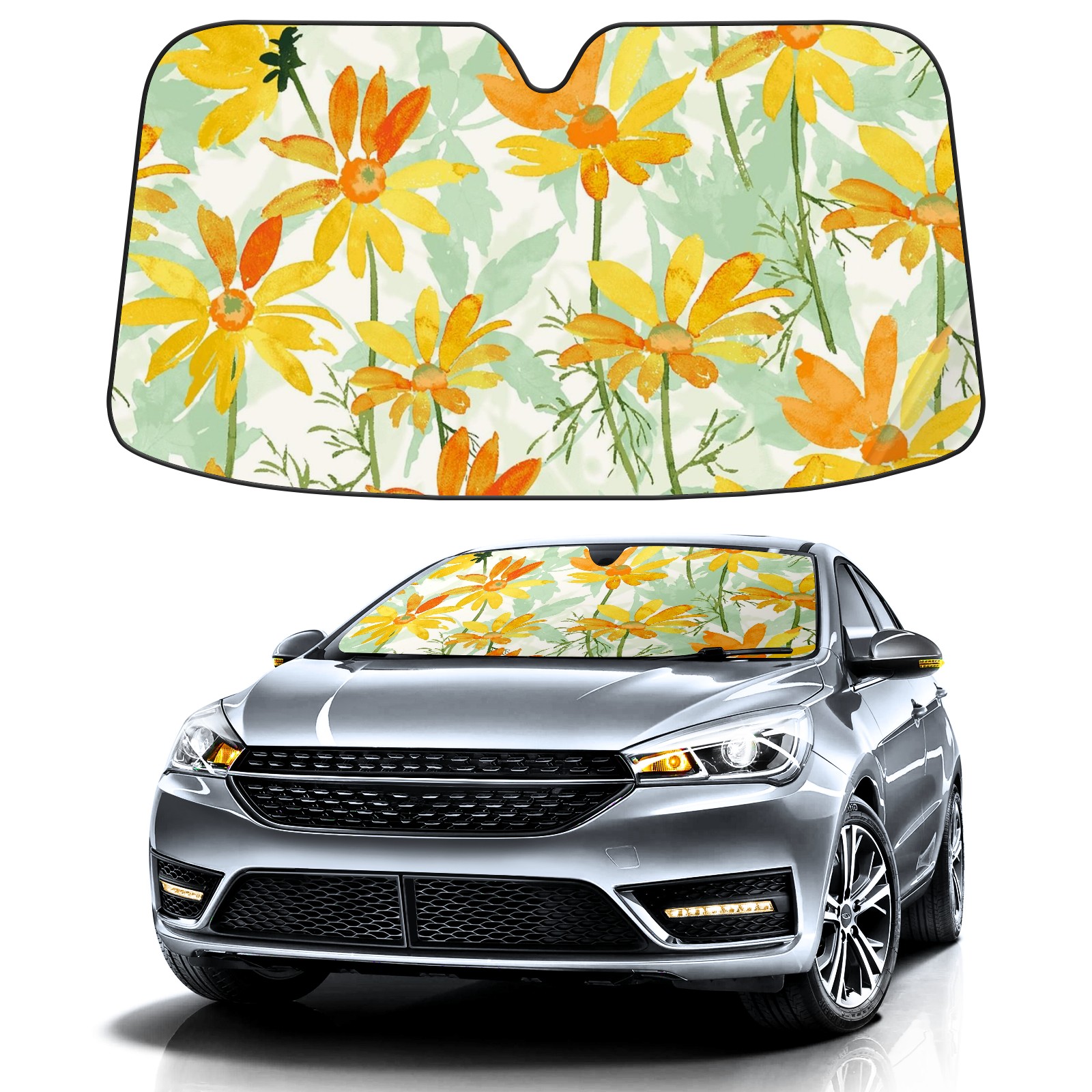 Car Windshield Sun Shade For Front Window Flower Painting Foldable Vehicle Windshield Car Sun Visor Covers Automotive Window Protector Car Camping Privacy Sun Blocker