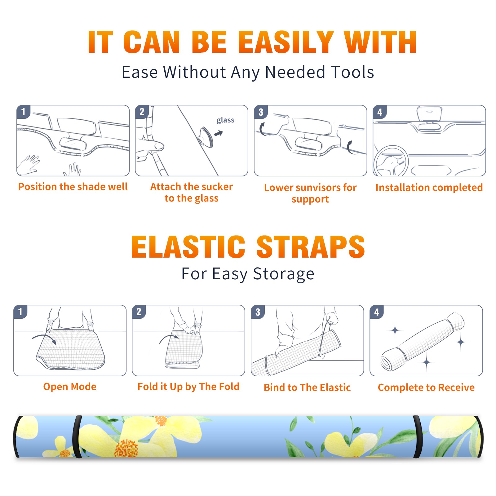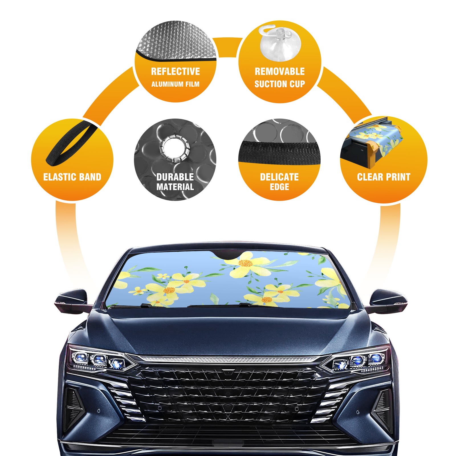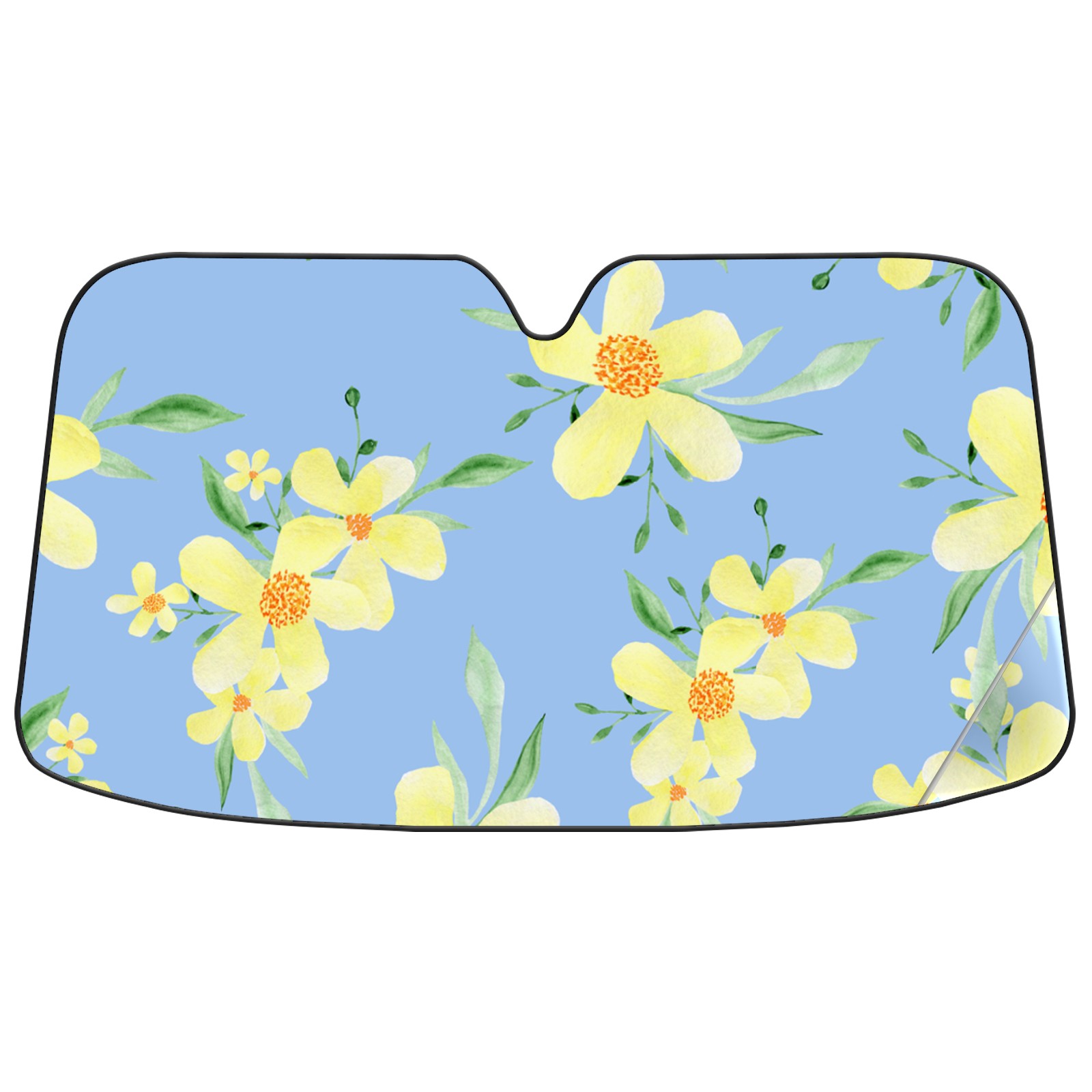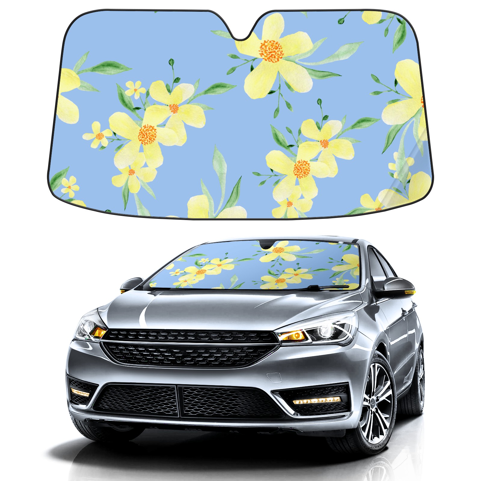 Car Windshield Sun Shade For Front Window Yellow Flowers Foldable Vehicle Windshield Car Sun Visor Covers Automotive Window Protector Car Camping Privacy Sun Blocker