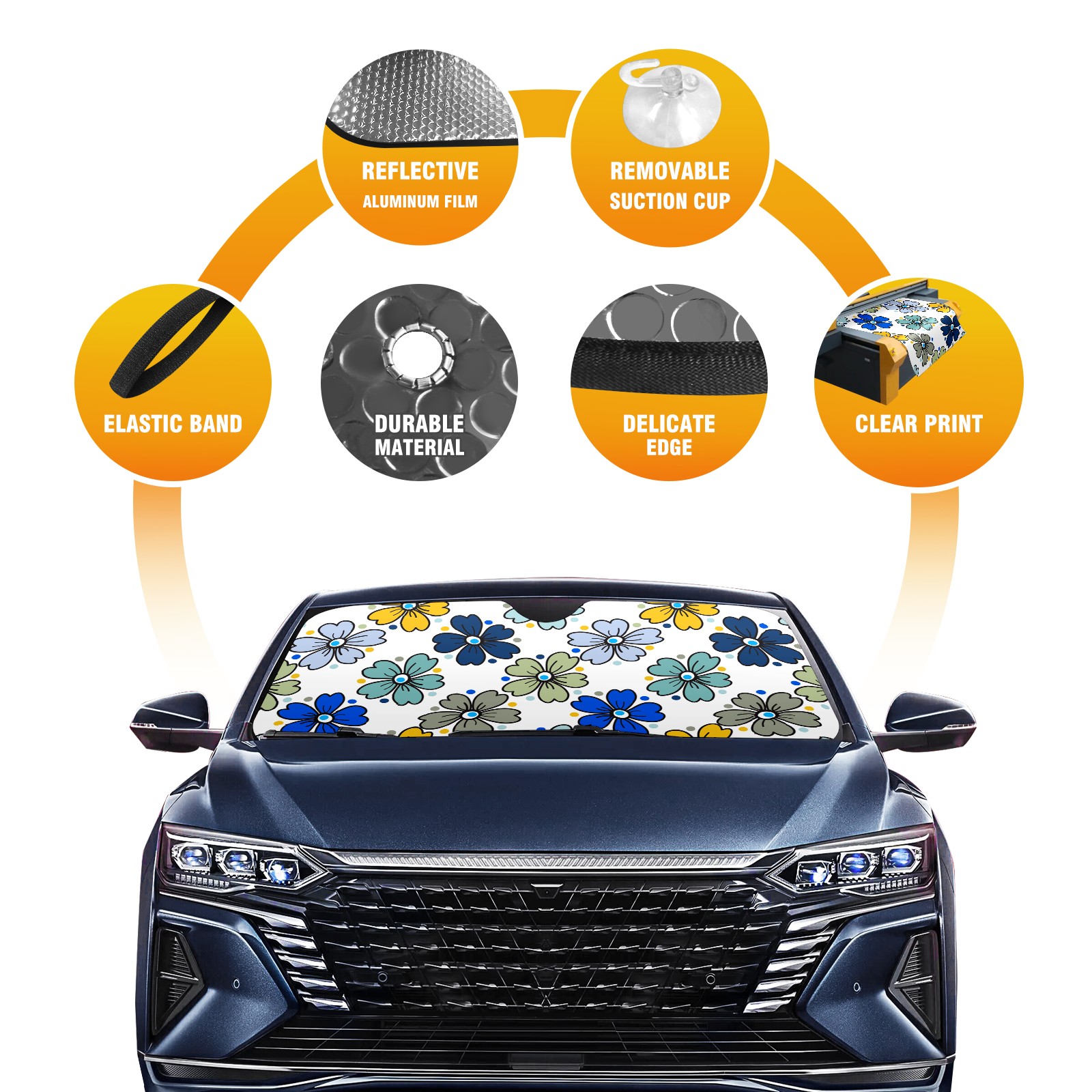 Car Windshield Sun Shade For Front Window Colorful Flowers Foldable Vehicle Windshield Car Sun Visor Covers Automotive Window Protector Car Camping Privacy Sun Blocker
