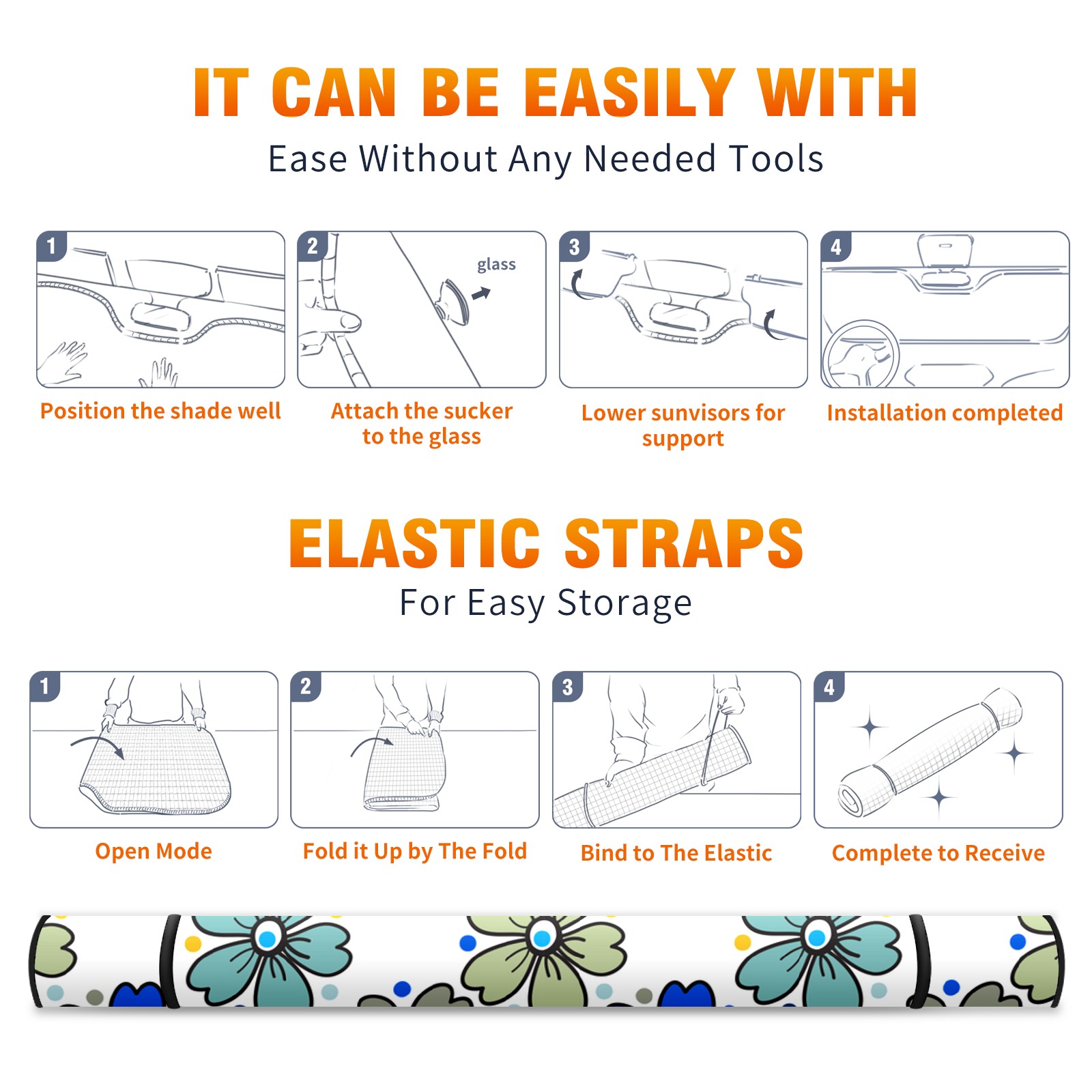 • Diameter /Size 63"L x 33.5"W Made from excellent materials which makes it sturdy and protects the car from the sun. Easy to use and pack. Makes the interior of the car cooler.You can easily stash the sunshade in the storage bag or store long term.It open and closes easy. Also the leather storage bag is durable and easy to put the umbrella back into.This windshield sunshade provides complete coverage and keeps your car interior cool under direct sun. It is easy to open and position under the windshield and around the rear-view mirror. Makes Your Car Easy To Identify, Perfect For Finding Your Car In Crowded Parking Lots And Garages.Great Choice: It Is A Great Gift For Dad, Boyfriend, Brother, Brother And Uncle, Friends, Classmates, Family And So On. Notice: Due To Difference Computer Monitors, The Color Maybe Slightly Different From Picture. As Different Measurement Methods, Measurement Data Will Float Within 2%.I Hope You Understand. If You Have Any Question About The Item Please Do Not Hesitate To Contact Us Immediately And We Will Give You A Satisfactory Reply Within 24 Hours.