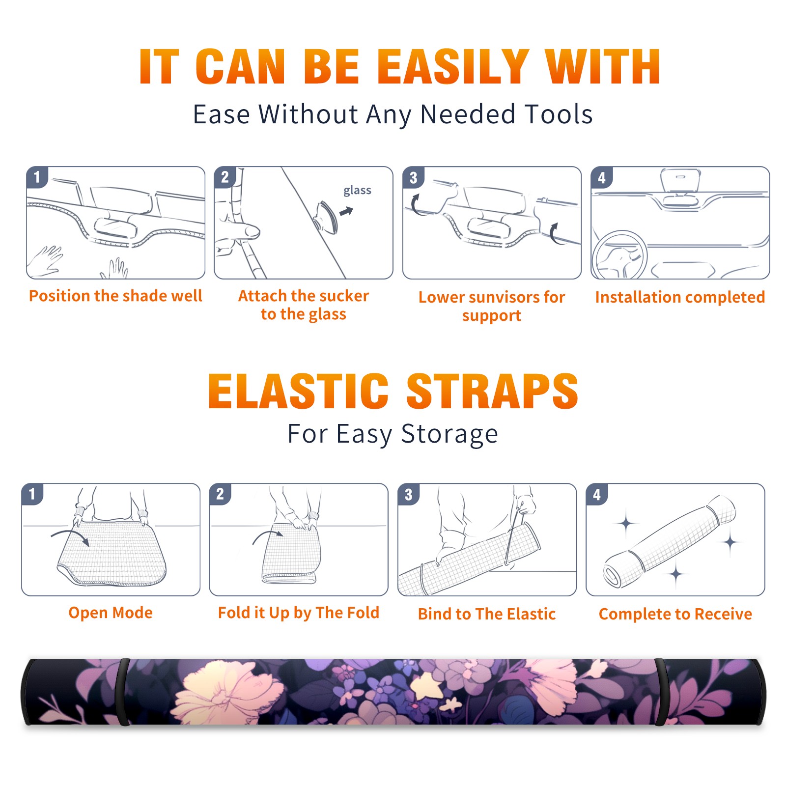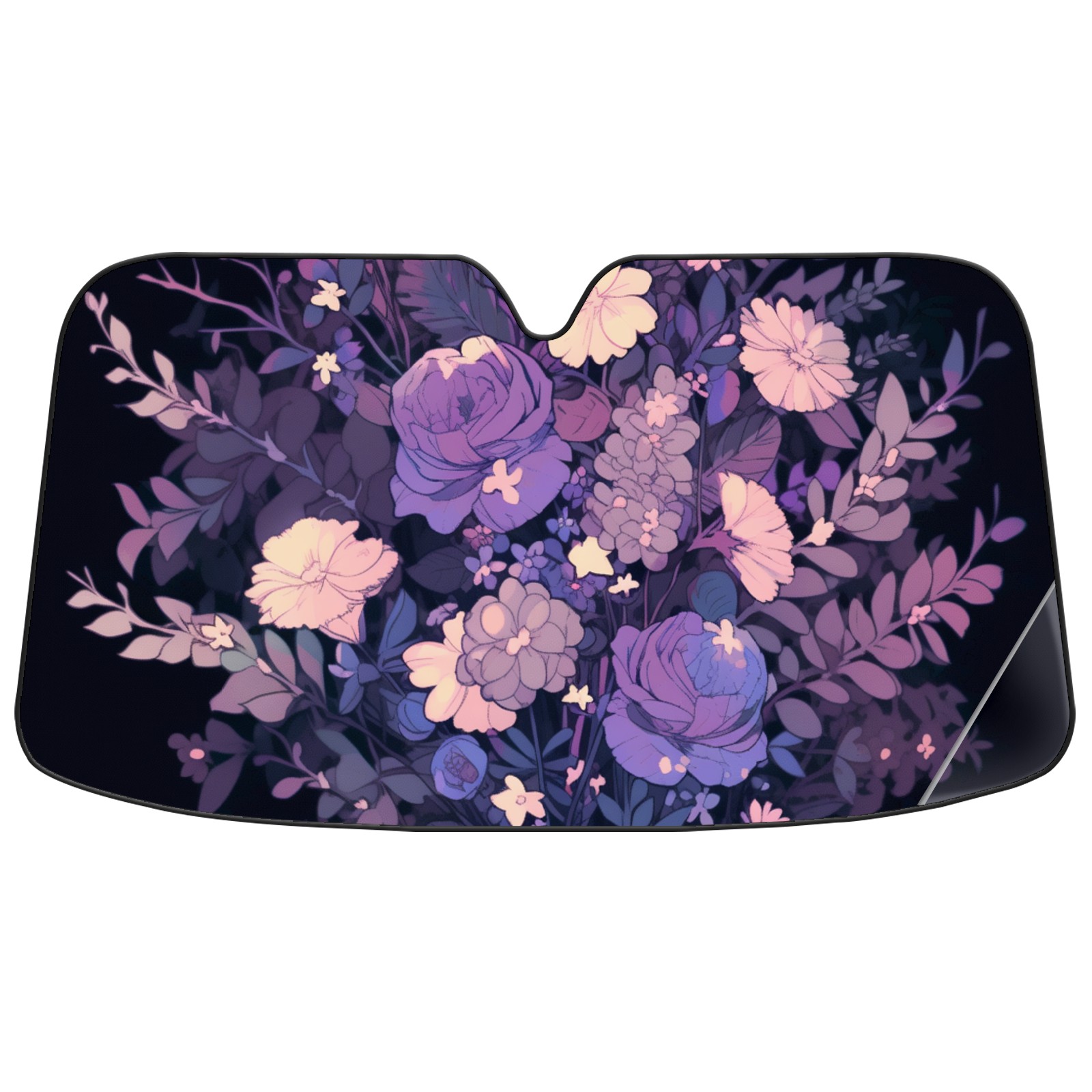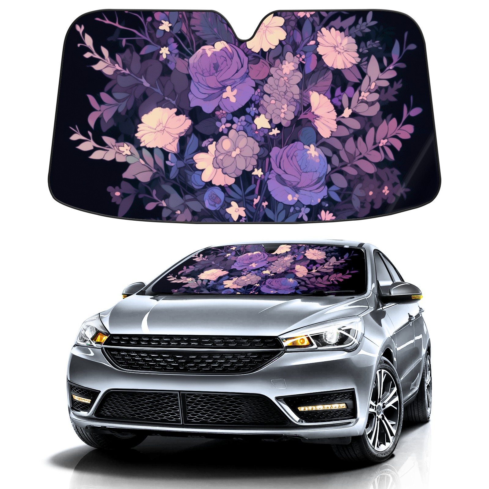 Car Windshield Sun Shade For Front Window Purple Flower 1 Foldable Vehicle Windshield Car Sun Visor Covers Automotive Window Protector Car Camping Privacy Sun Blocker