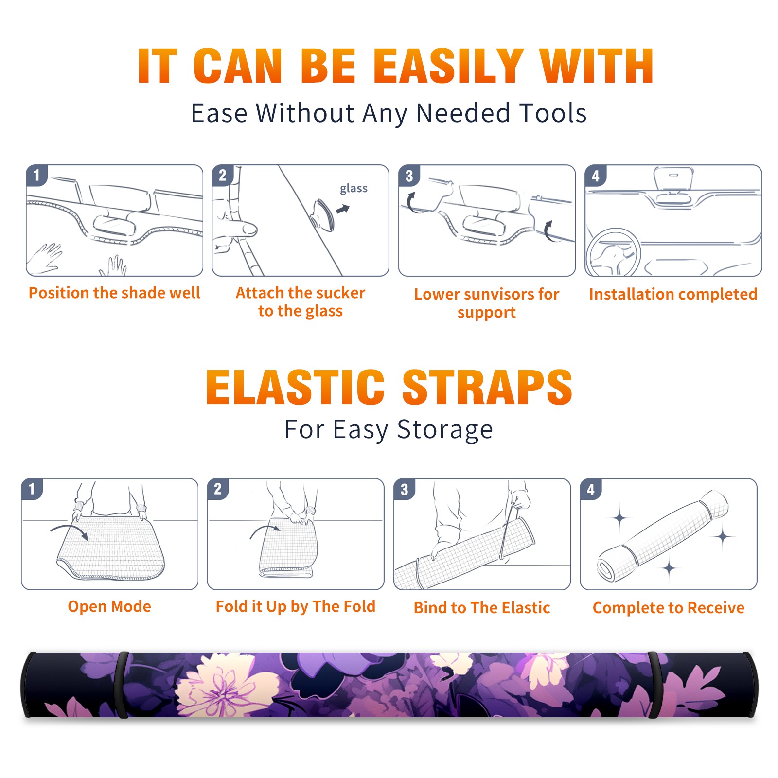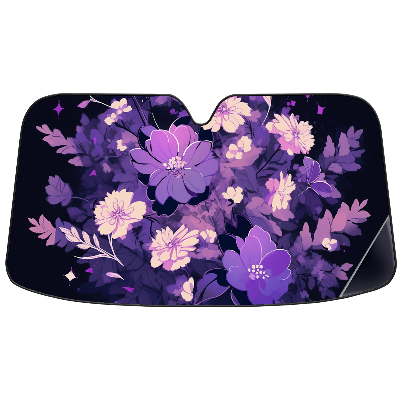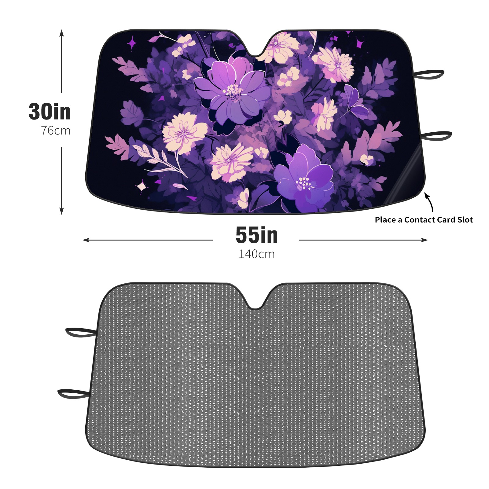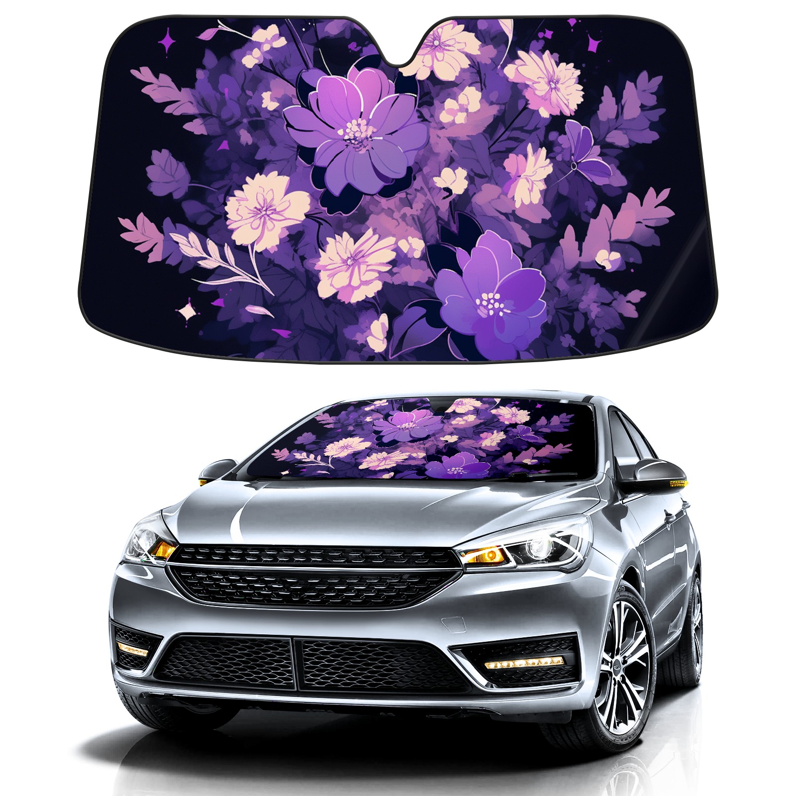 Car Windshield Sun Shade For Front Window Purple Flower 4 Foldable Vehicle Windshield Car Sun Visor Covers Automotive Window Protector Car Camping Privacy Sun Blocker