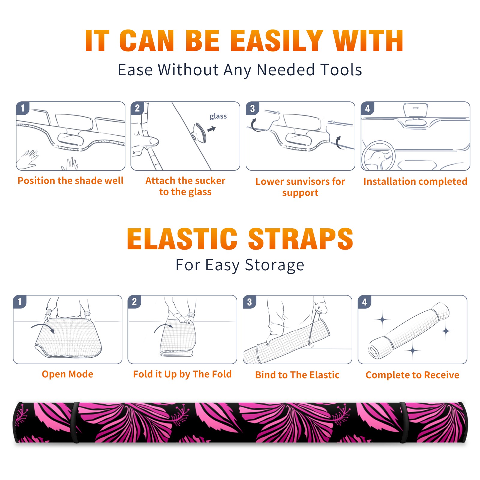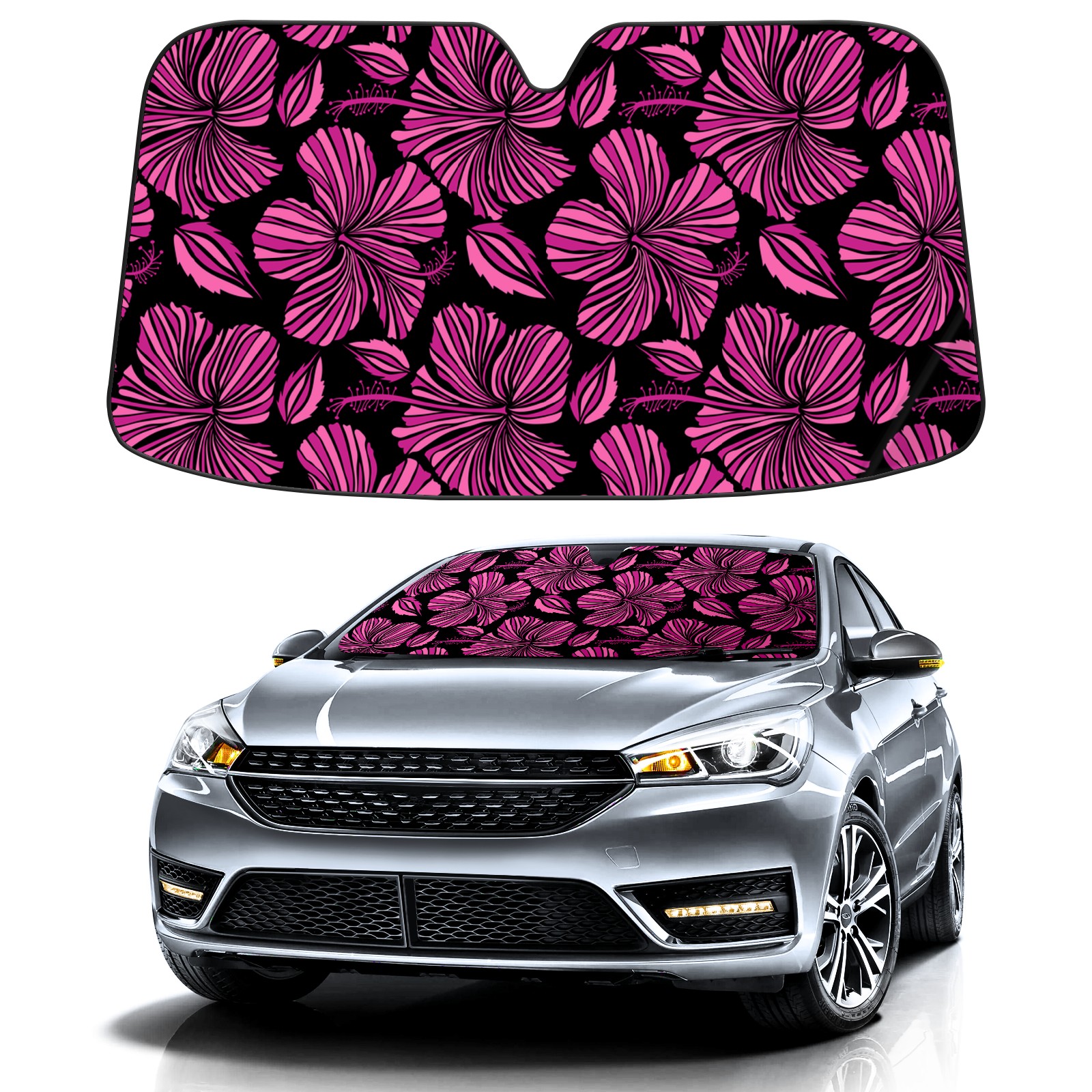 Car Windshield Sun Shade For Front Window Black Pink Linear Flowers Foldable Vehicle Windshield Car Sun Visor Covers Automotive Window Protector Car Camping Privacy Sun Blocker