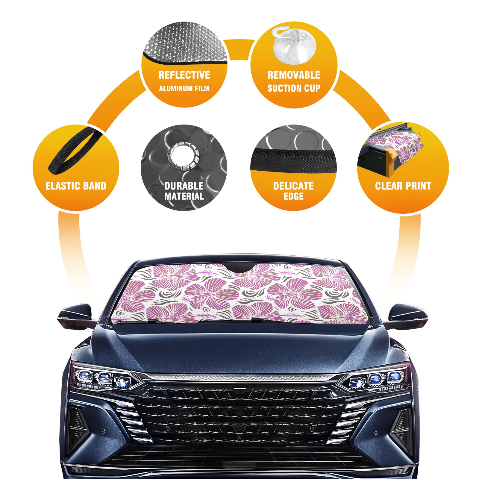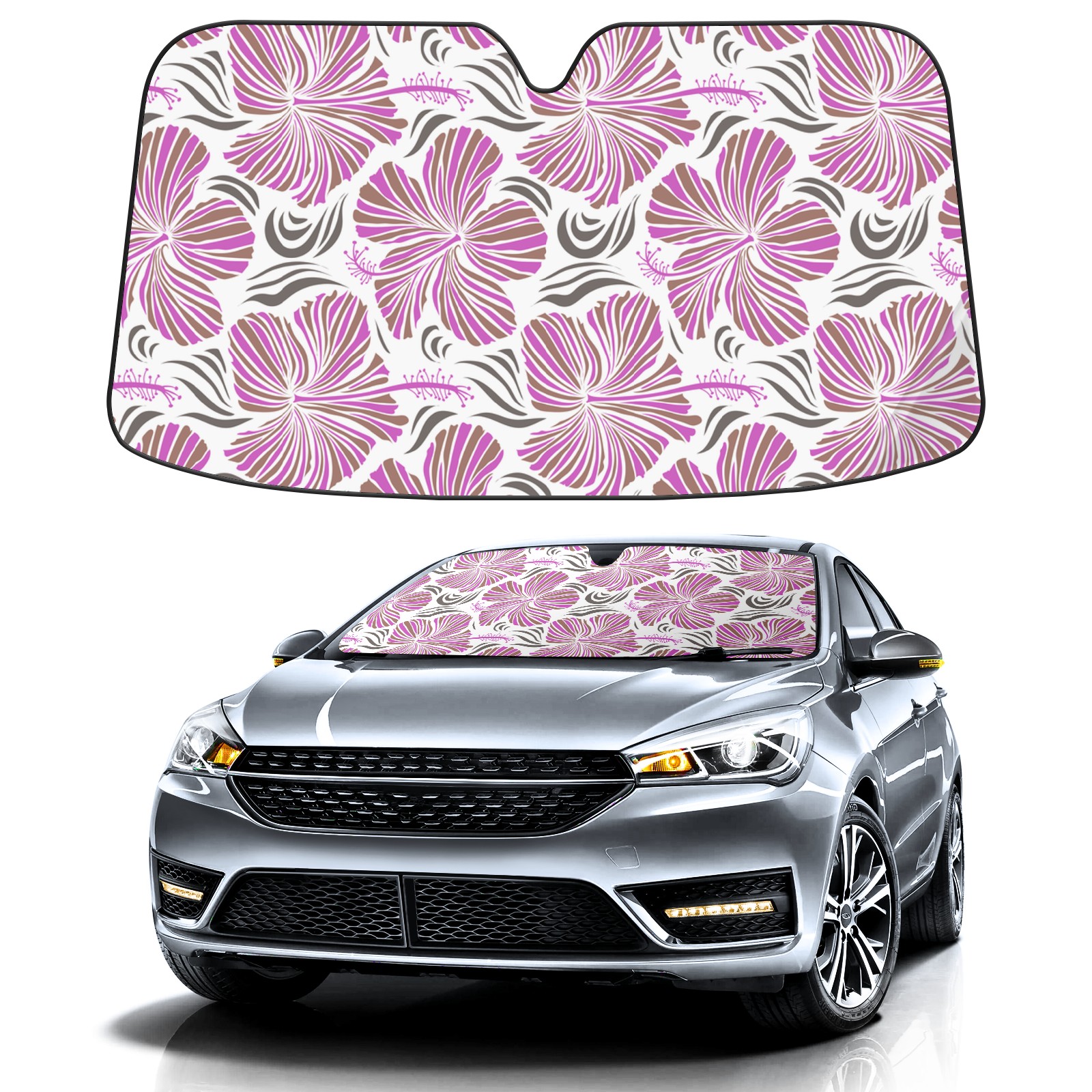 Car Windshield Sun Shade For Front Window Purple Linear Flowers Foldable Vehicle Windshield Car Sun Visor Covers Automotive Window Protector Car Camping Privacy Sun Blocker