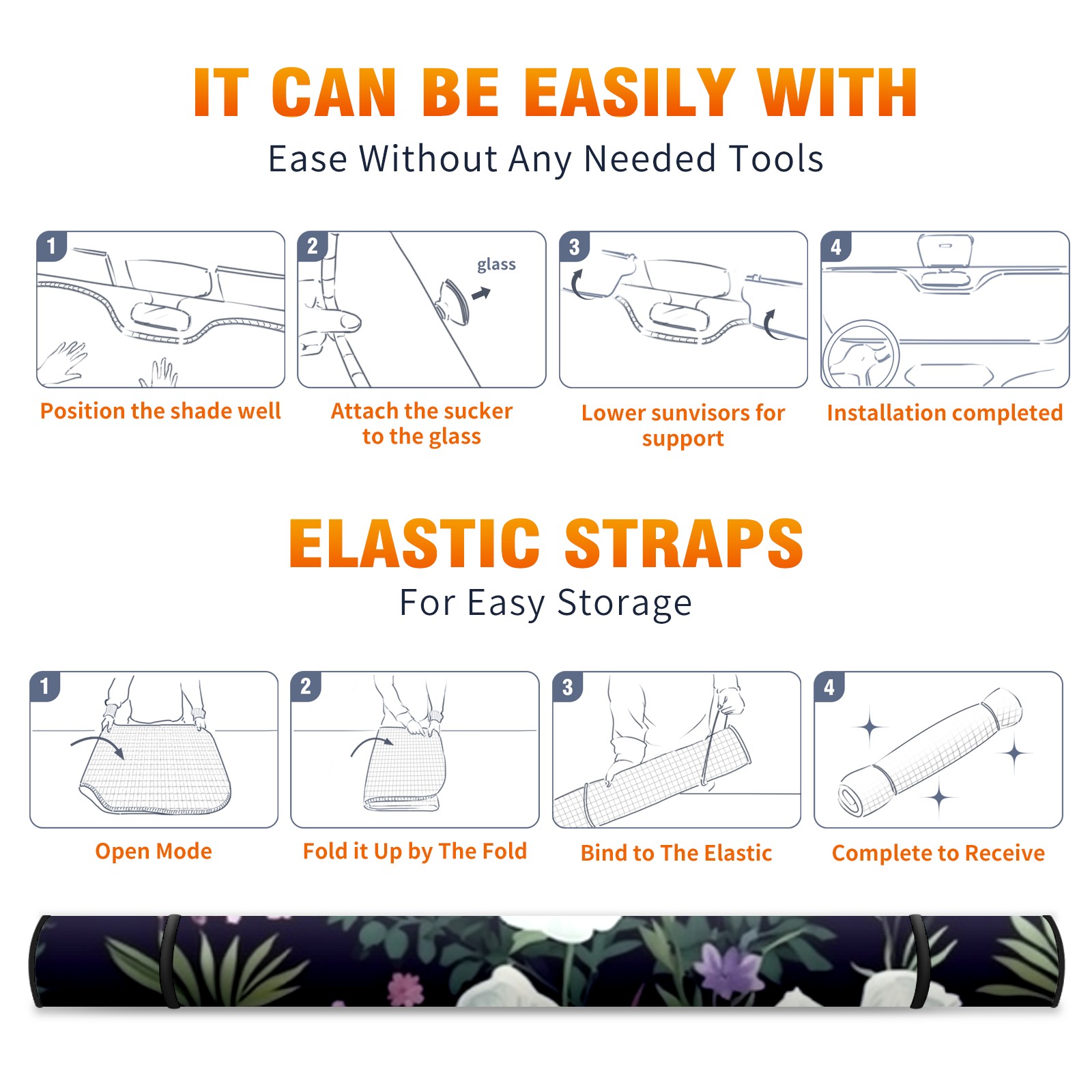 Diameter /Size 63"L x 33.5"W Made from excellent materials which makes it sturdy and protects the car from the sun. Easy to use and pack. Makes the interior of the car cooler.You can easily stash the sunshade in the storage bag or store long term.It open and closes easy. Also the leather storage bag is durable and easy to put the umbrella back into.This windshield sunshade provides complete coverage and keeps your car interior cool under direct sun. It is easy to open and position under the windshield and around the rear-view mirror. Makes Your Car Easy To Identify, Perfect For Finding Your Car In Crowded Parking Lots And Garages.Great Choice: It Is A Great Gift For Dad, Boyfriend, Brother, Brother And Uncle, Friends, Classmates, Family And So On. Notice: Due To Difference Computer Monitors, The Color Maybe Slightly Different From Picture. As Different Measurement Methods, Measurement Data Will Float Within 2%.I Hope You Understand. If You Have Any Question About The Item Please Do Not Hesitate To Contact Us Immediately And We Will Give You A Satisfactory Reply Within 24 Hours.