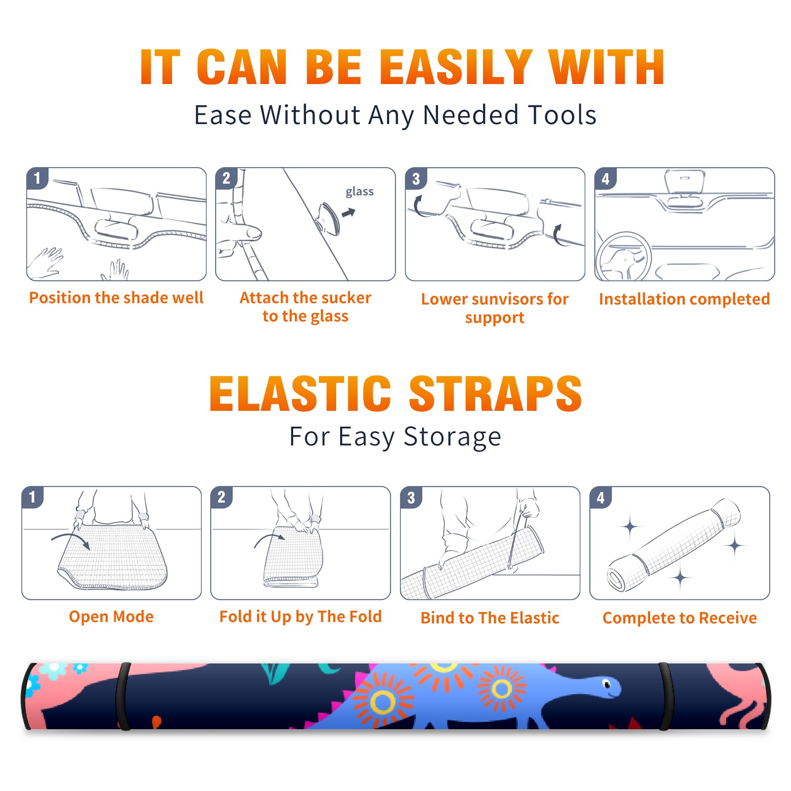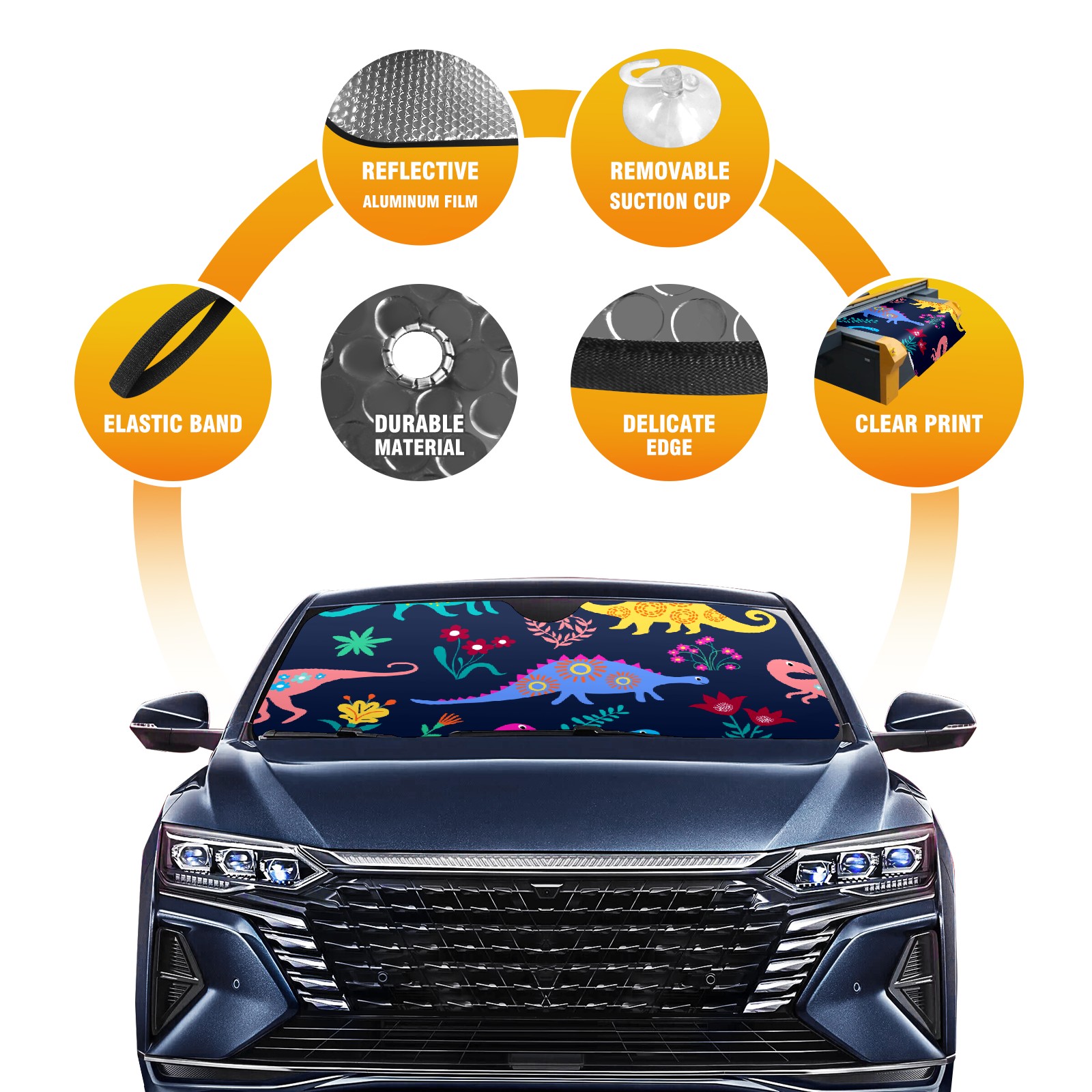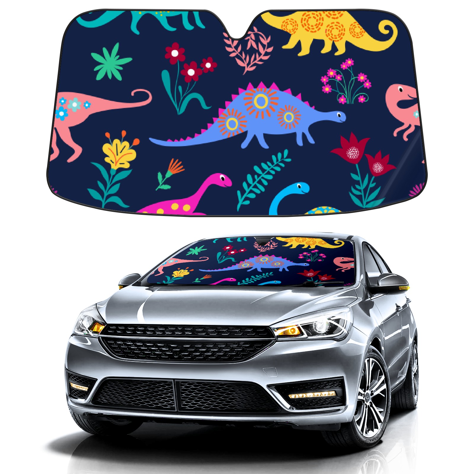 Car Windshield Sun Shade For Front Window Animal Dinosaur Floral Flower Foldable Vehicle Windshield Car Sun Visor Covers Automotive Window Protector Car Camping Privacy Sun Blocker