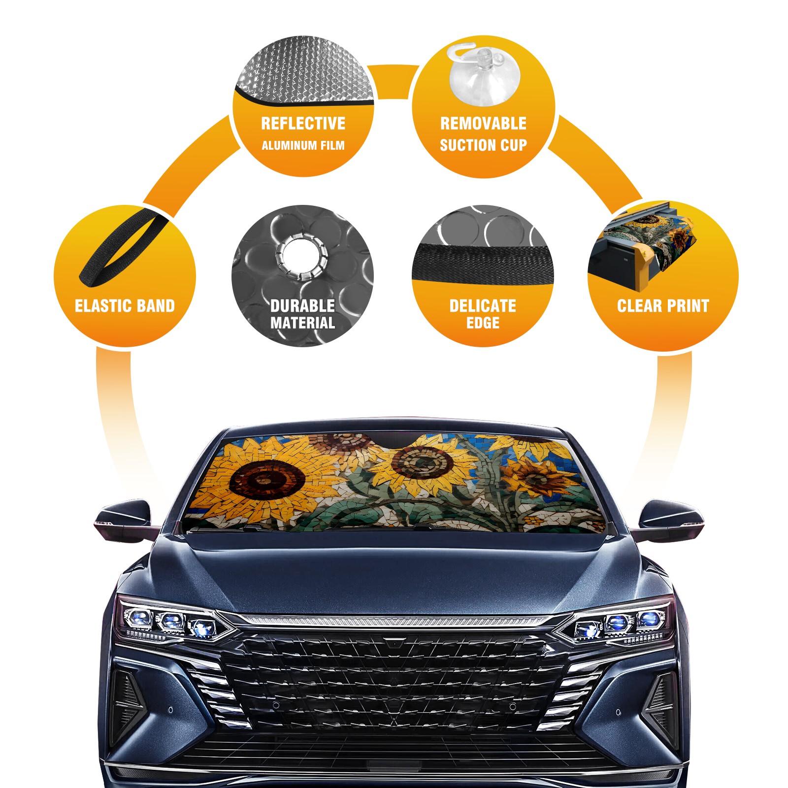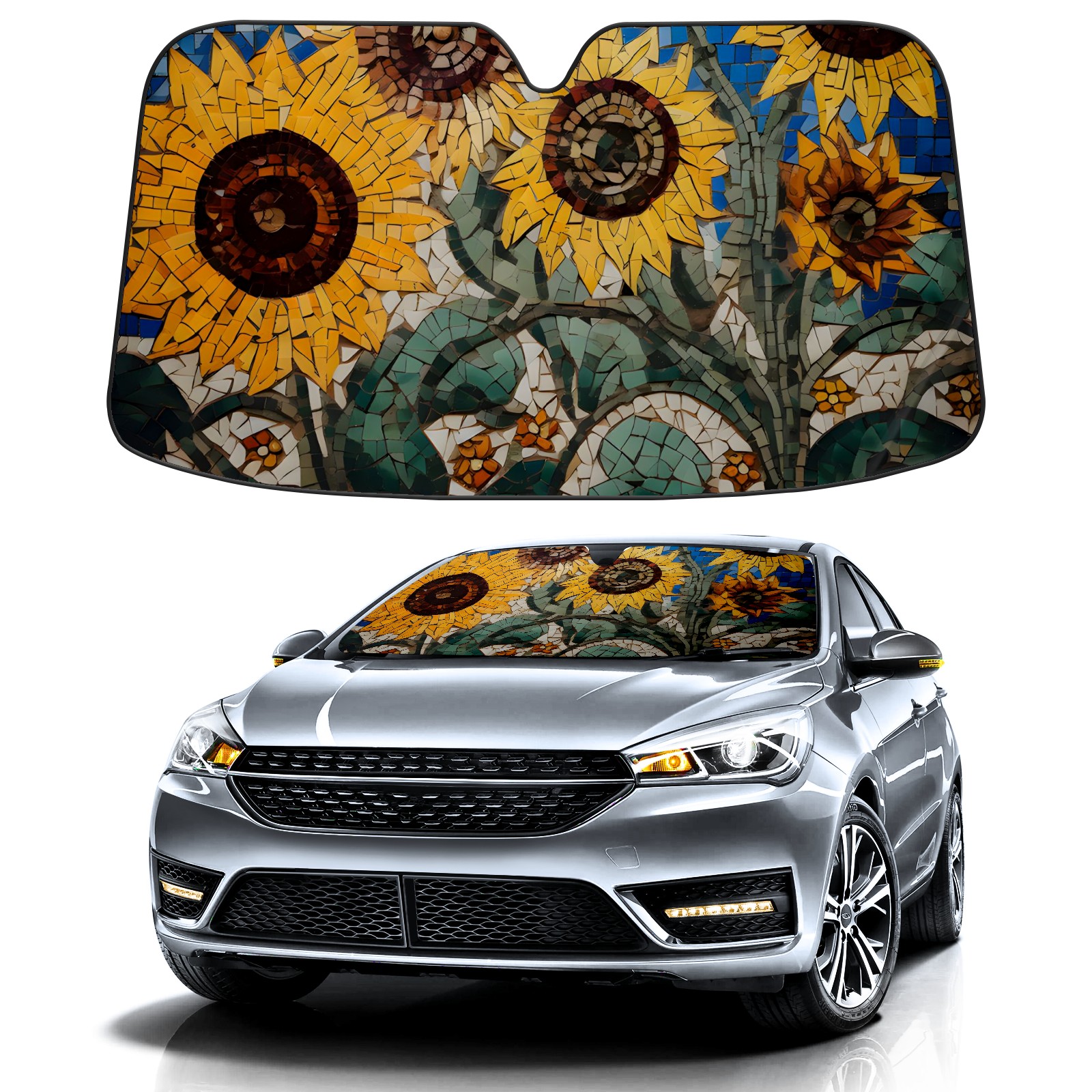 Car Windshield Sun Shade For Front Window Sunflower 3 Foldable Vehicle Windshield Car Sun Visor Covers Automotive Window Protector Car Camping Privacy Sun Blocker