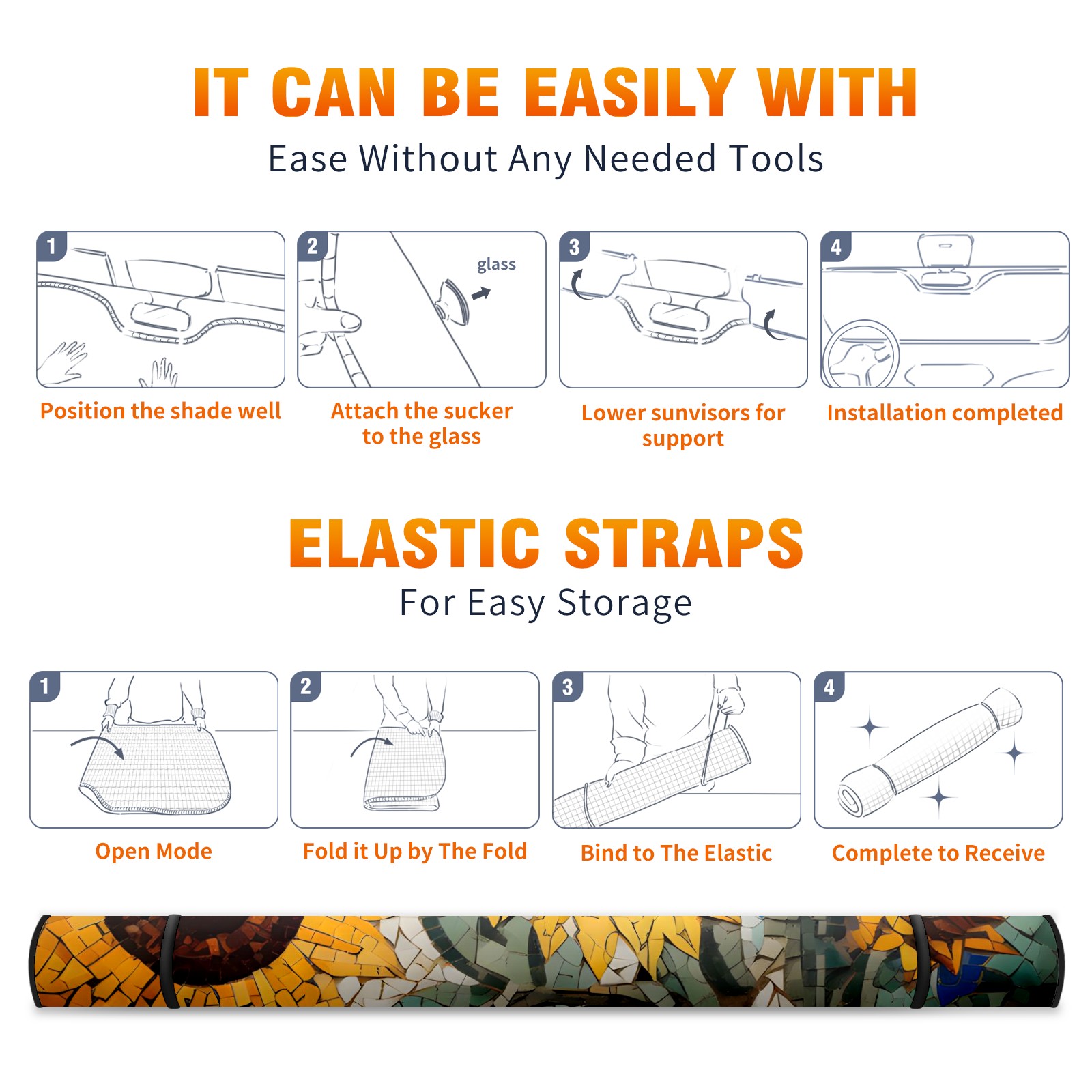 • Diameter /Size 63"L x 33.5"W Made from excellent materials which makes it sturdy and protects the car from the sun. Easy to use and pack. Makes the interior of the car cooler.You can easily stash the sunshade in the storage bag or store long term.It open and closes easy. Also the leather storage bag is durable and easy to put the umbrella back into.This windshield sunshade provides complete coverage and keeps your car interior cool under direct sun. It is easy to open and position under the windshield and around the rear-view mirror. Makes Your Car Easy To Identify, Perfect For Finding Your Car In Crowded Parking Lots And Garages.Great Choice: It Is A Great Gift For Dad, Boyfriend, Brother, Brother And Uncle, Friends, Classmates, Family And So On. Notice: Due To Difference Computer Monitors, The Color Maybe Slightly Different From Picture. As Different Measurement Methods, Measurement Data Will Float Within 2%.I Hope You Understand. If You Have Any Question About The Item Please Do Not Hesitate To Contact Us Immediately And We Will Give You A Satisfactory Reply Within 24 Hours.