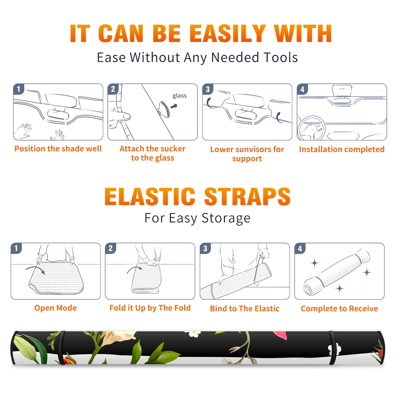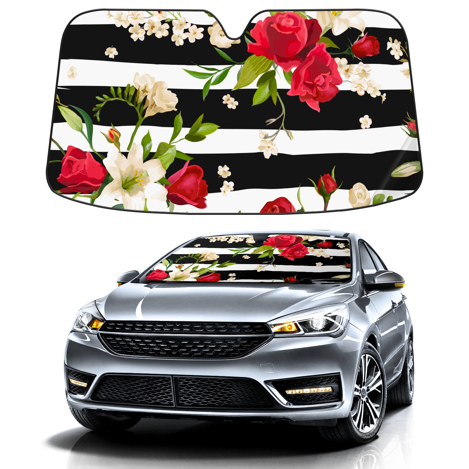 Car Windshield Sun Shade For Front Window stripe flower leaves Foldable Vehicle Windshield Car Sun Visor Covers Automotive Window Protector Car Camping Privacy Sun Blocker