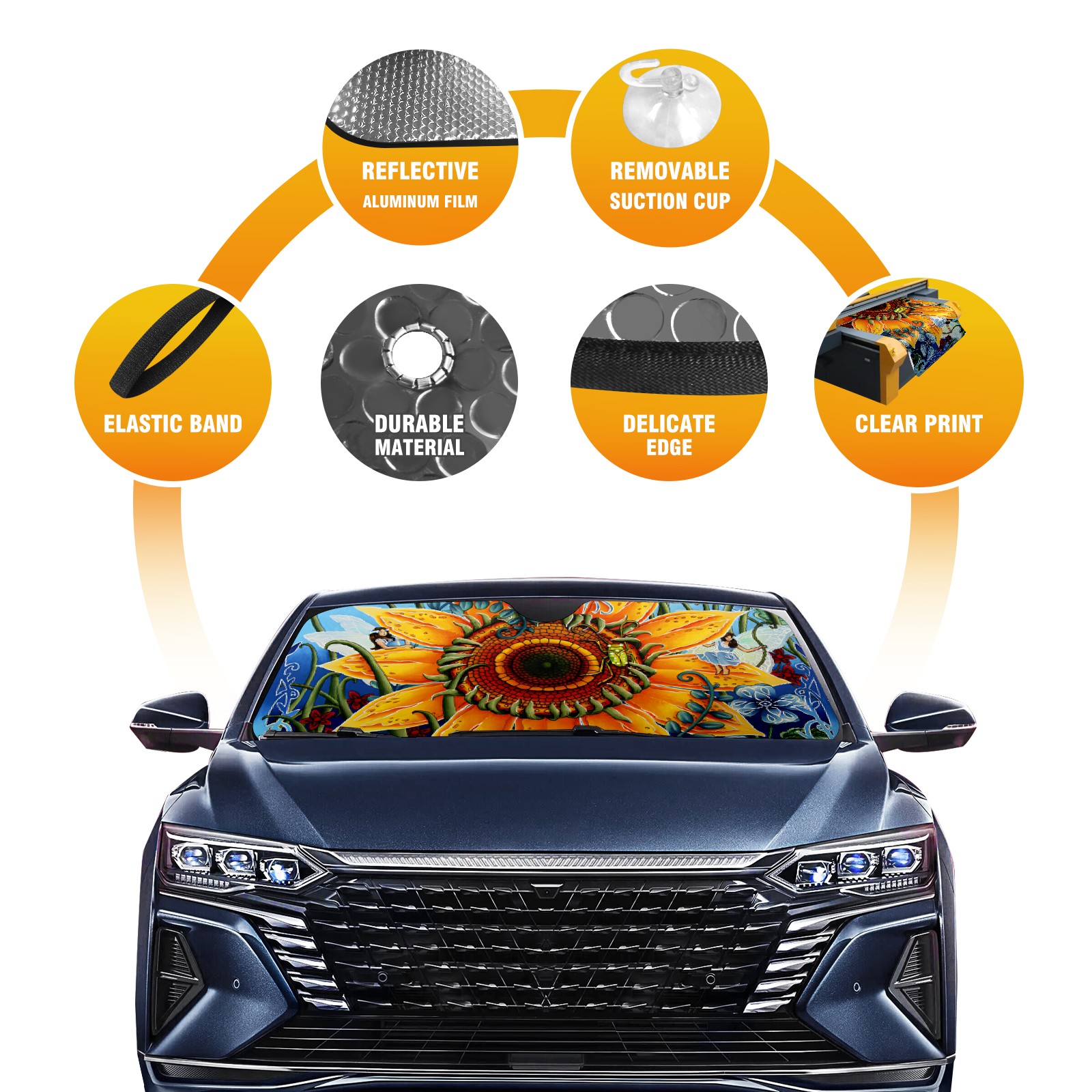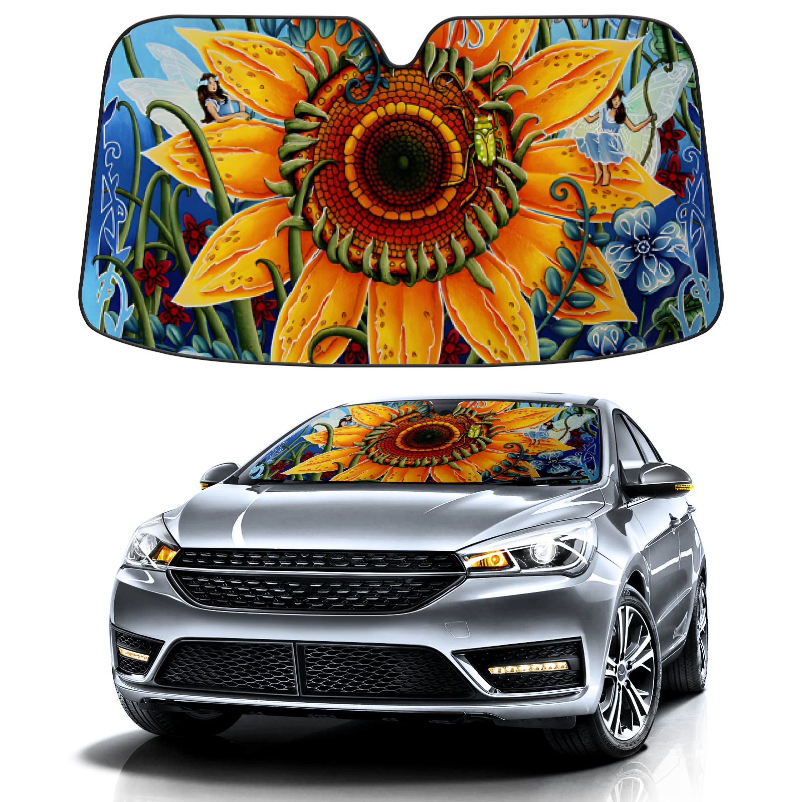Car Windshield Sun Shade For Front Window Sunflower Foldable Vehicle Windshield Car Sun Visor Covers Automotive Window Protector Car Camping Privacy Sun Blocker