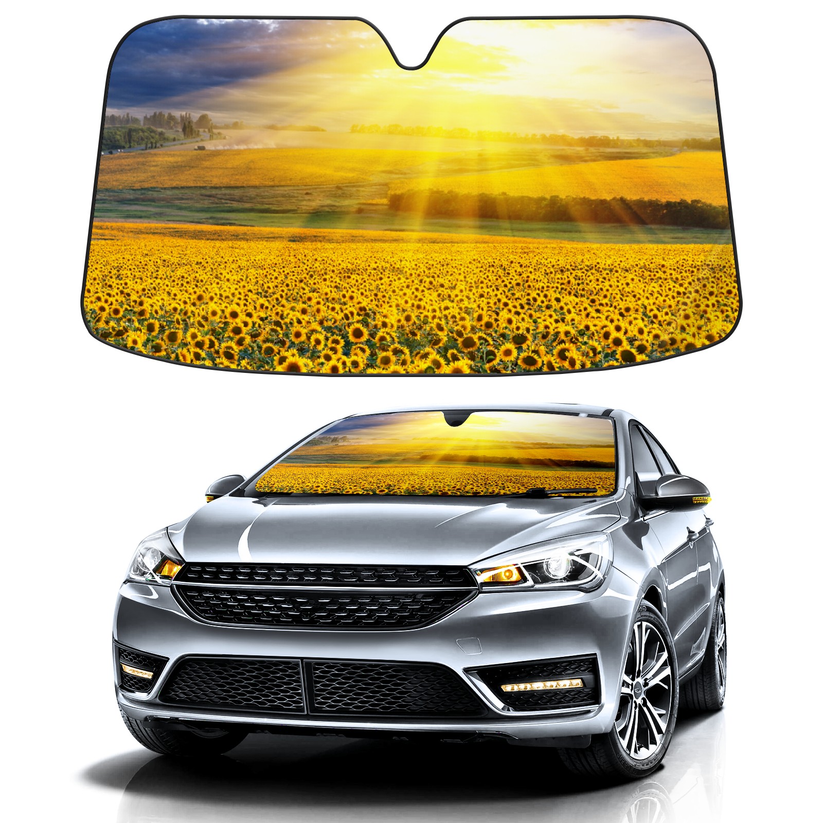 Car Windshield Sun Shade For Front Window Countryside Sunflower Field Sunshine Foldable Vehicle Windshield Car Sun Visor Covers Automotive Window Protector Car Camping Privacy Sun Blocker