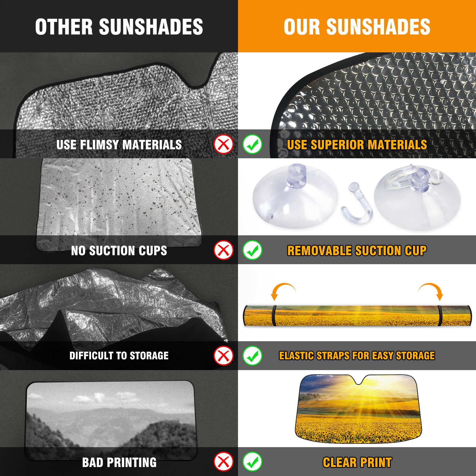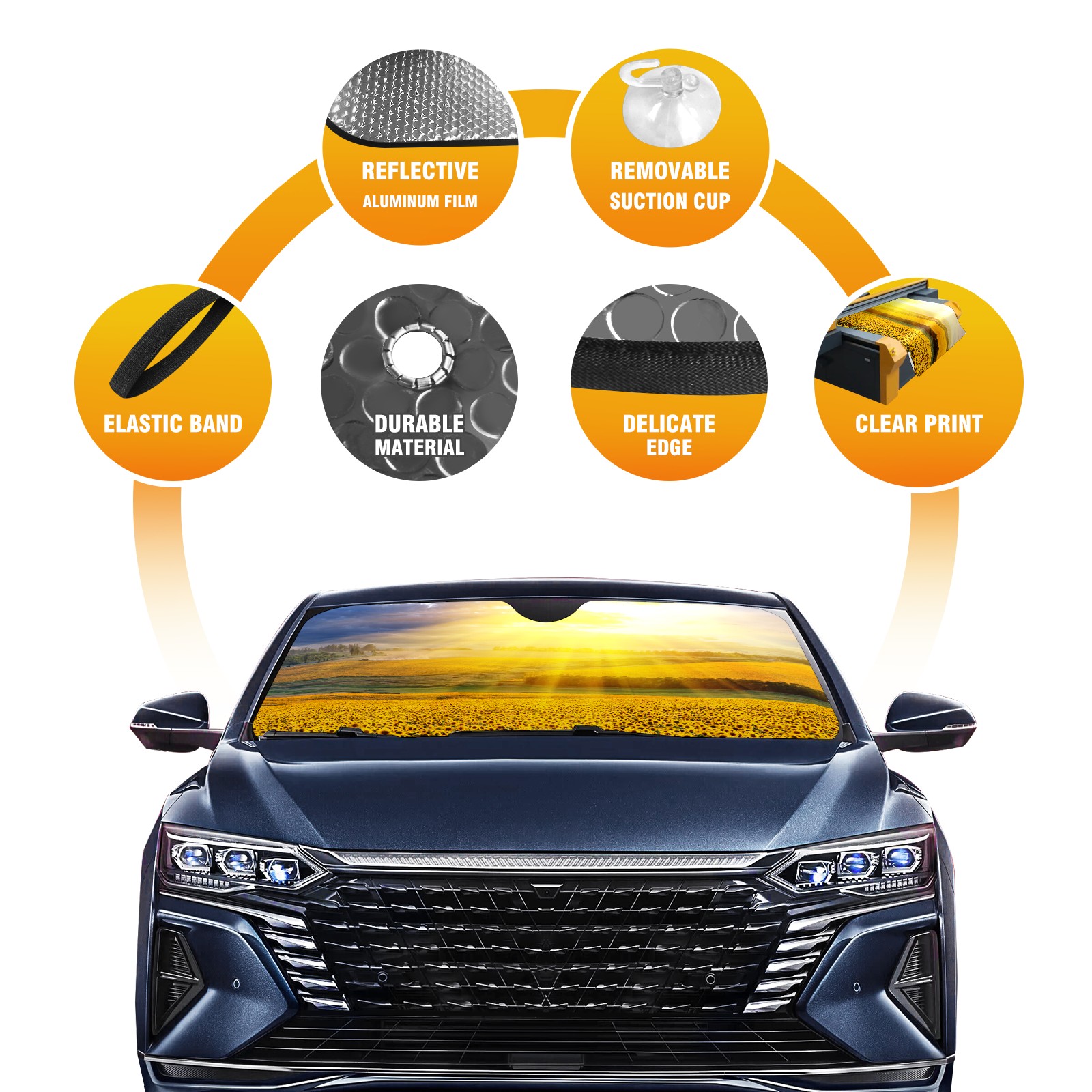 • Diameter /Size 63"L x 33.5"W Made from excellent materials which makes it sturdy and protects the car from the sun. Easy to use and pack. Makes the interior of the car cooler.You can easily stash the sunshade in the storage bag or store long term.It open and closes easy. Also the leather storage bag is durable and easy to put the umbrella back into.This windshield sunshade provides complete coverage and keeps your car interior cool under direct sun. It is easy to open and position under the windshield and around the rear-view mirror. Makes Your Car Easy To Identify, Perfect For Finding Your Car In Crowded Parking Lots And Garages.Great Choice: It Is A Great Gift For Dad, Boyfriend, Brother, Brother And Uncle, Friends, Classmates, Family And So On. Notice: Due To Difference Computer Monitors, The Color Maybe Slightly Different From Picture. As Different Measurement Methods, Measurement Data Will Float Within 2%.I Hope You Understand. If You Have Any Question About The Item Please Do Not Hesitate To Contact Us Immediately And We Will Give You A Satisfactory Reply Within 24 Hours.