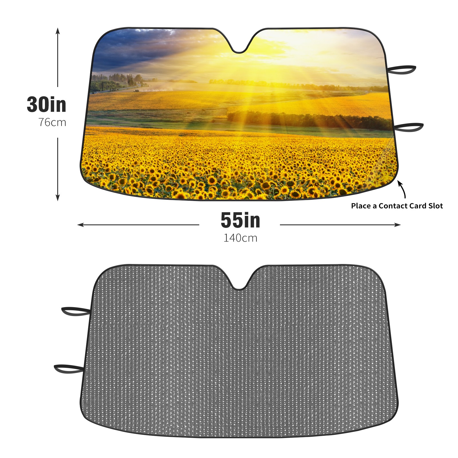 Diameter /Size 63"L x 33.5"W Made from excellent materials which makes it sturdy and protects the car from the sun. Easy to use and pack. Makes the interior of the car cooler.You can easily stash the sunshade in the storage bag or store long term.It open and closes easy. Also the leather storage bag is durable and easy to put the umbrella back into.This windshield sunshade provides complete coverage and keeps your car interior cool under direct sun. It is easy to open and position under the windshield and around the rear-view mirror. Makes Your Car Easy To Identify, Perfect For Finding Your Car In Crowded Parking Lots And Garages.Great Choice: It Is A Great Gift For Dad, Boyfriend, Brother, Brother And Uncle, Friends, Classmates, Family And So On. Notice: Due To Difference Computer Monitors, The Color Maybe Slightly Different From Picture. As Different Measurement Methods, Measurement Data Will Float Within 2%.I Hope You Understand. If You Have Any Question About The Item Please Do Not Hesitate To Contact Us Immediately And We Will Give You A Satisfactory Reply Within 24 Hours.