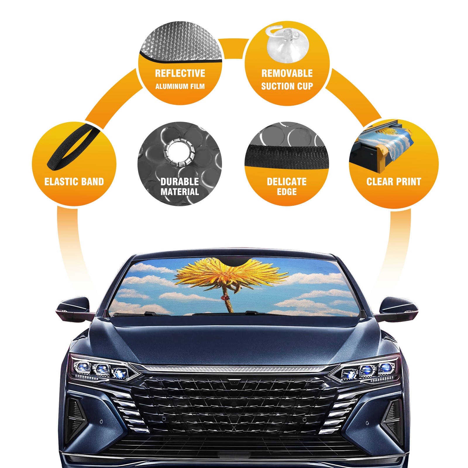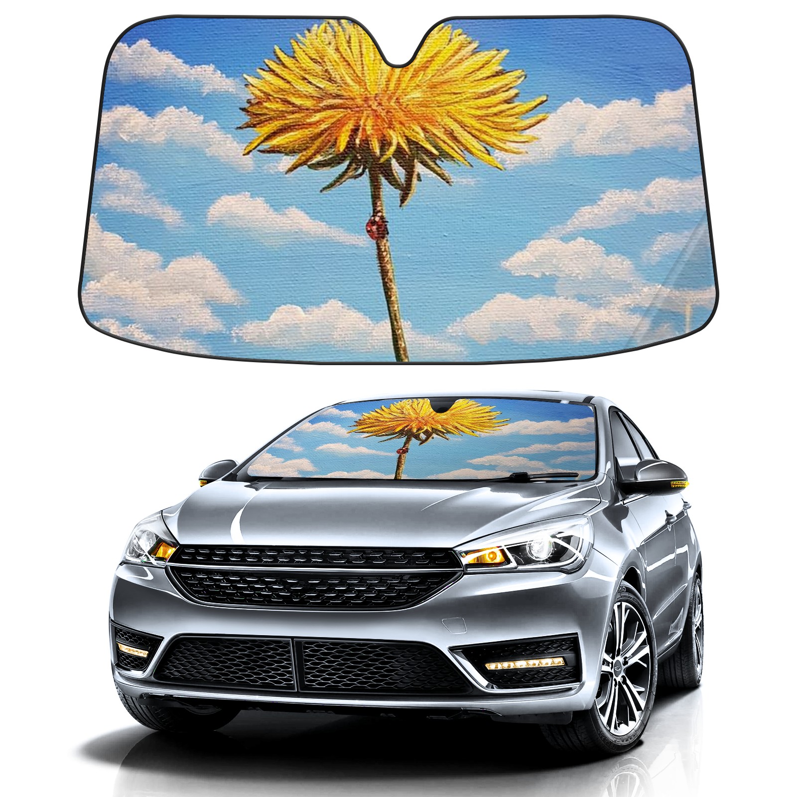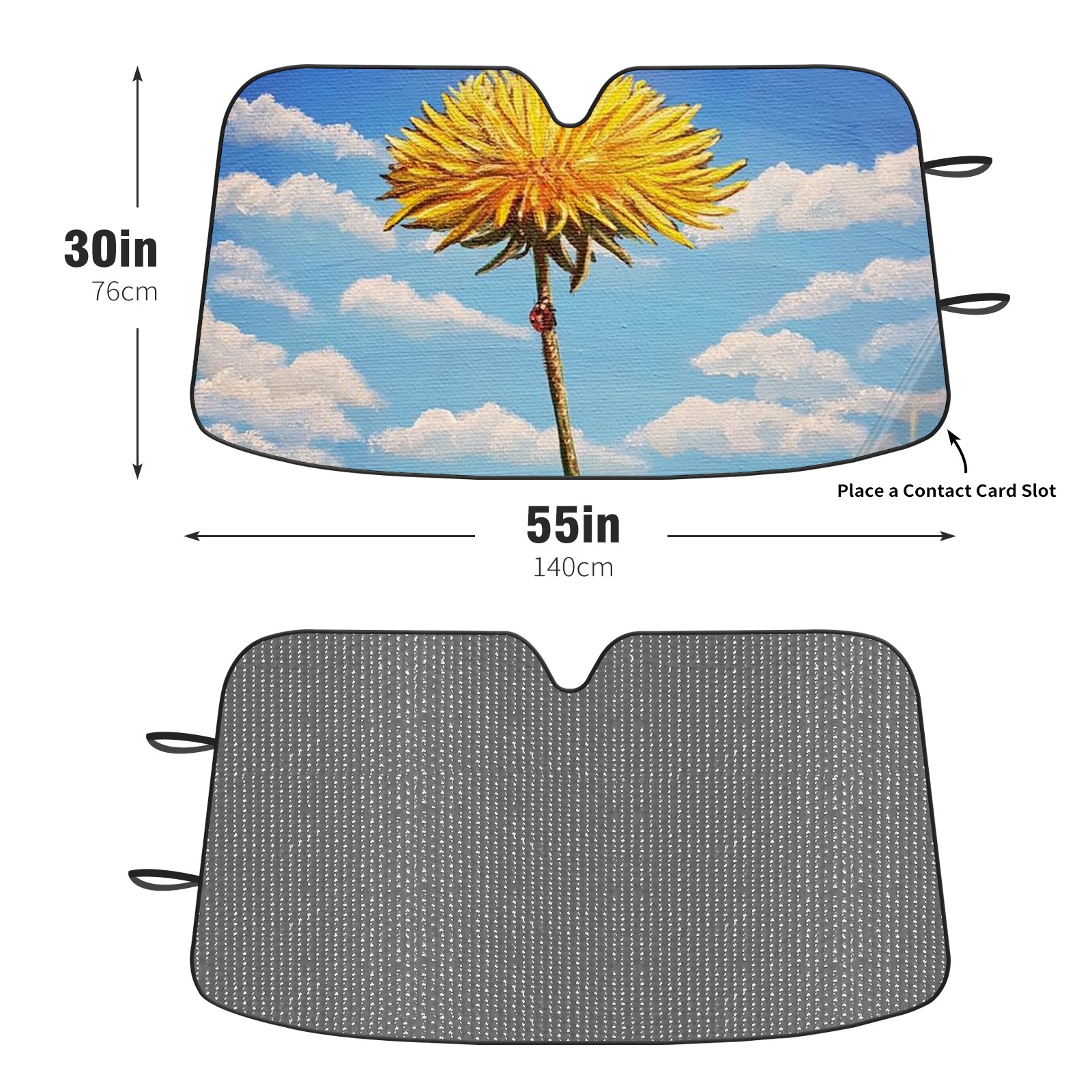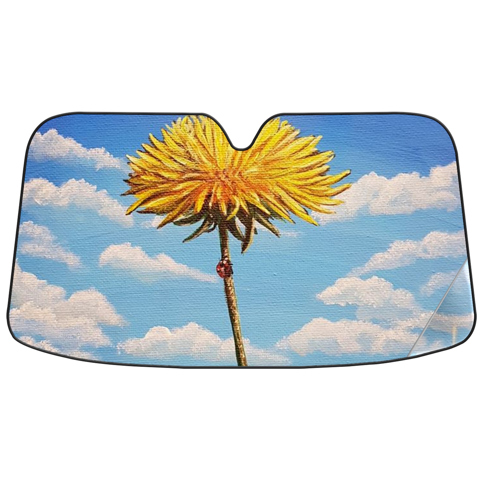 Car Windshield Sun Shade For Front Window White Clouds Sunflower Foldable Vehicle Windshield Car Sun Visor Covers Automotive Window Protector Car Camping Privacy Sun Blocker