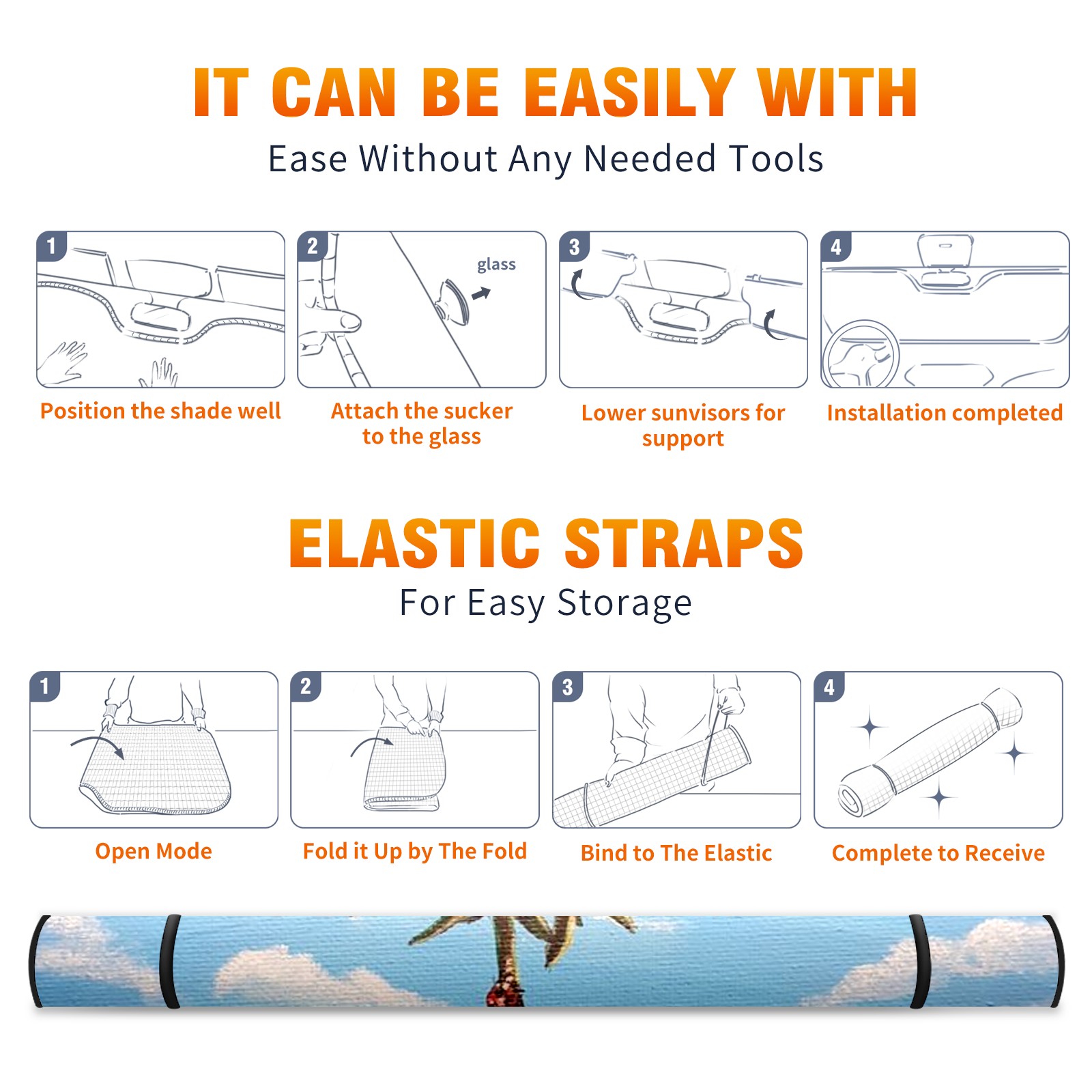• Diameter /Size 63"L x 33.5"W Made from excellent materials which makes it sturdy and protects the car from the sun. Easy to use and pack. Makes the interior of the car cooler.You can easily stash the sunshade in the storage bag or store long term.It open and closes easy. Also the leather storage bag is durable and easy to put the umbrella back into.This windshield sunshade provides complete coverage and keeps your car interior cool under direct sun. It is easy to open and position under the windshield and around the rear-view mirror. Makes Your Car Easy To Identify, Perfect For Finding Your Car In Crowded Parking Lots And Garages.Great Choice: It Is A Great Gift For Dad, Boyfriend, Brother, Brother And Uncle, Friends, Classmates, Family And So On. Notice: Due To Difference Computer Monitors, The Color Maybe Slightly Different From Picture. As Different Measurement Methods, Measurement Data Will Float Within 2%.I Hope You Understand. If You Have Any Question About The Item Please Do Not Hesitate To Contact Us Immediately And We Will Give You A Satisfactory Reply Within 24 Hours.