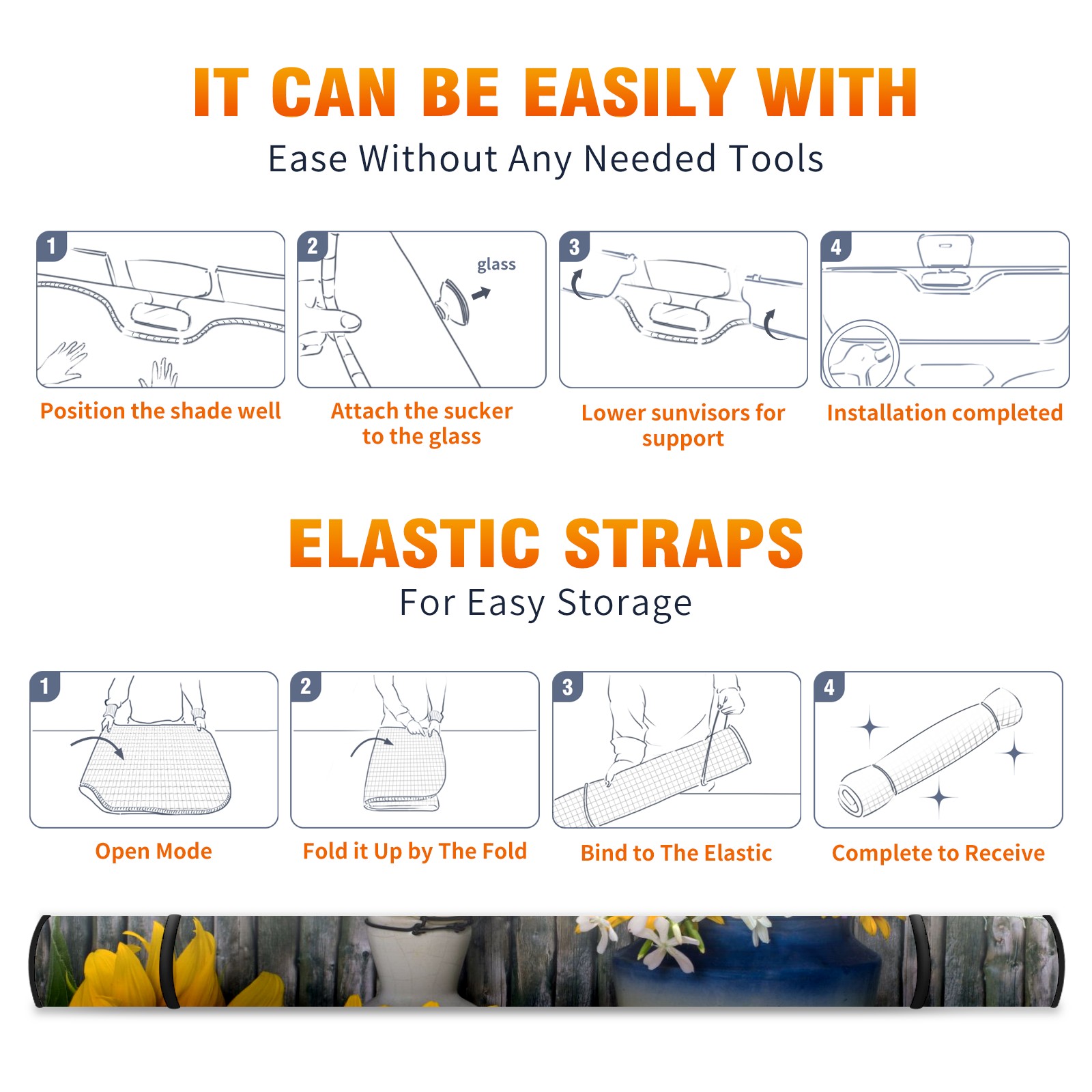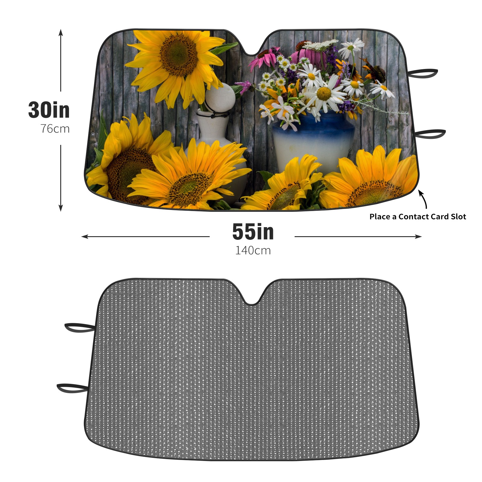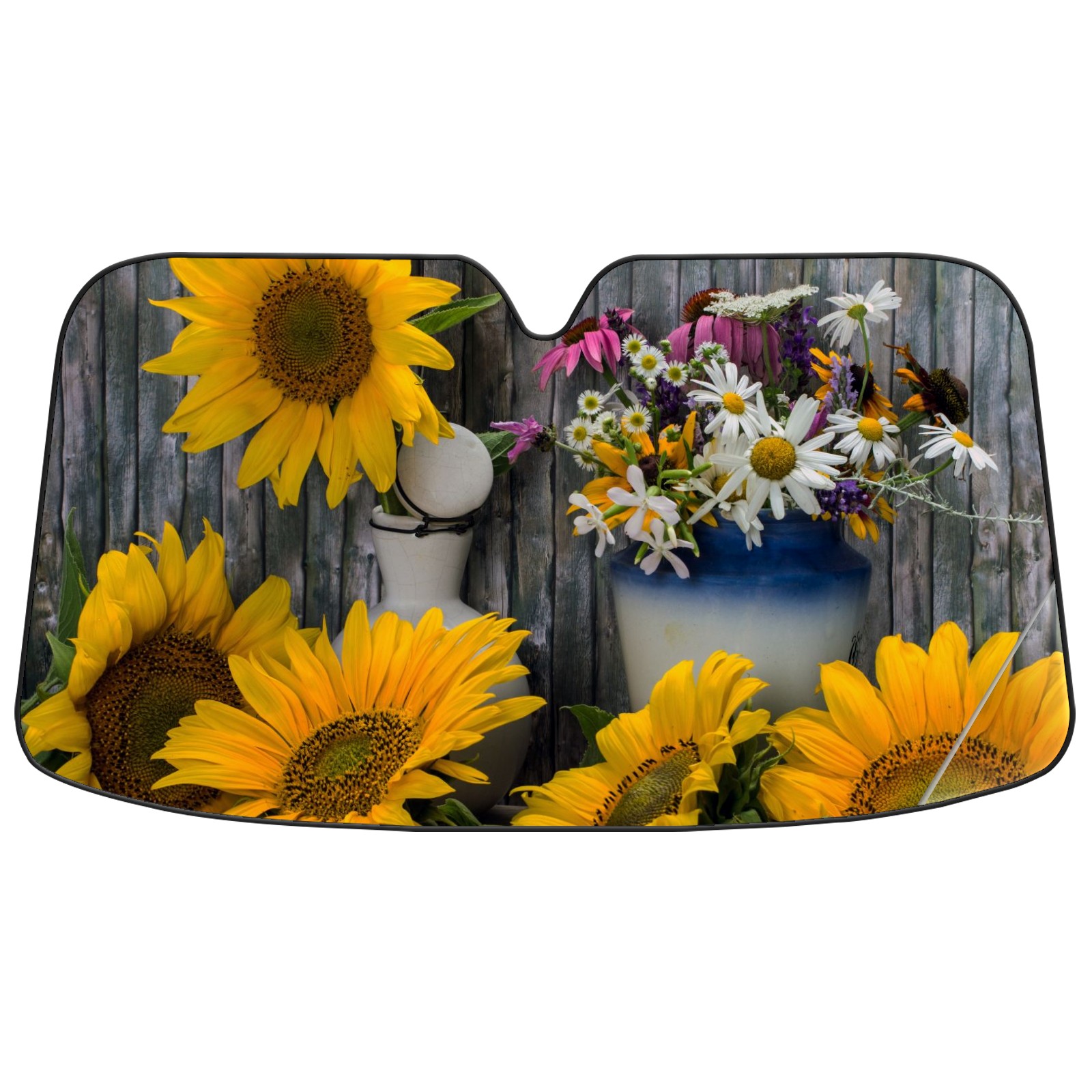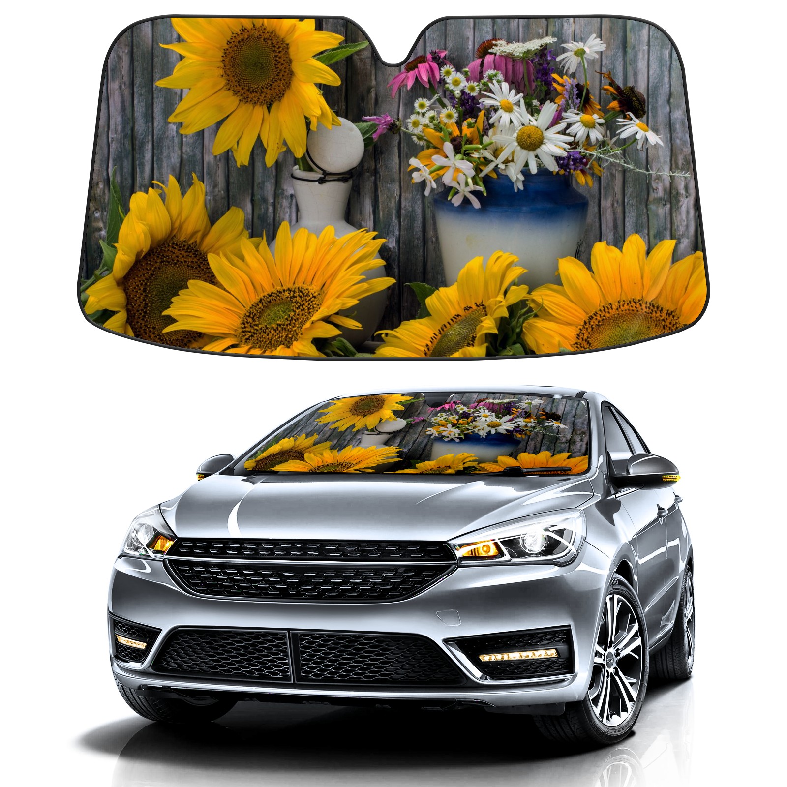 Car Windshield Sun Shade For Front Window Wild Yellow Sunflower Daisy Grey Wood Board Foldable Vehicle Windshield Car Sun Visor Covers Automotive Window Protector Car Camping Privacy Sun Blocker