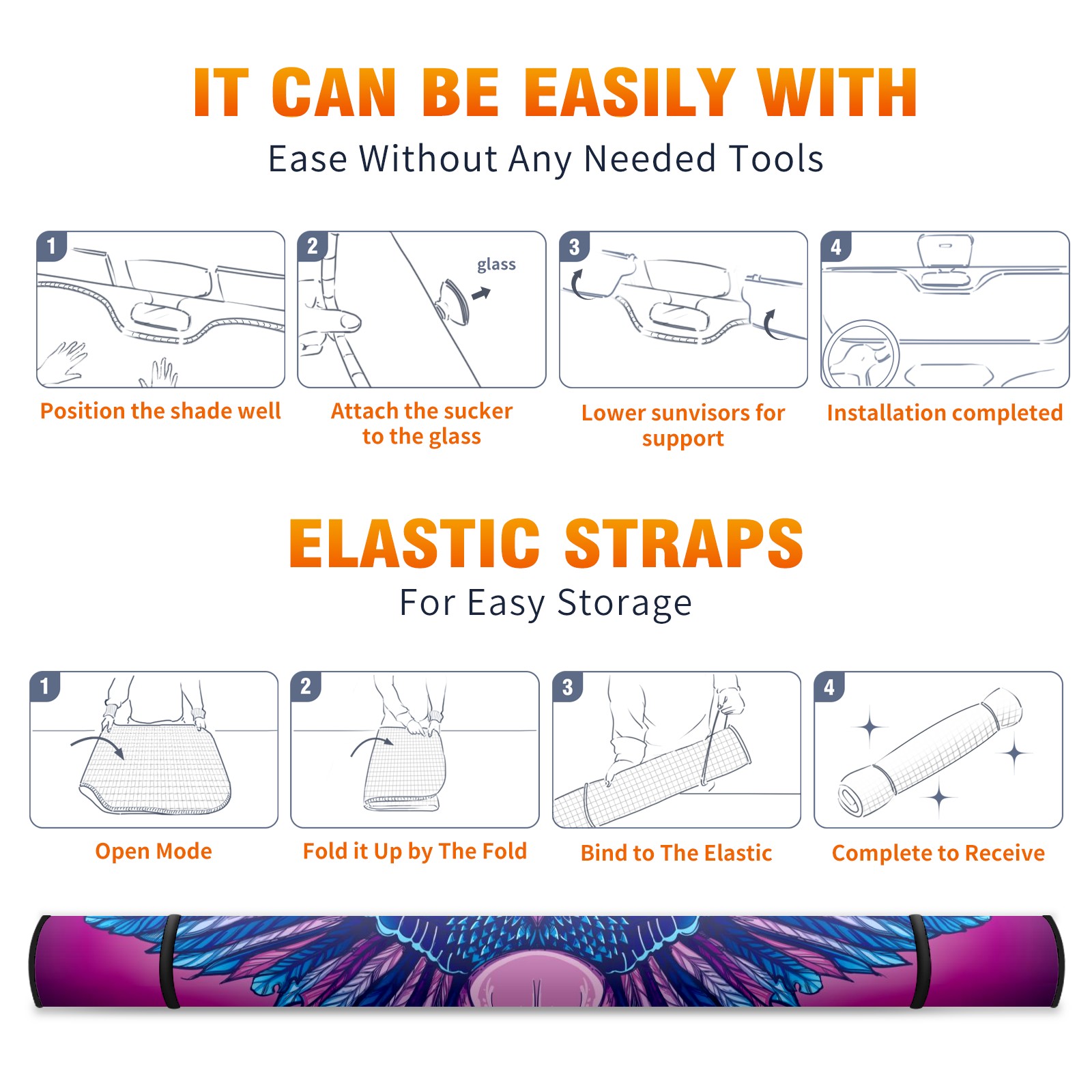 Diameter /Size 63"L x 33.5"W Made from excellent materials which makes it sturdy and protects the car from the sun. Easy to use and pack. Makes the interior of the car cooler.You can easily stash the sunshade in the storage bag or store long term.It open and closes easy. Also the leather storage bag is durable and easy to put the umbrella back into.This windshield sunshade provides complete coverage and keeps your car interior cool under direct sun. It is easy to open and position under the windshield and around the rear-view mirror. Makes Your Car Easy To Identify, Perfect For Finding Your Car In Crowded Parking Lots And Garages.Great Choice: It Is A Great Gift For Dad, Boyfriend, Brother, Brother And Uncle, Friends, Classmates, Family And So On. Notice: Due To Difference Computer Monitors, The Color Maybe Slightly Different From Picture. As Different Measurement Methods, Measurement Data Will Float Within 2%.I Hope You Understand. If You Have Any Question About The Item Please Do Not Hesitate To Contact Us Immediately And We Will Give You A Satisfactory Reply Within 24 Hours.