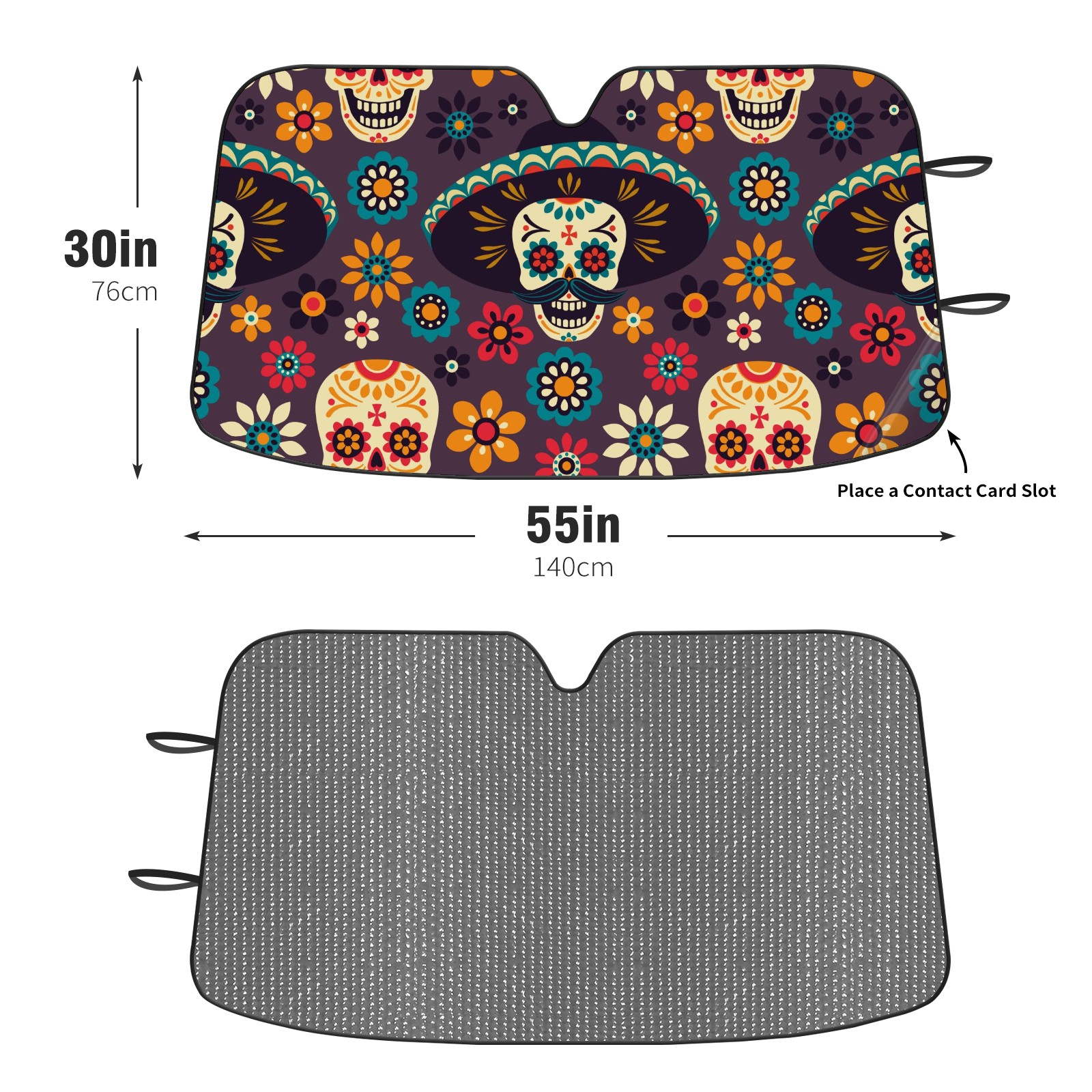 Car Windshield Sun Shade For Front Window Flower Sugar Skull Foldable Vehicle Windshield Car Sun Visor Covers Automotive Window Protector Car Camping Privacy Sun Blocker