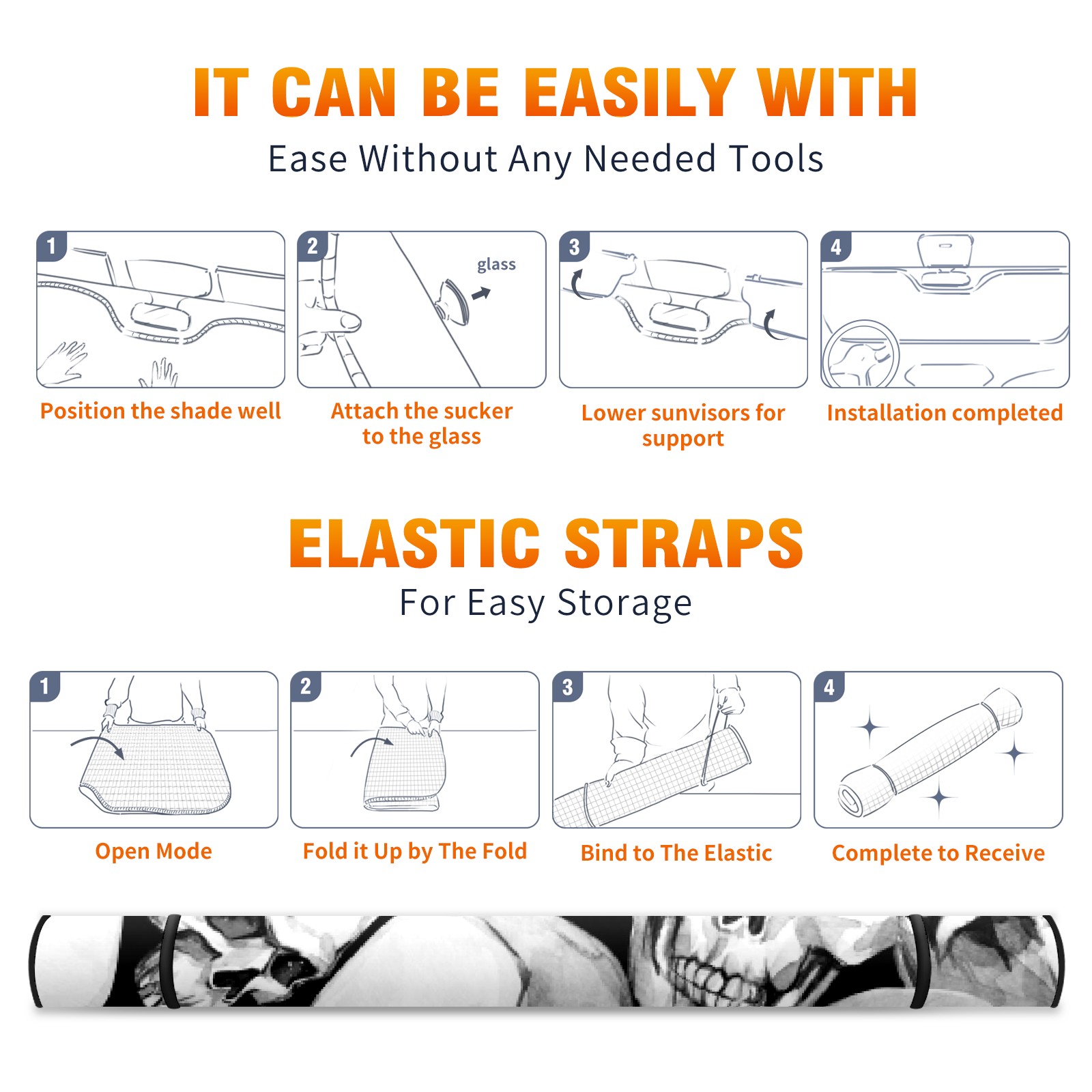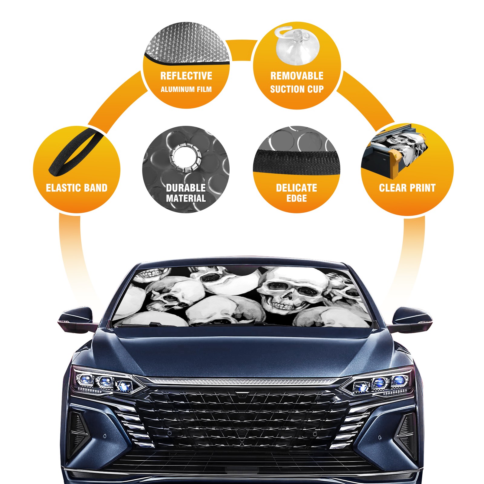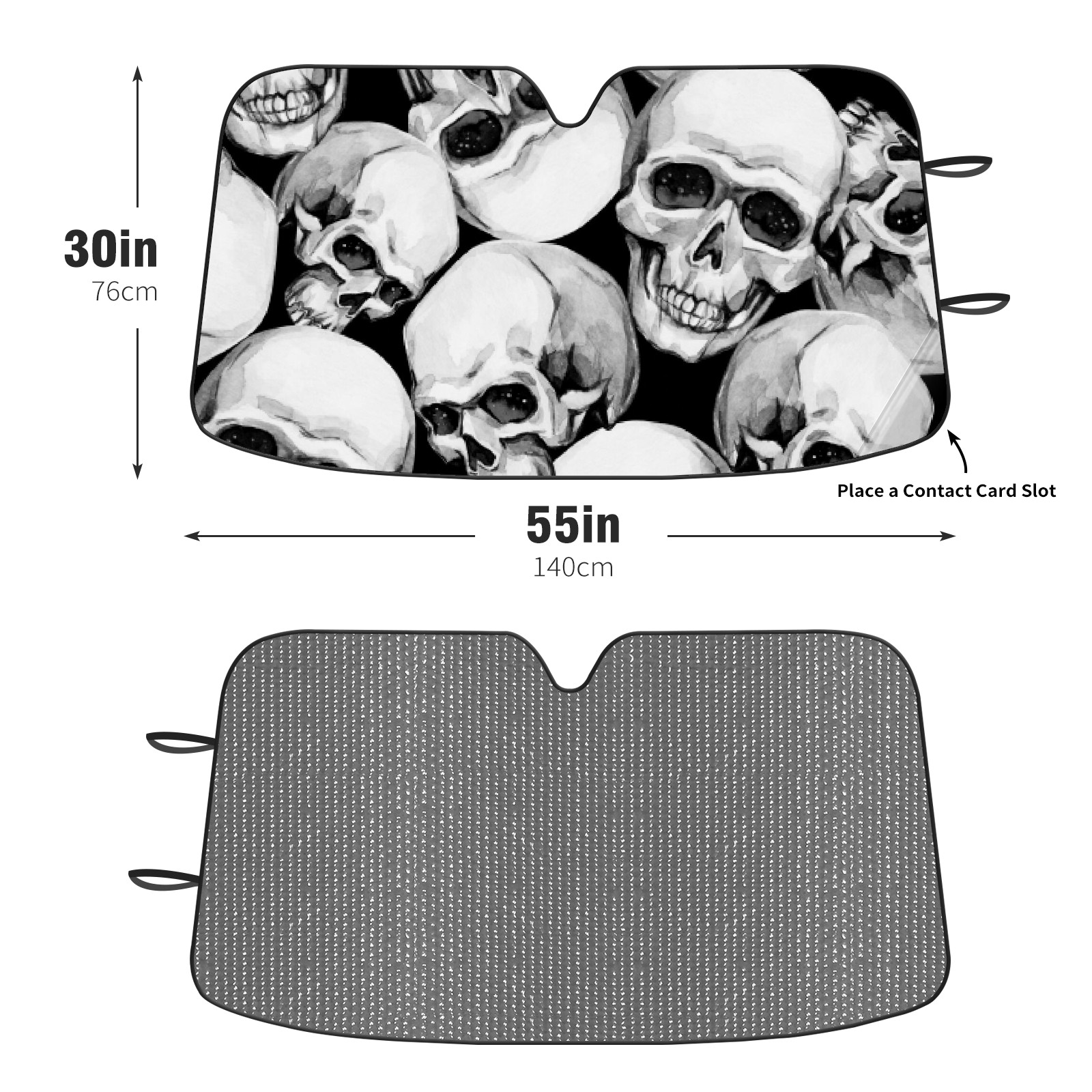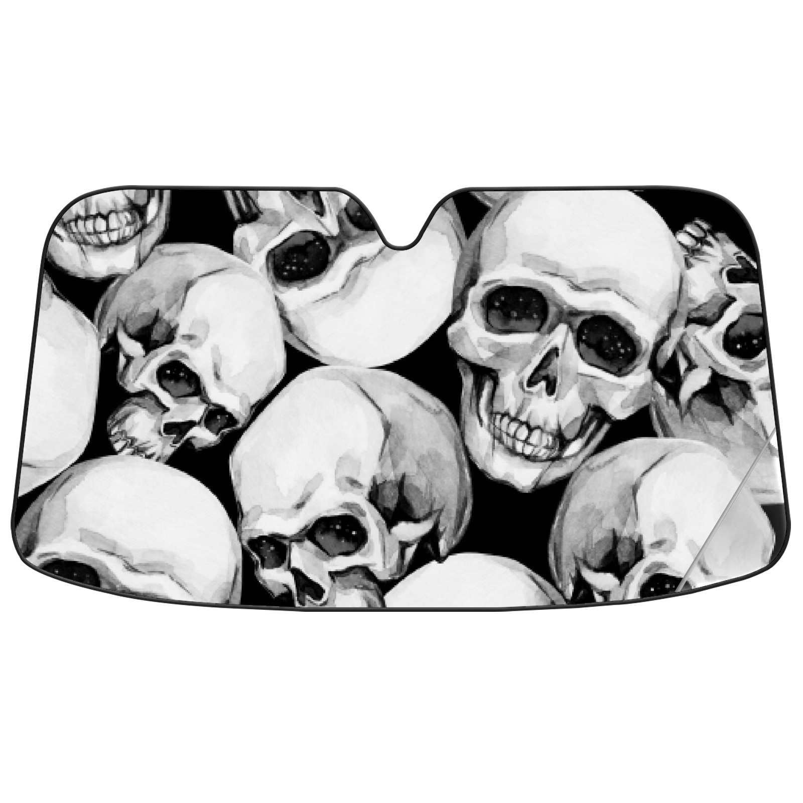 Car Windshield Sun Shade For Front Window Black And White Skull Foldable Vehicle Windshield Car Sun Visor Covers Automotive Window Protector Car Camping Privacy Sun Blocker