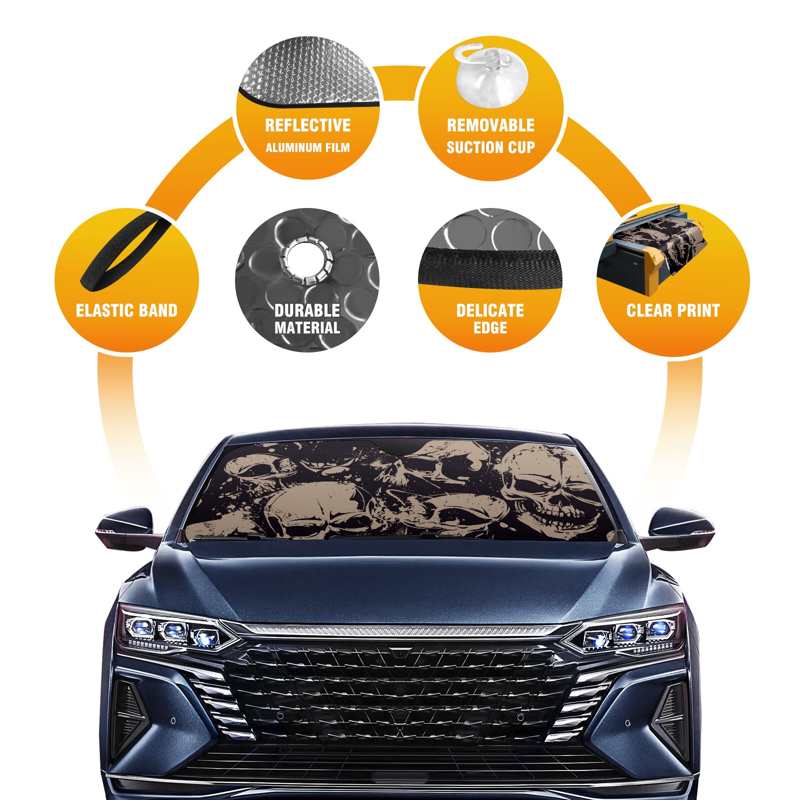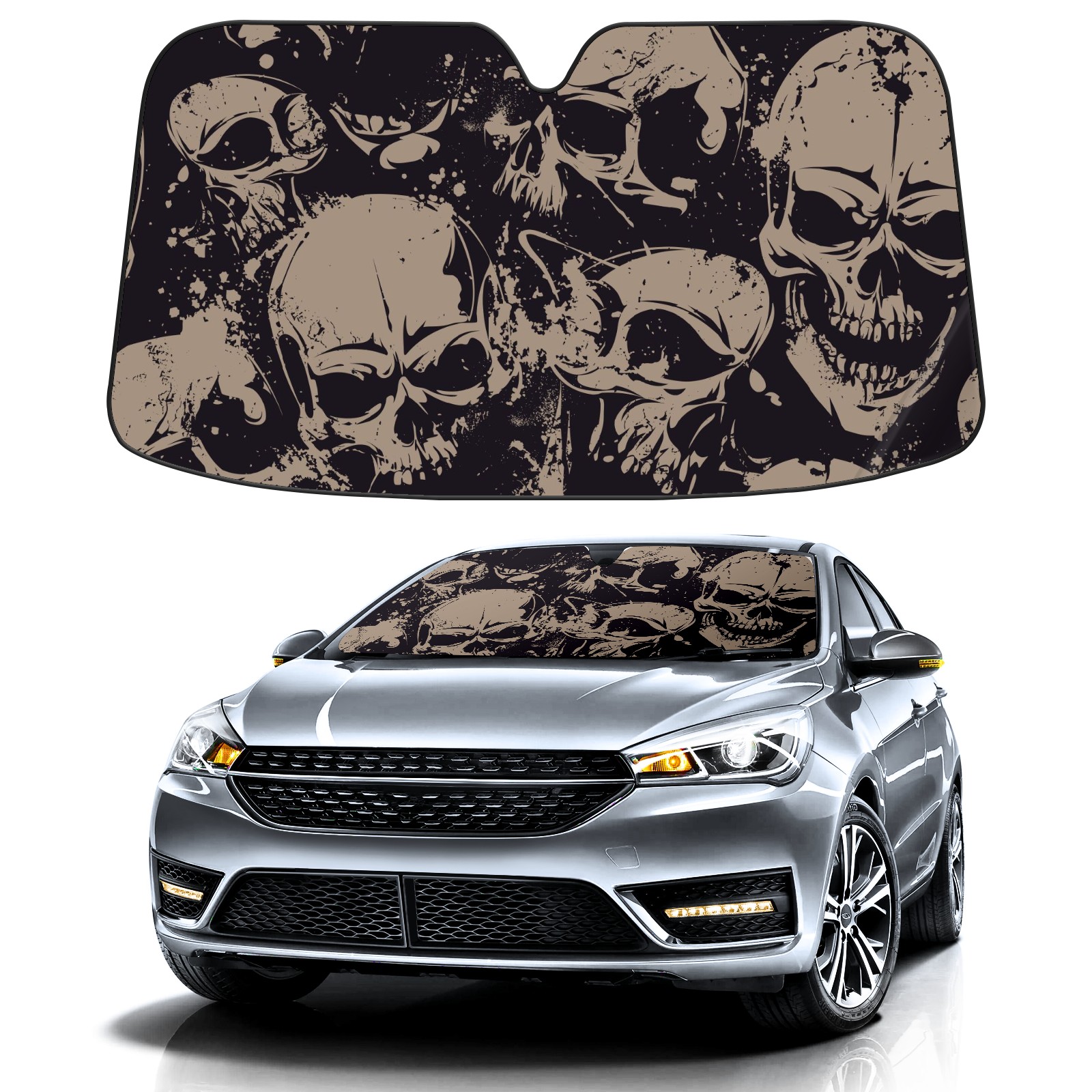 Car Windshield Sun Shade For Front Window Skull Head Foldable Vehicle Windshield Car Sun Visor Covers Automotive Window Protector Car Camping Privacy Sun Blocker