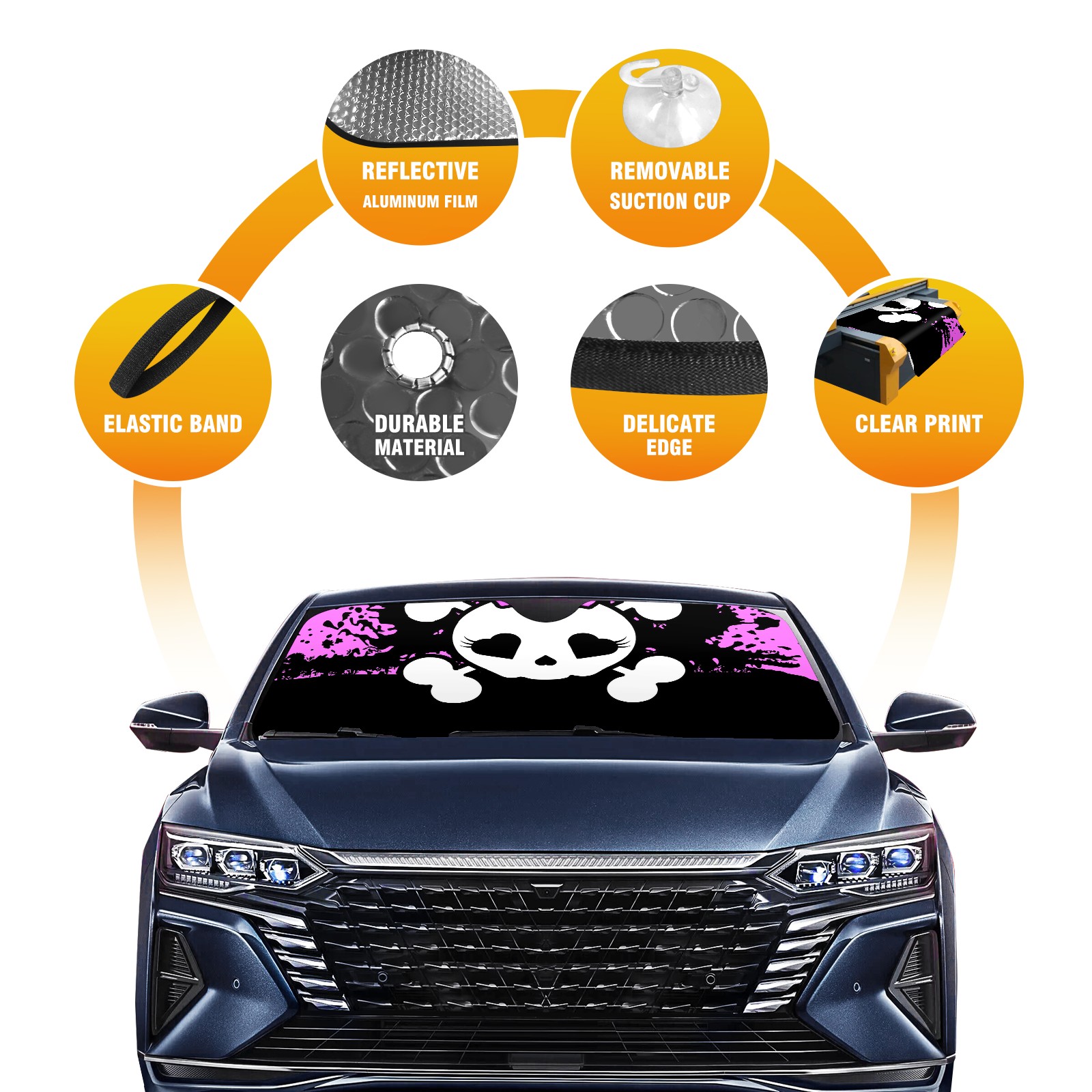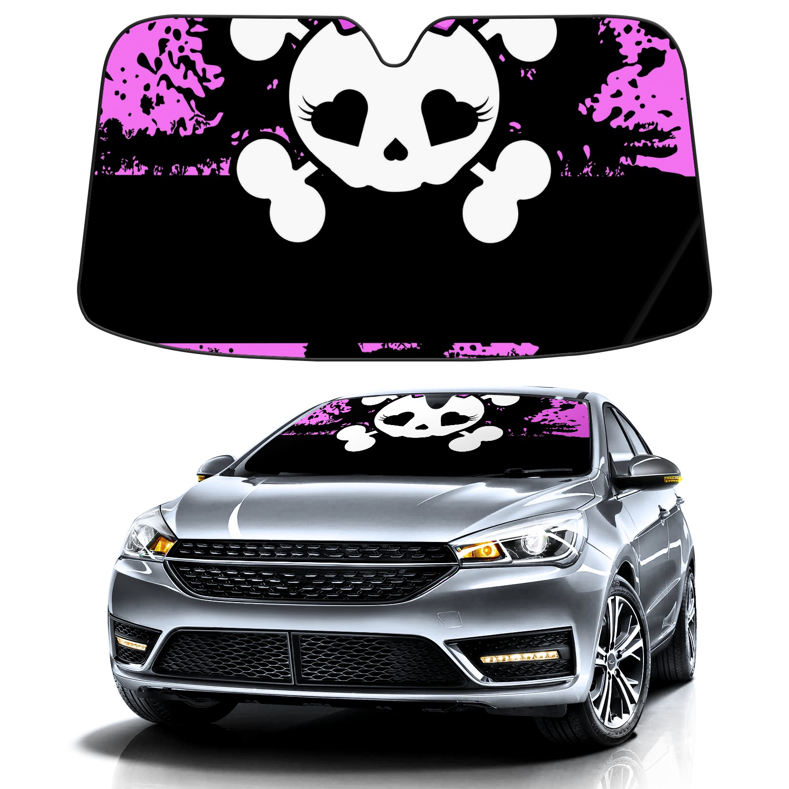 Car Windshield Sun Shade For Front Window Pink Skull Foldable Vehicle Windshield Car Sun Visor Covers Automotive Window Protector Car Camping Privacy Sun Blocker