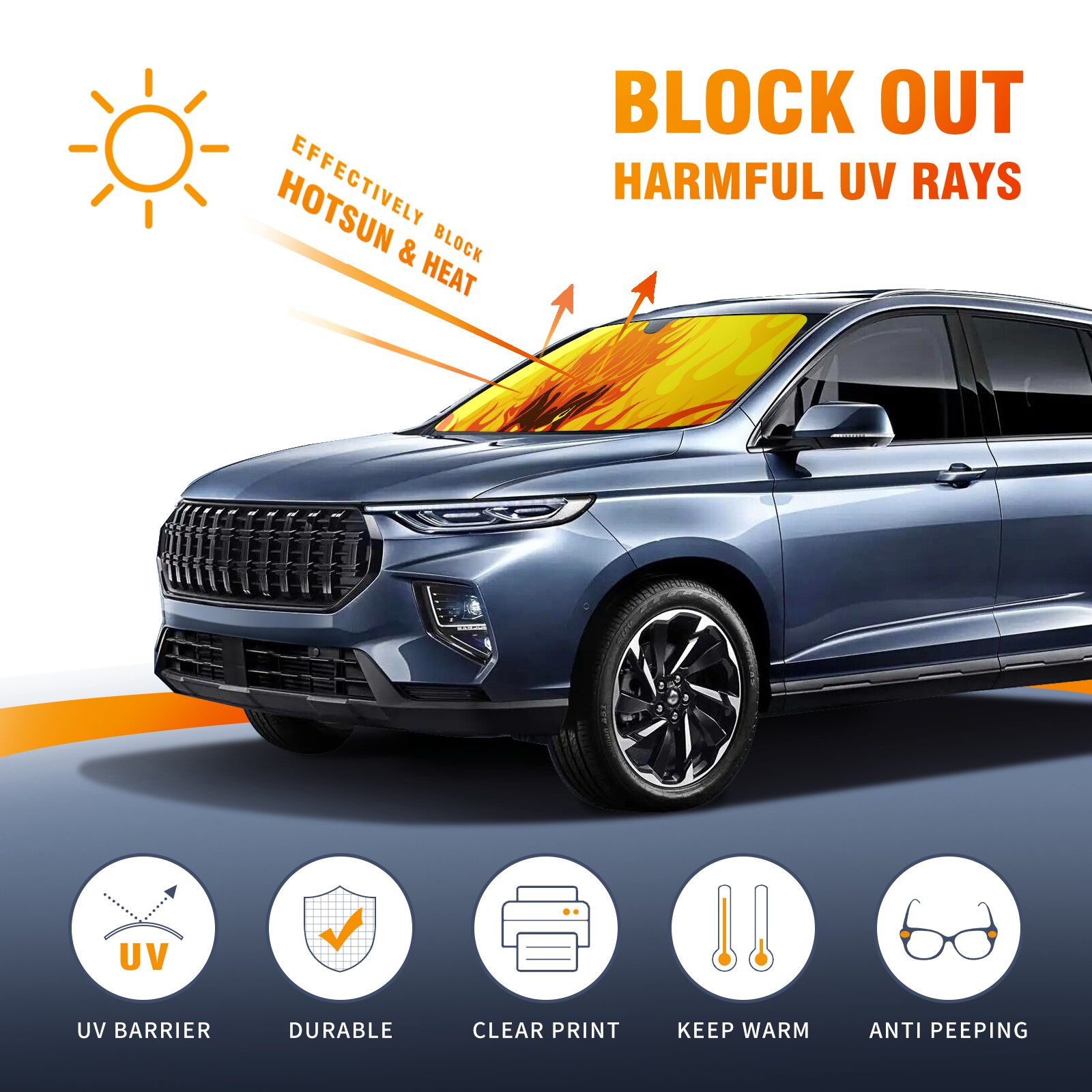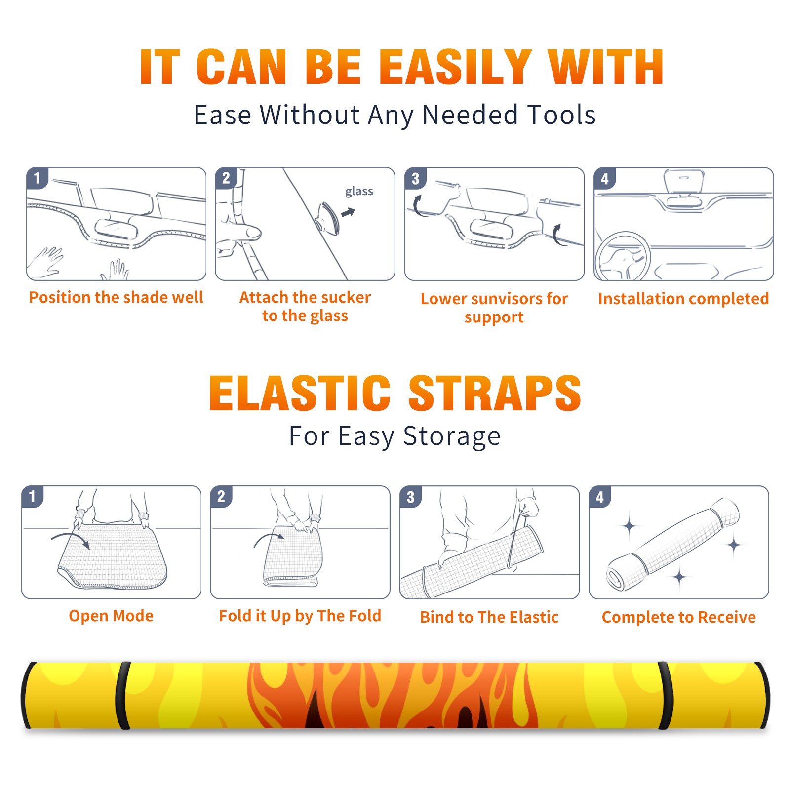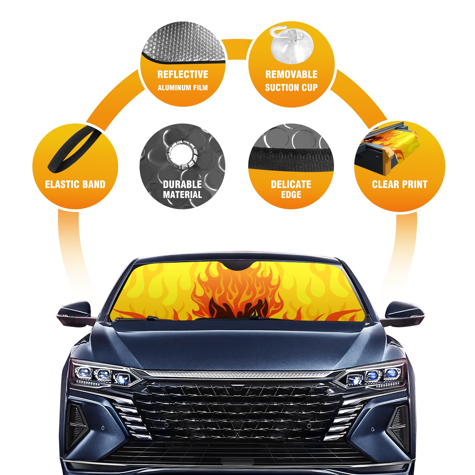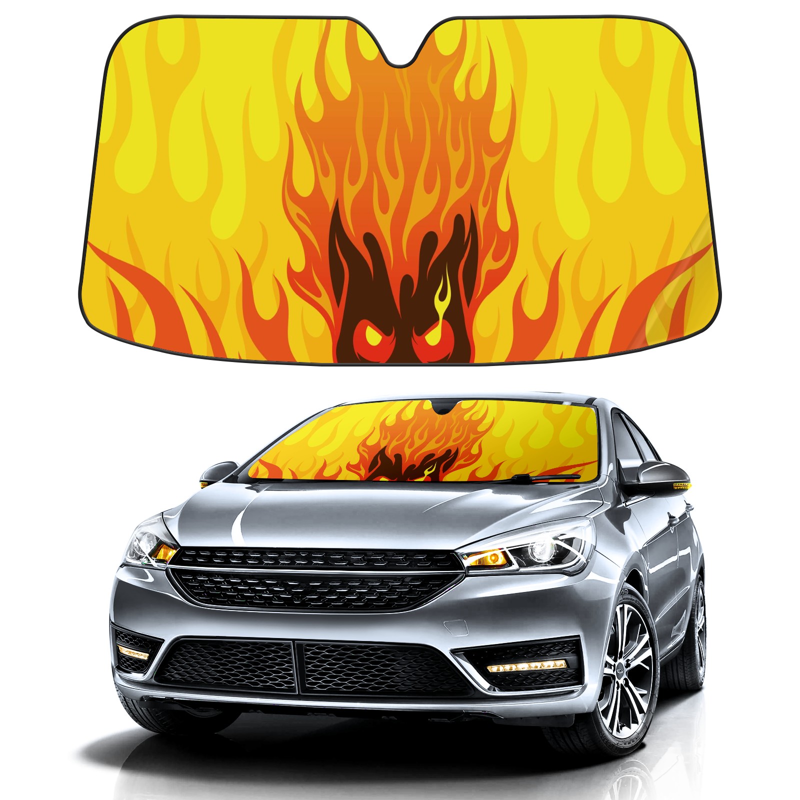 Car Windshield Sun Shade For Front Window Flaming Fire Skull Yellow Orange Foldable Vehicle Windshield Car Sun Visor Covers Automotive Window Protector Car Camping Privacy Sun Blocker