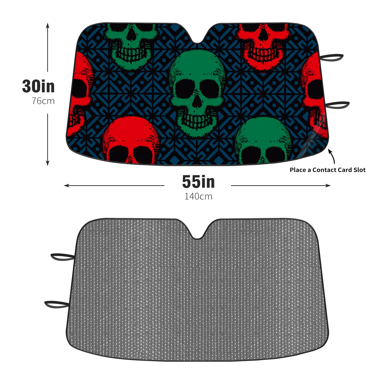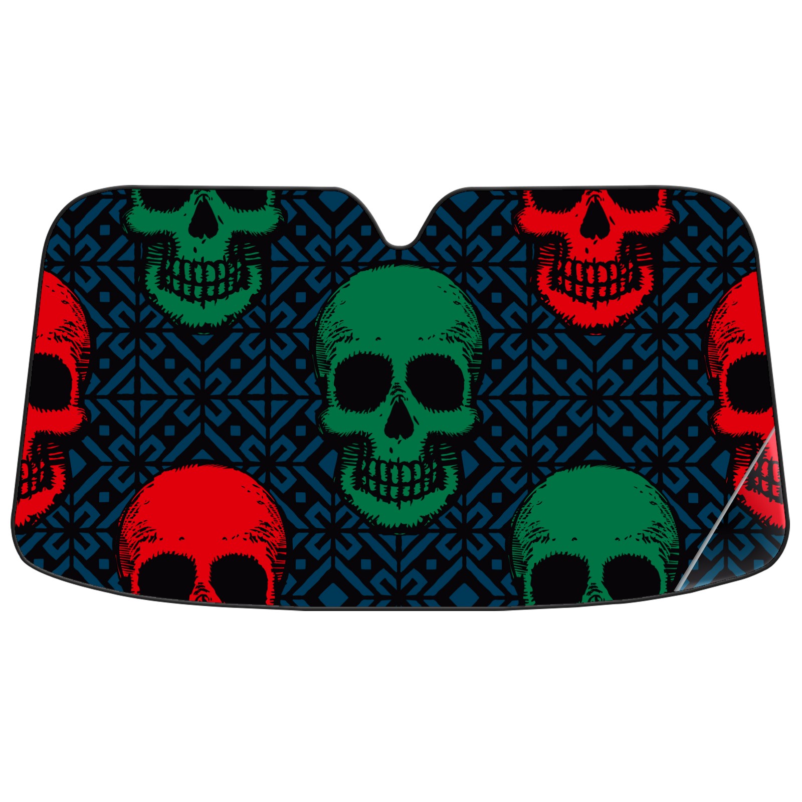 Car Windshield Sun Shade For Front Window Green Red Skull Head Navy Background Foldable Vehicle Windshield Car Sun Visor Covers Automotive Window Protector Car Camping Privacy Sun Blocker
