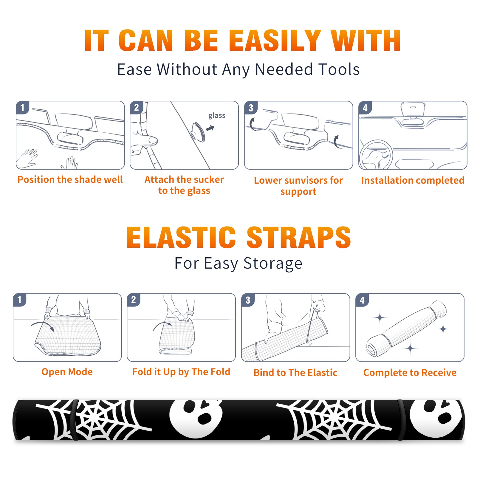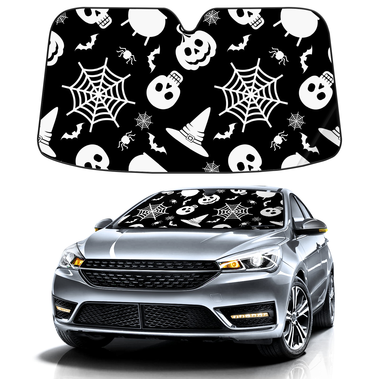 Car Windshield Sun Shade For Front Window Halloween Pattern Skull Pumpkin Bat Spide Web Foldable Vehicle Windshield Car Sun Visor Covers Automotive Window Protector Car Camping Privacy Sun Blocker