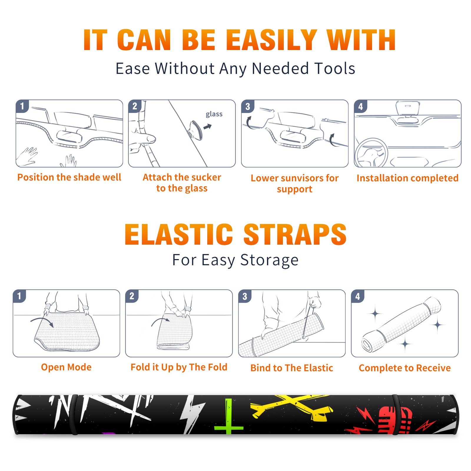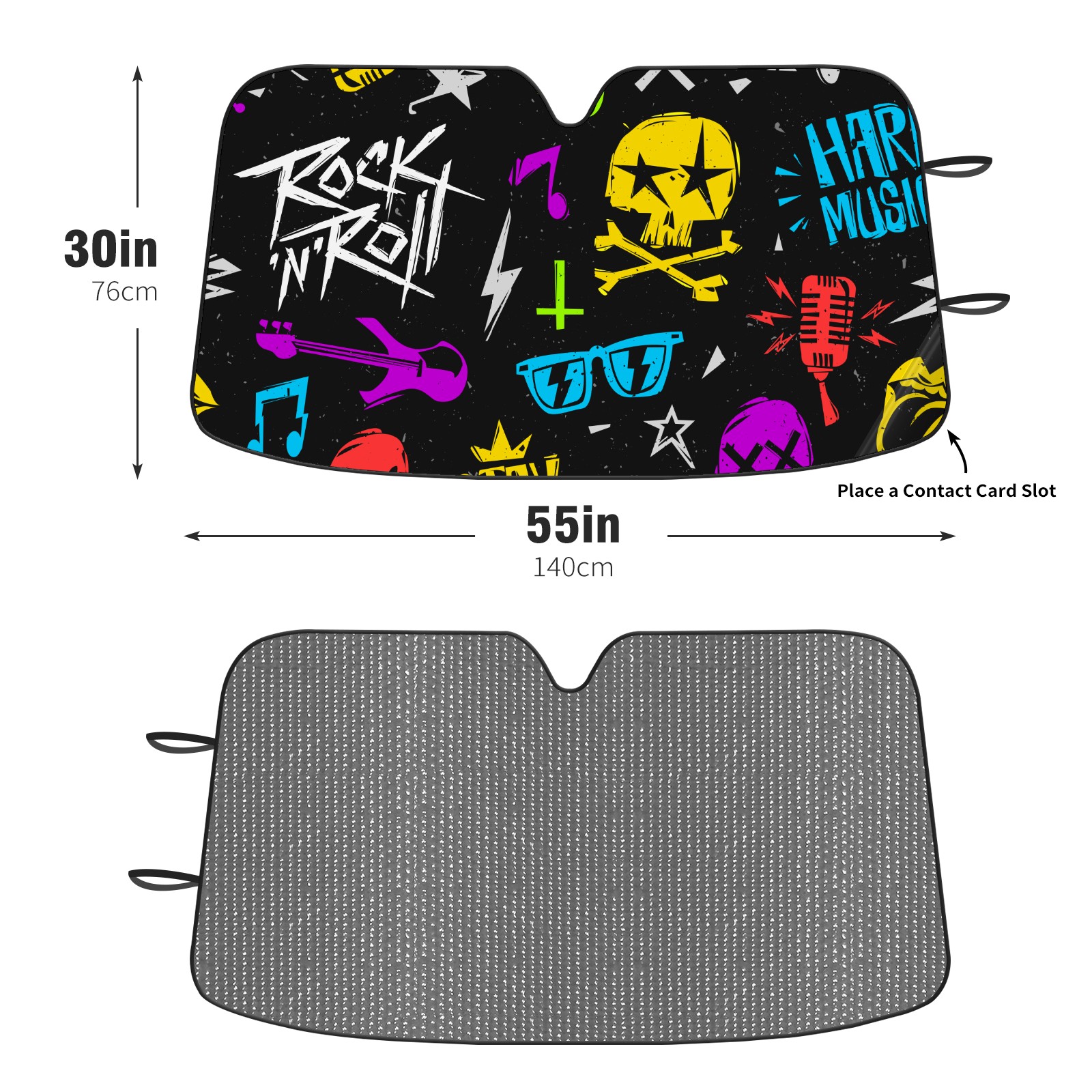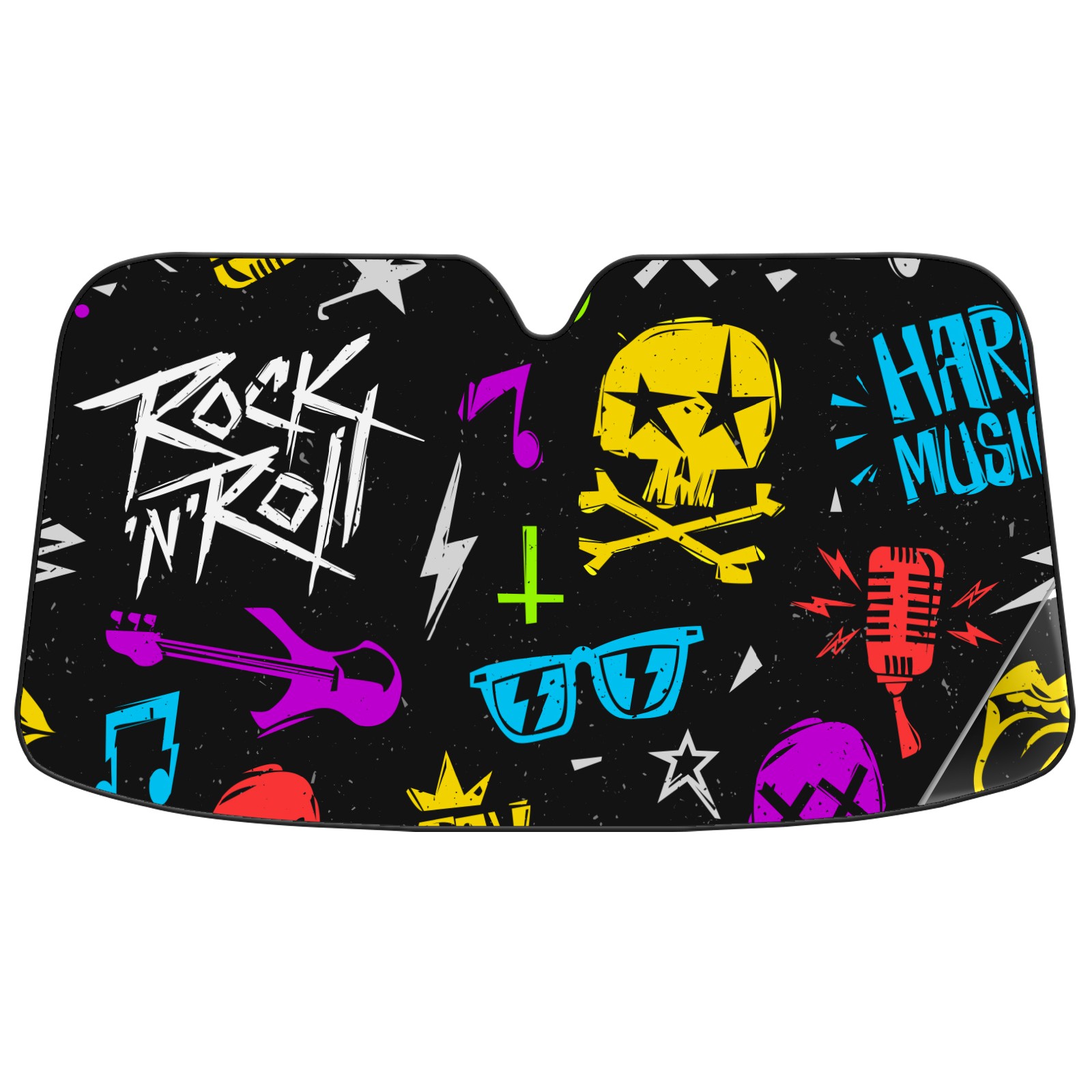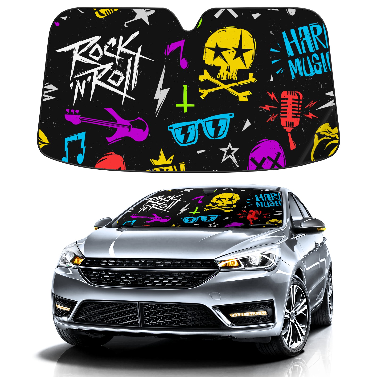 Car Windshield Sun Shade For Front Window Colorful Rock Music Skull Stars Foldable Vehicle Windshield Car Sun Visor Covers Automotive Window Protector Car Camping Privacy Sun Blocker