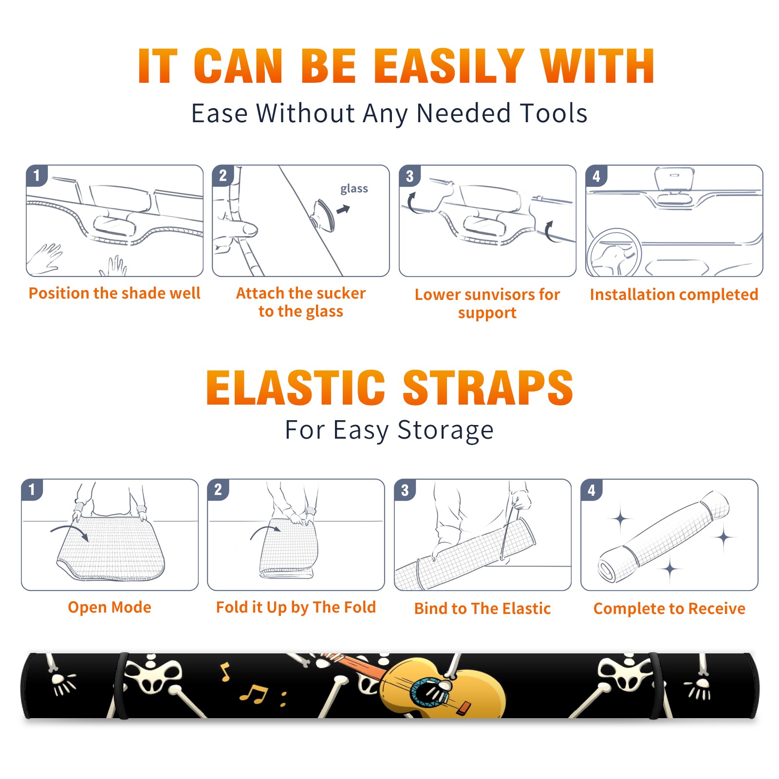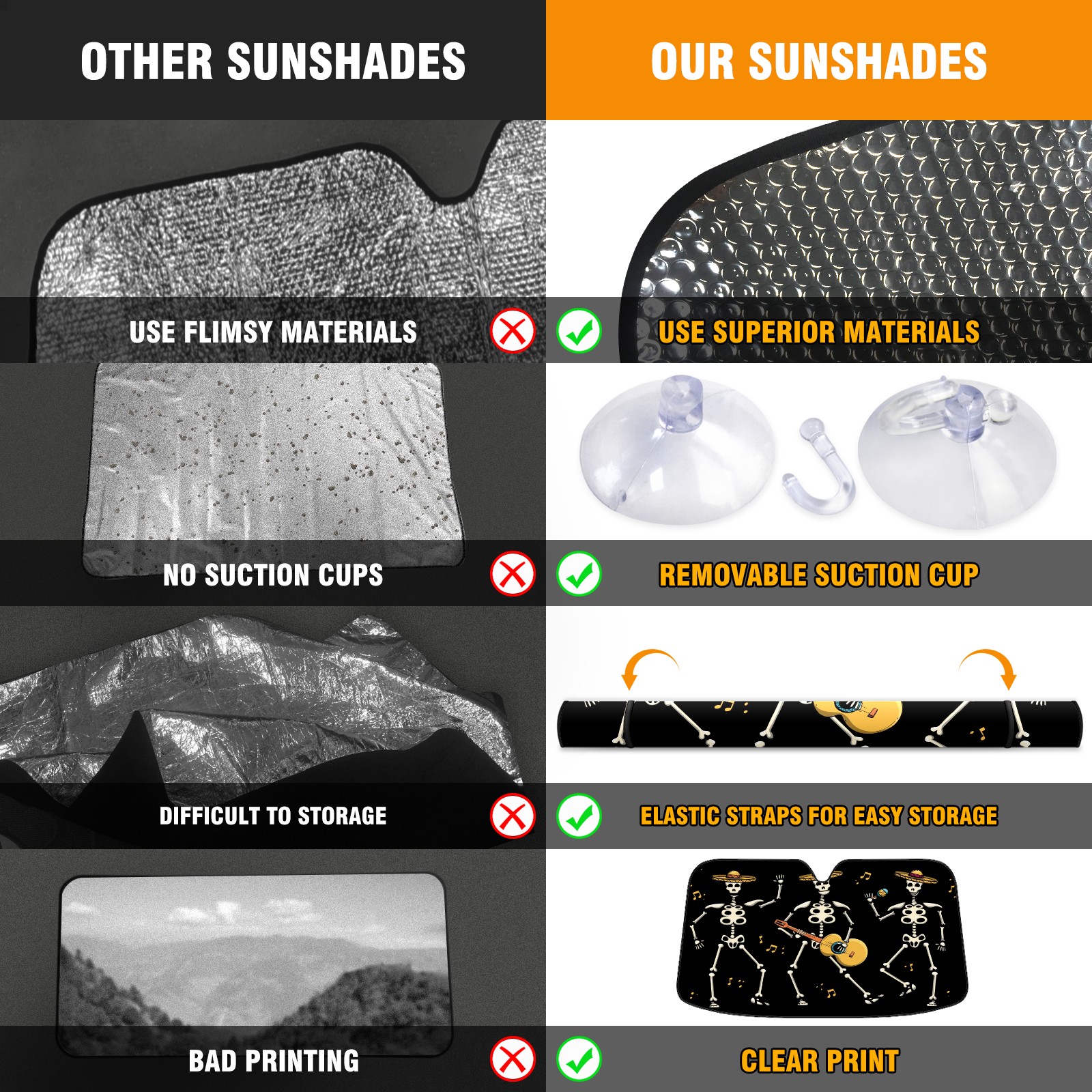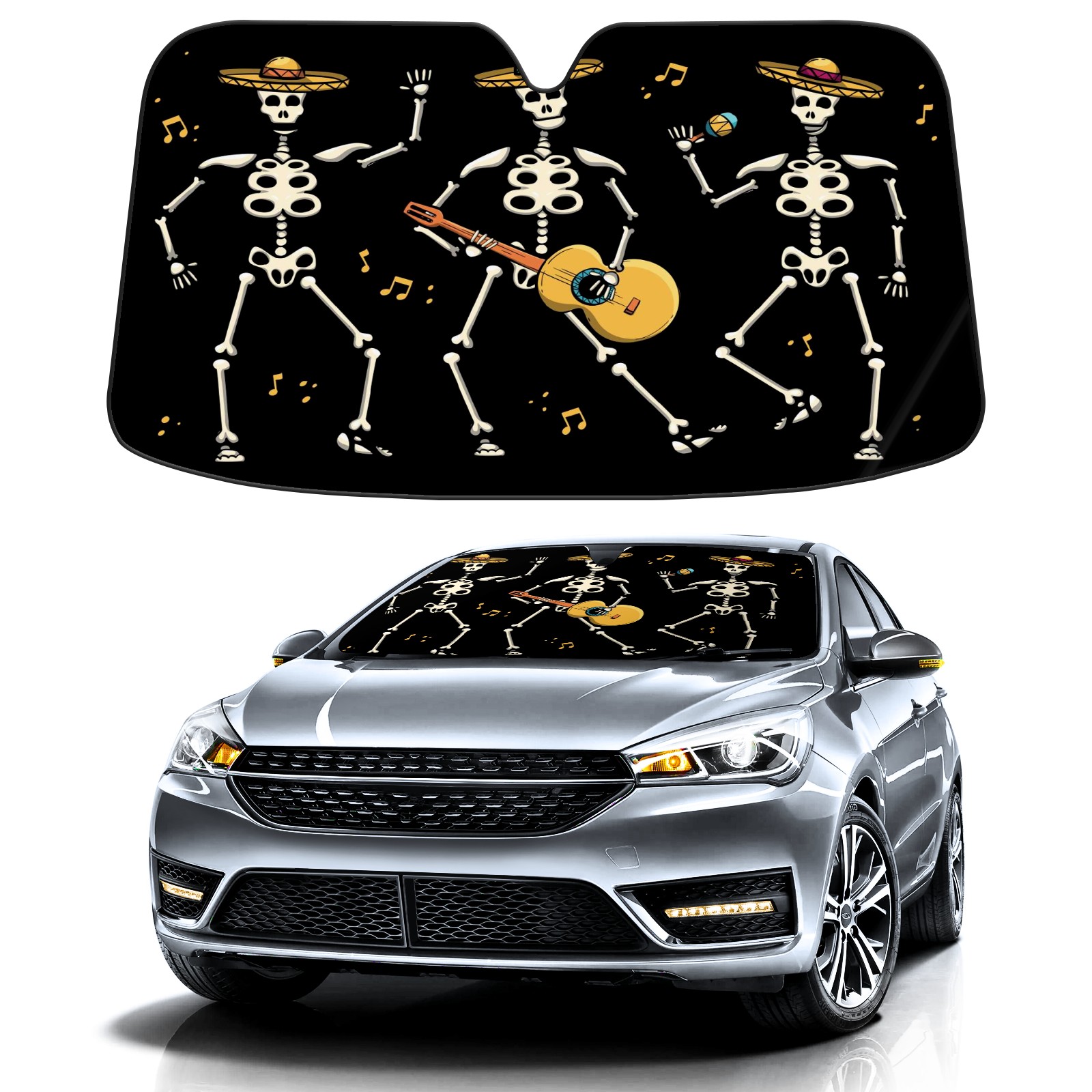Car Windshield Sun Shade For Front Window Skull Black Foldable Vehicle Windshield Car Sun Visor Covers Automotive Window Protector Car Camping Privacy Sun Blocker